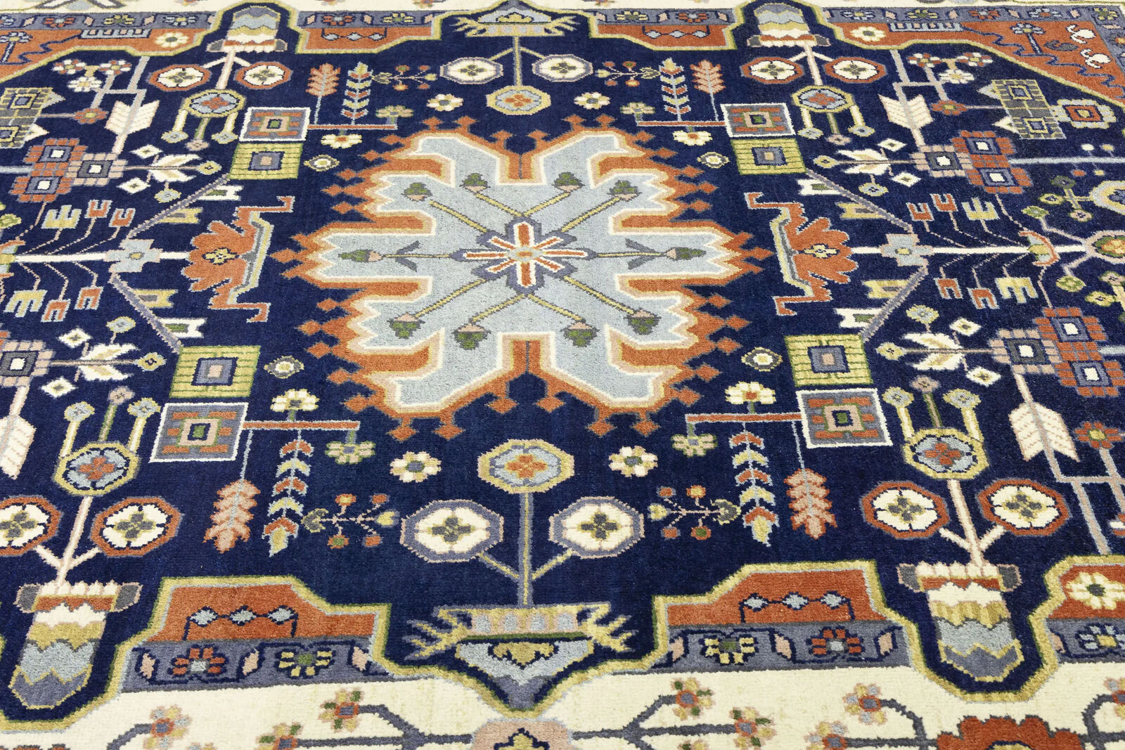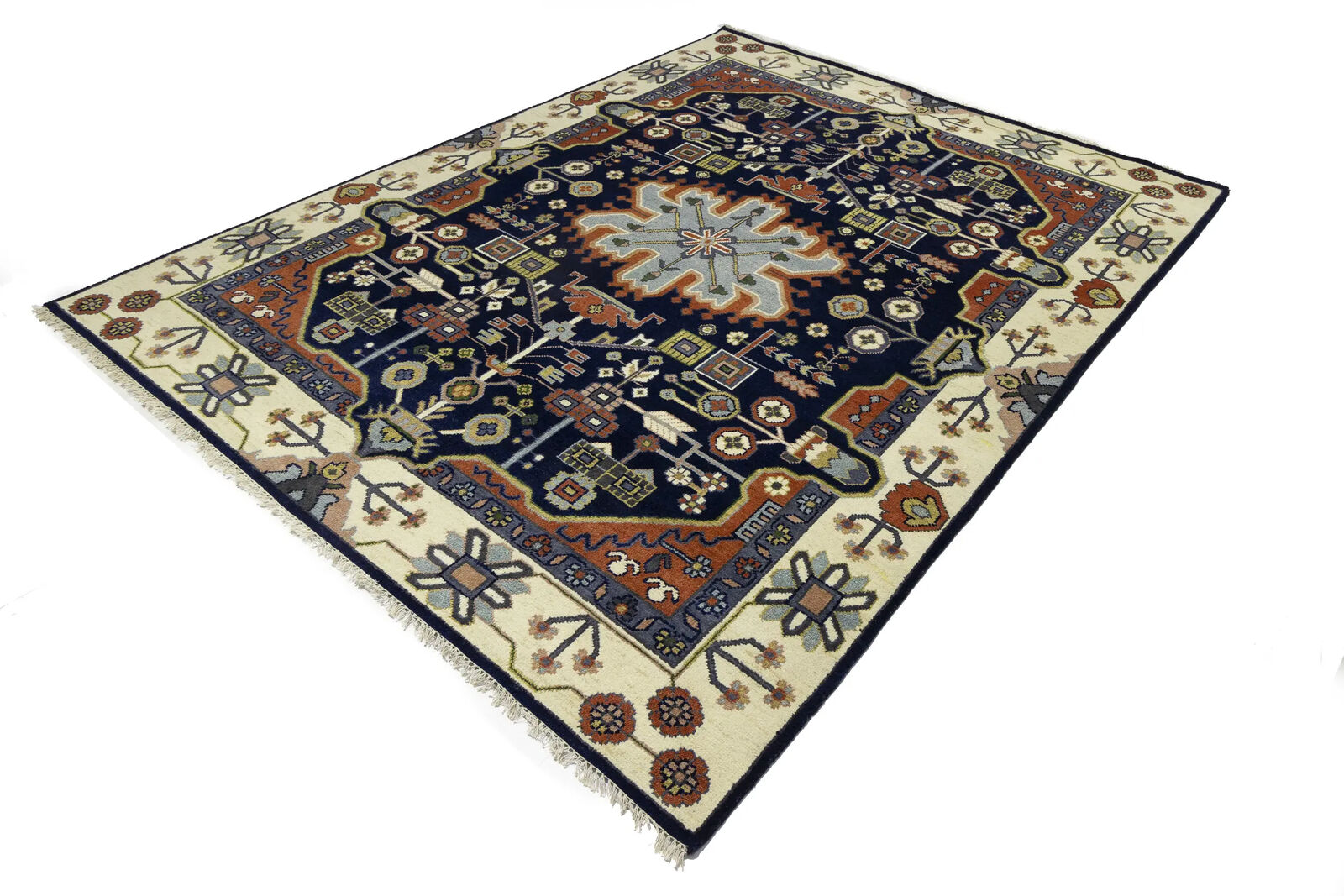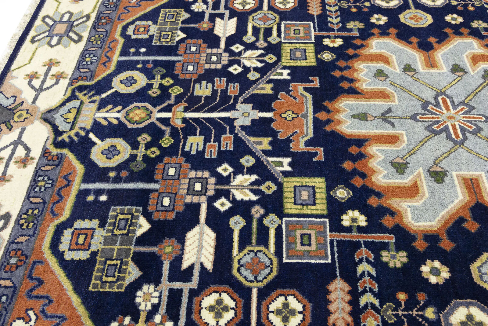 9X12 ft Navy Tribal Heriz Serapi Wool Oriental