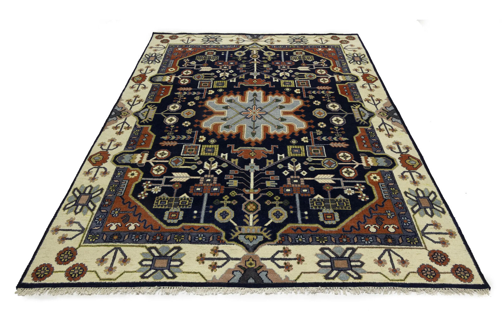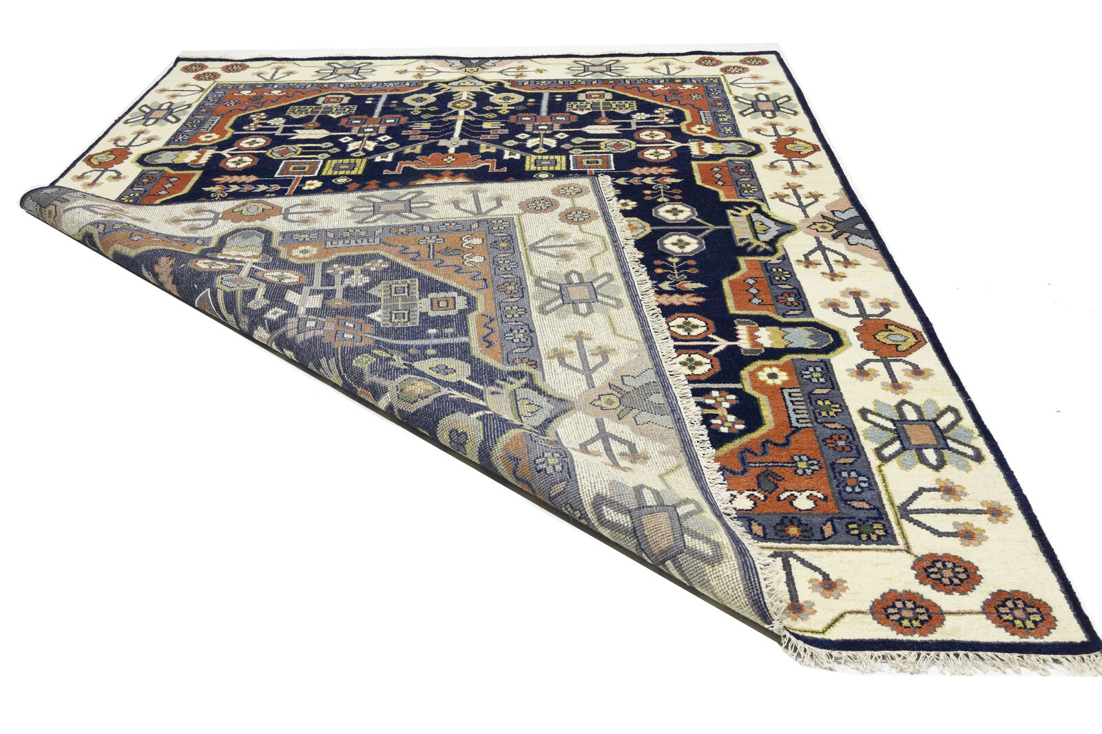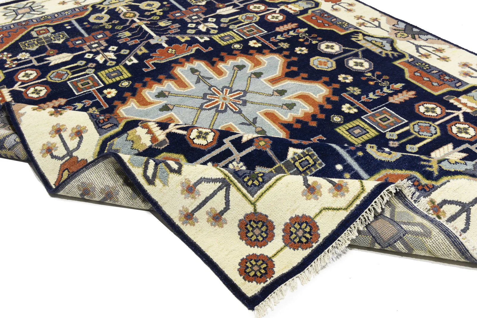 9X12 ft Navy Tribal Heriz Serapi Wool Oriental
