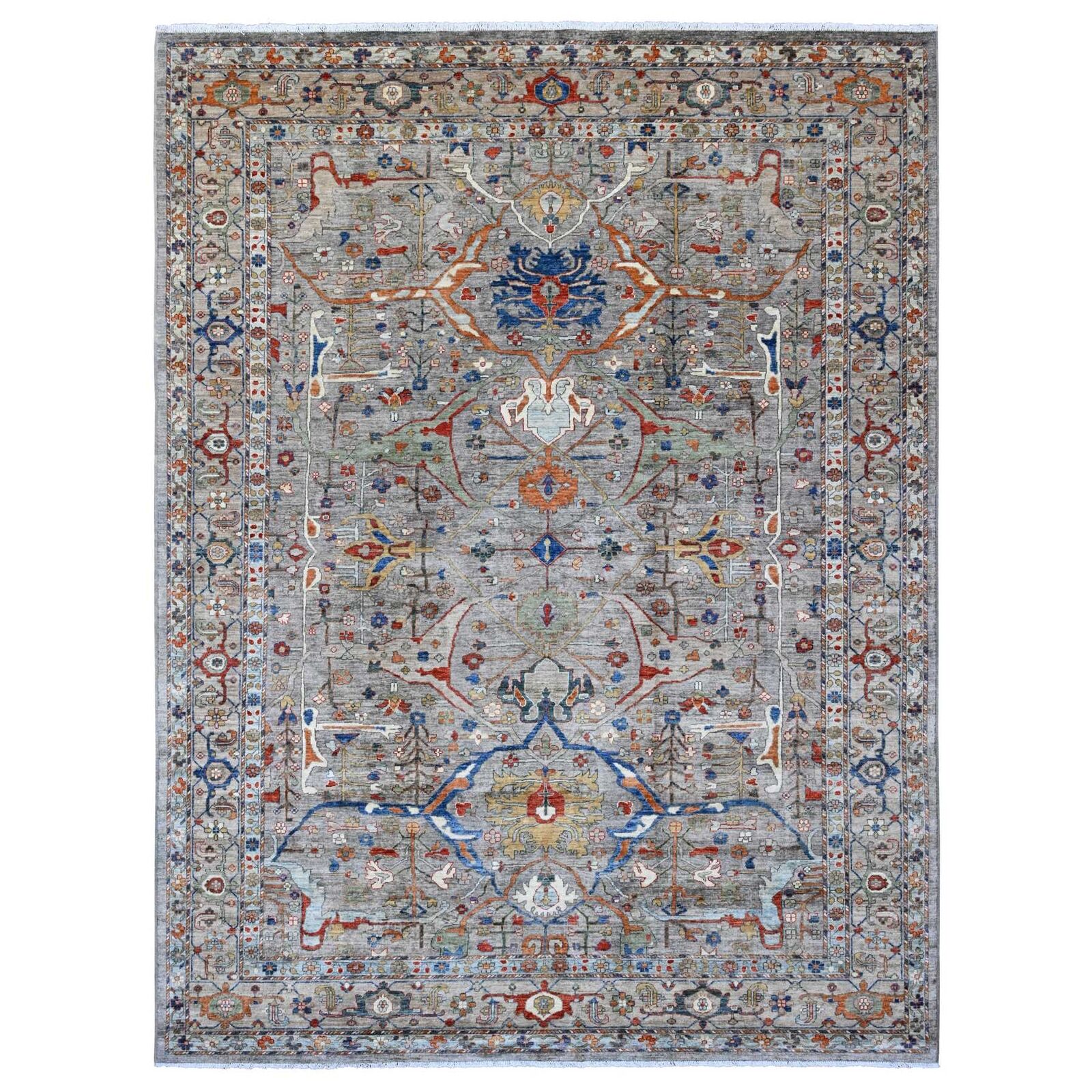 9'X12' Gray Peshawar With Bijar Garus Design Hand Knotted Pure Wool Rug