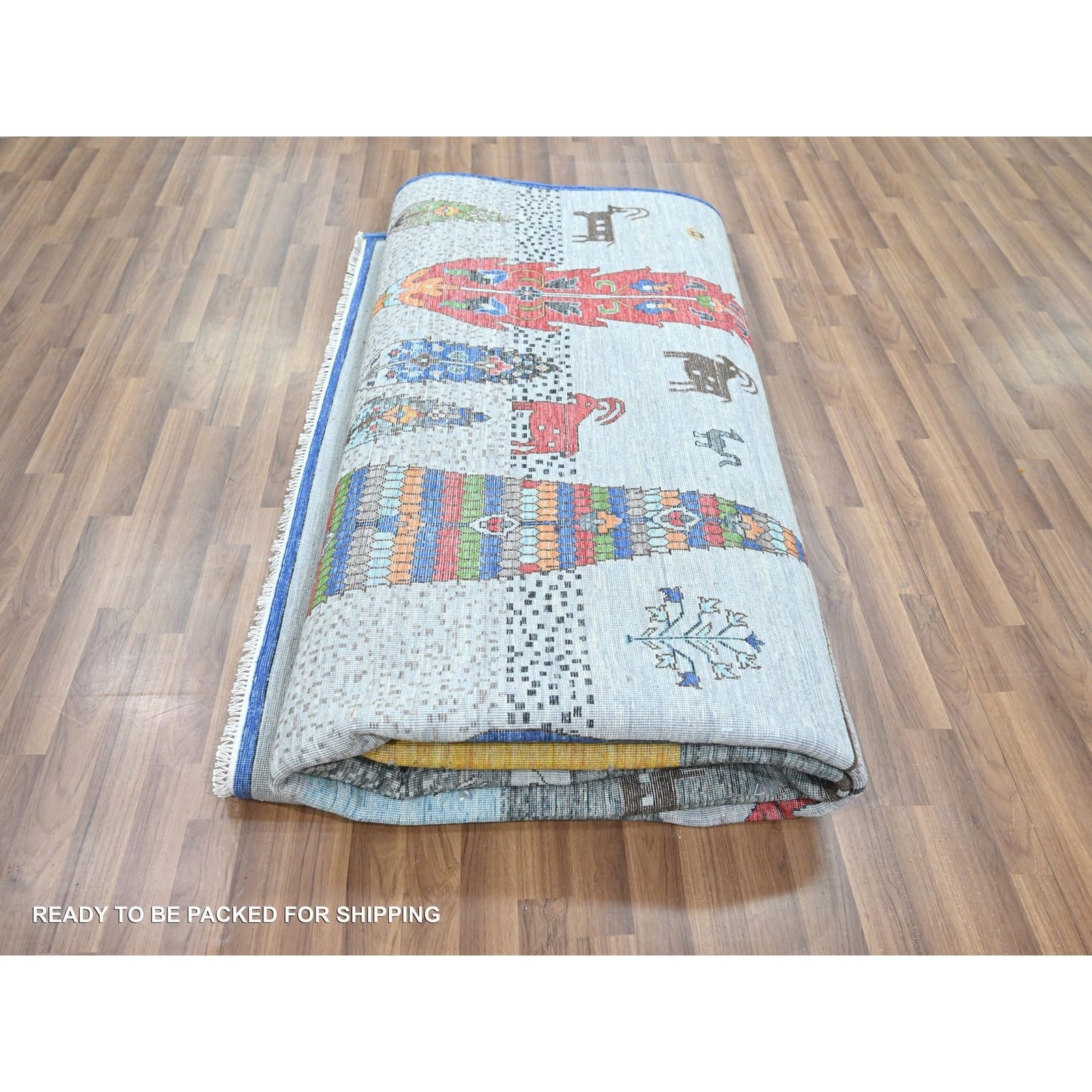 9'X12' Gray Pictorial With Tree And Animals Design Hand Knotted Wool Rug