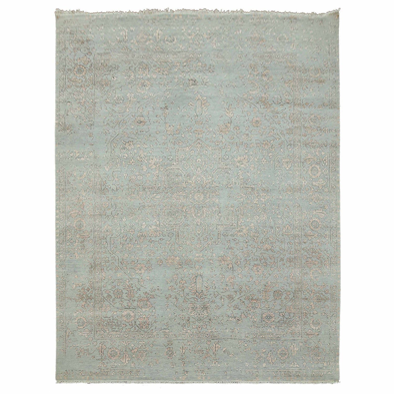 9'X12' Gray Zoroastrian Seeripe Design Wool And Silk Hand Knotted Rug