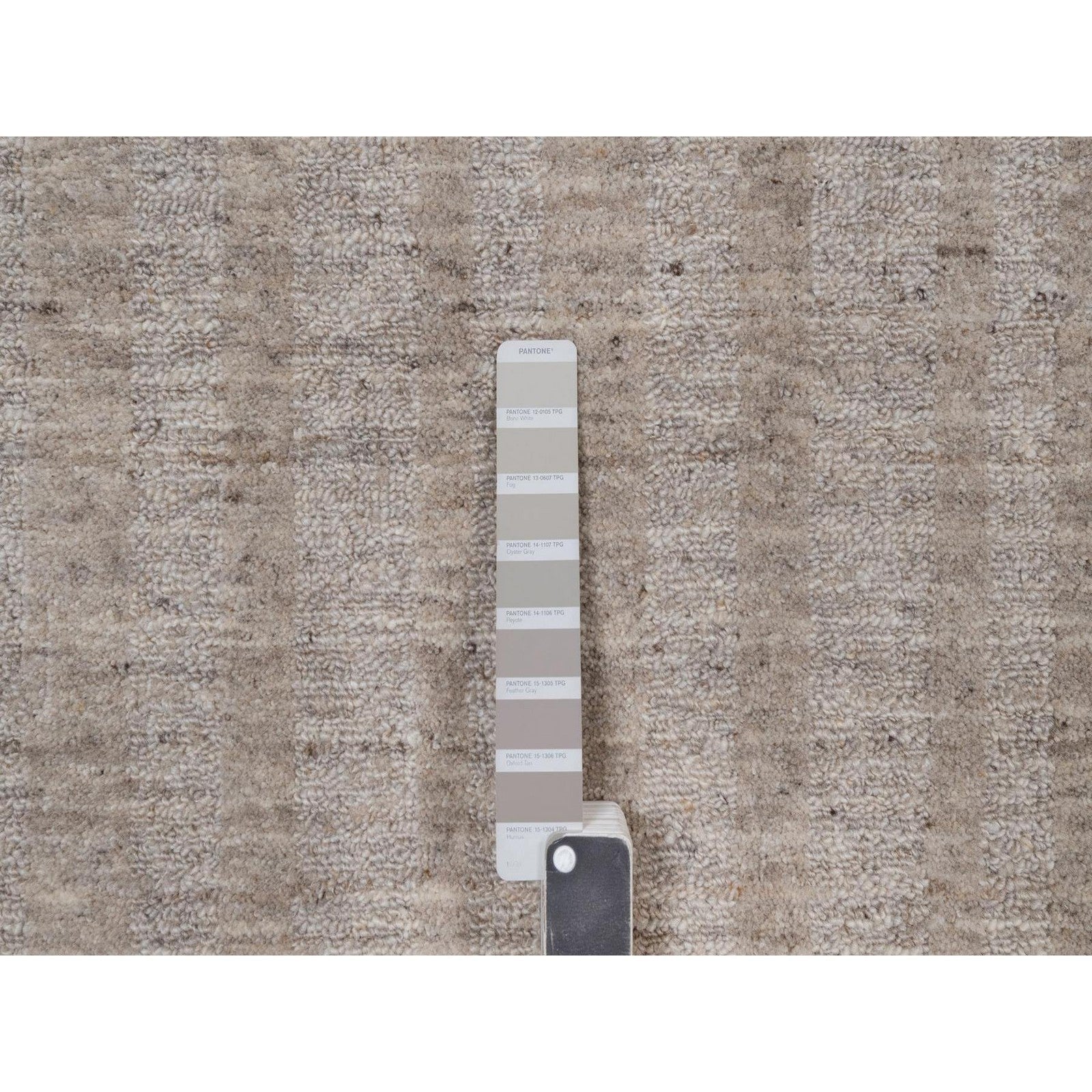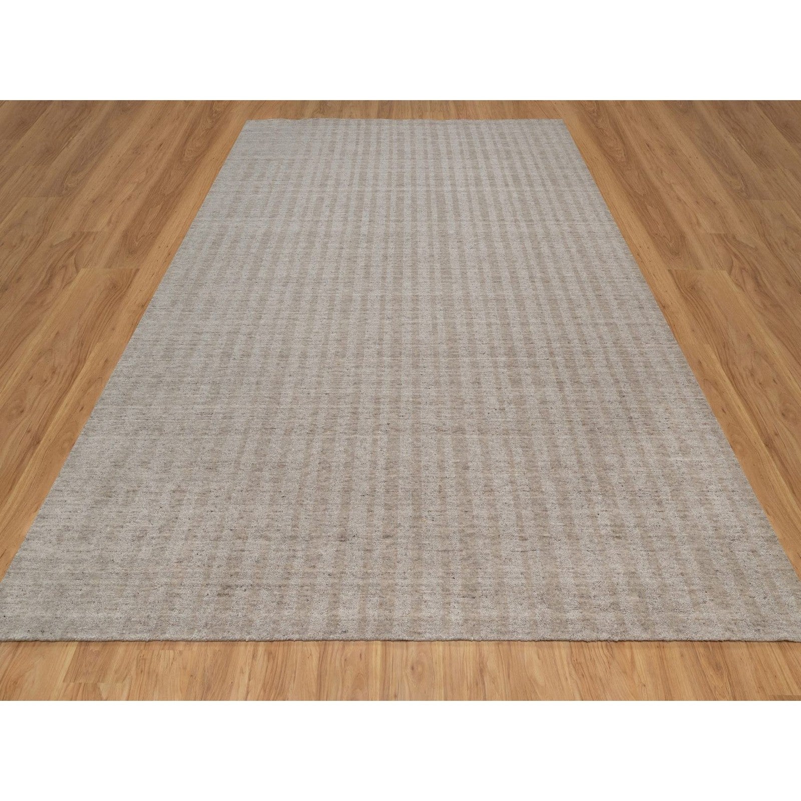 9'X12' Light Brown Vertical Stripes Design Natural Wool Hand Loomed Rug