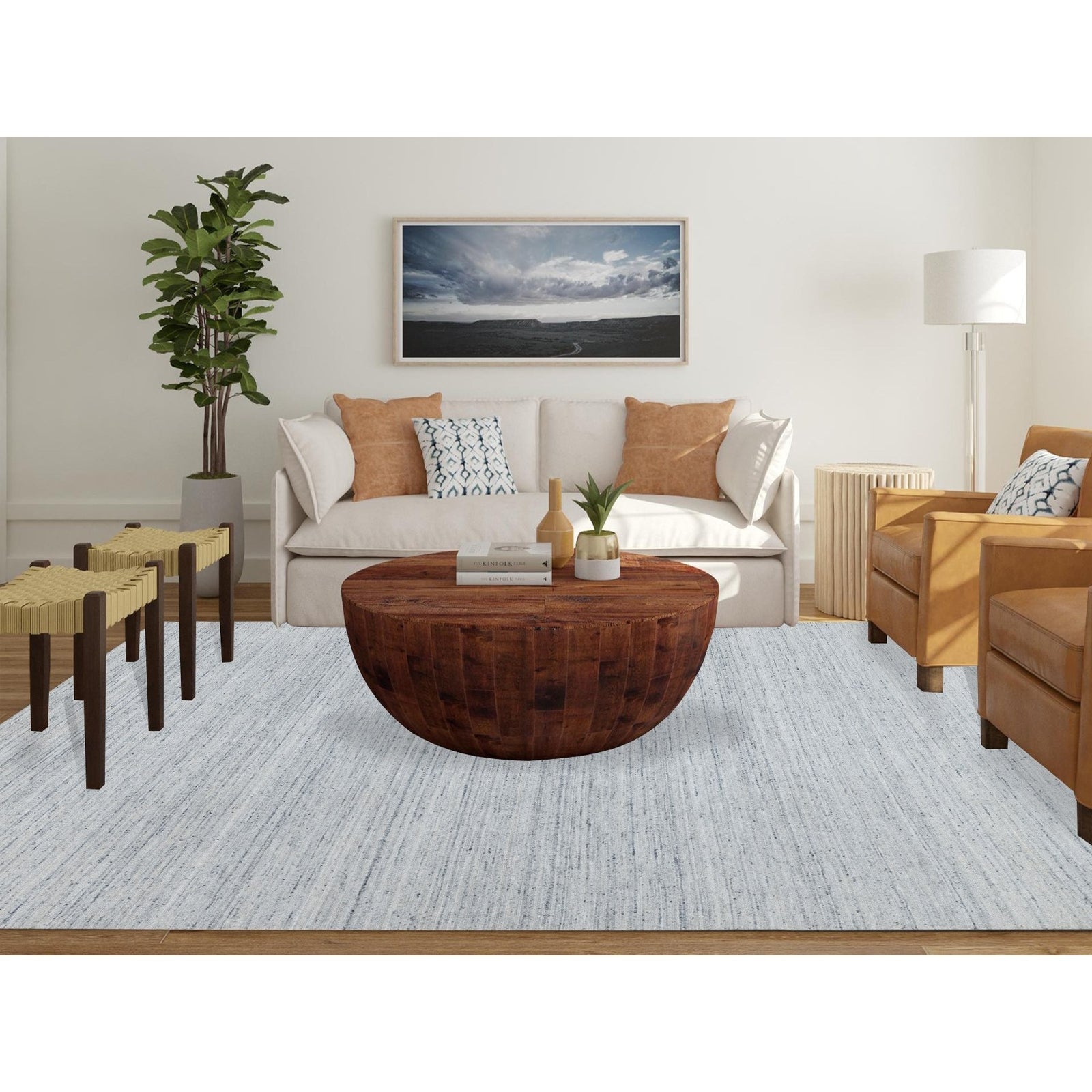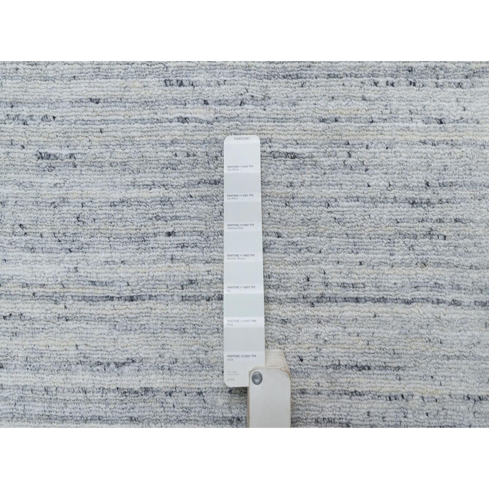 9'X12' Misty Gray Modern Striae Design,Natural Wool Hand Loomed Rug