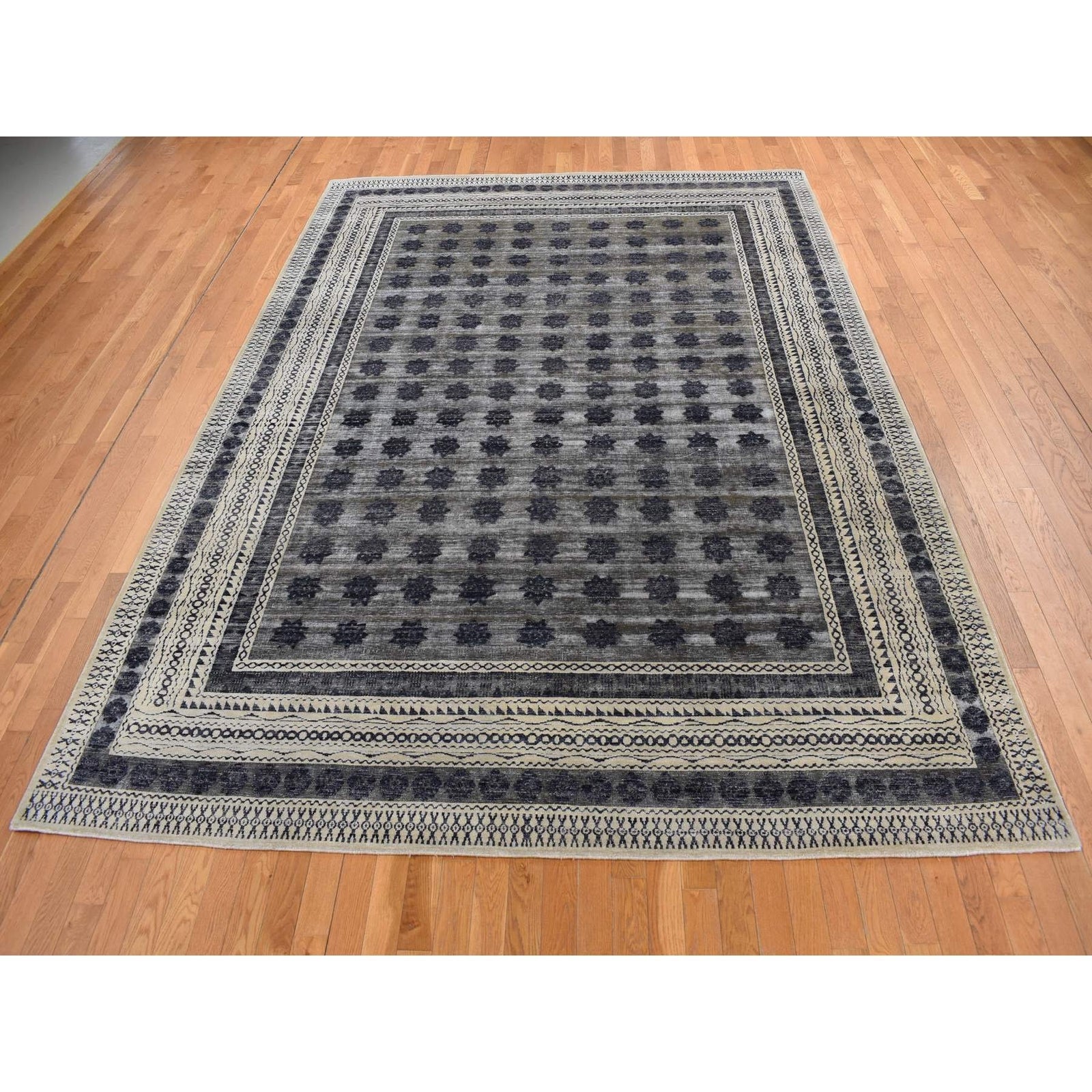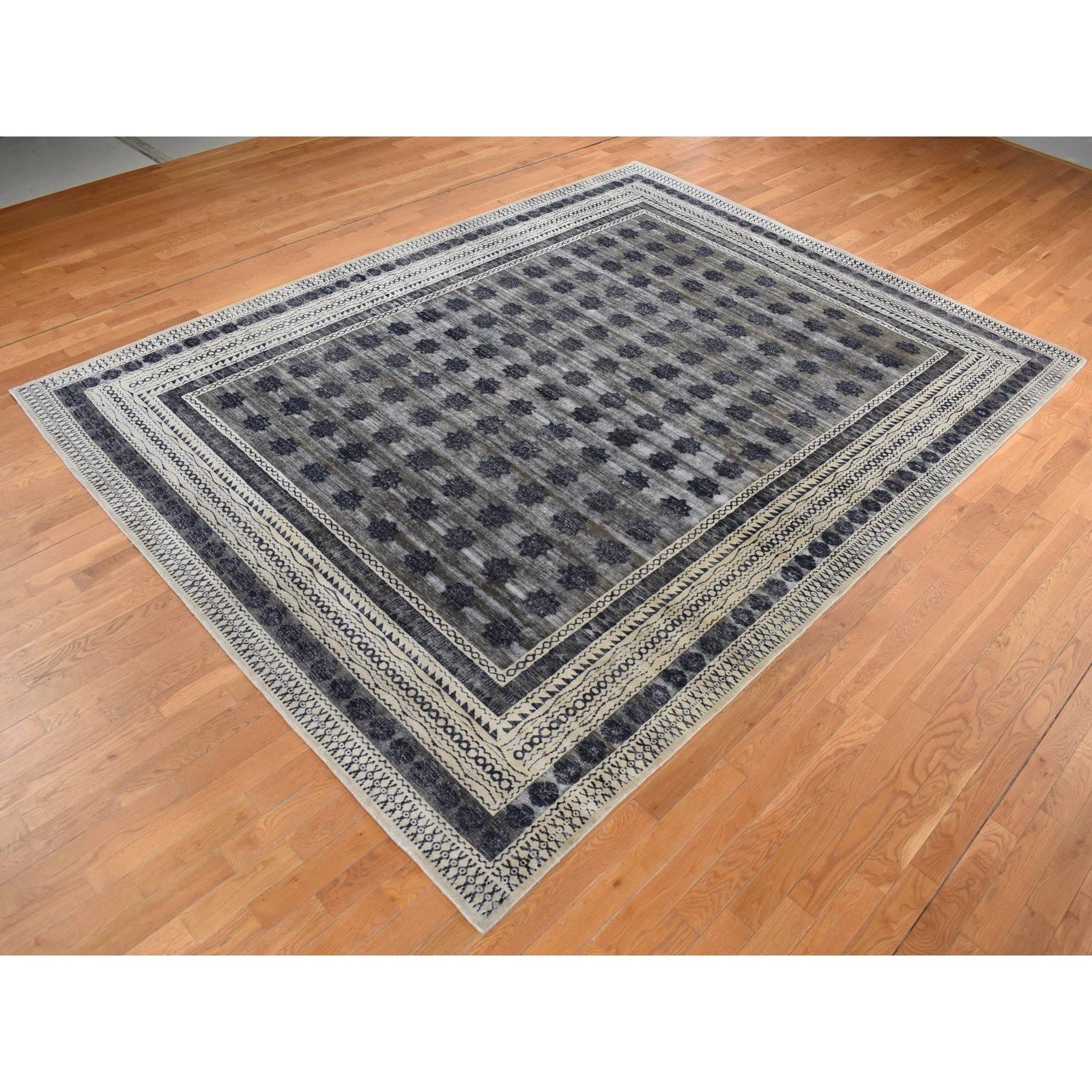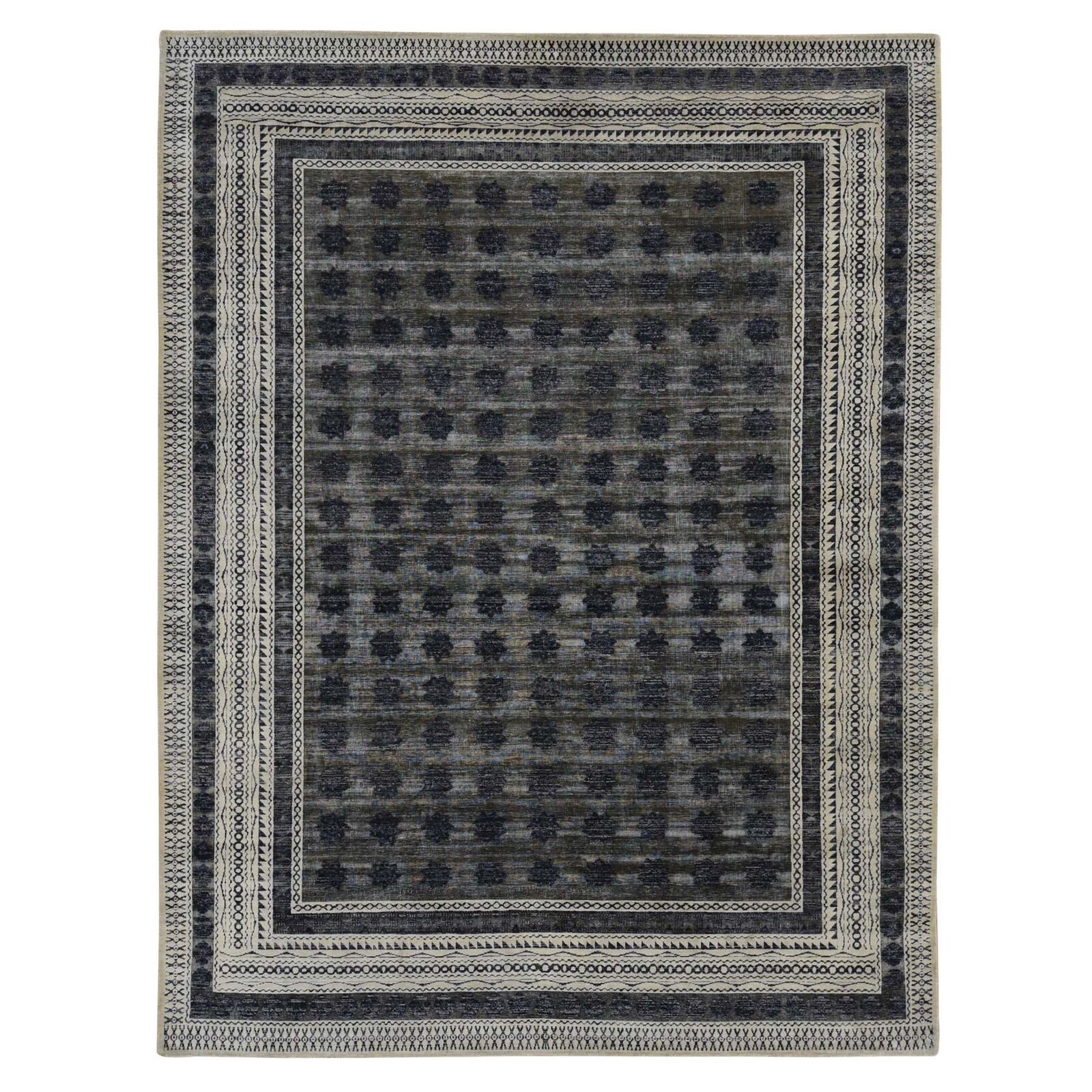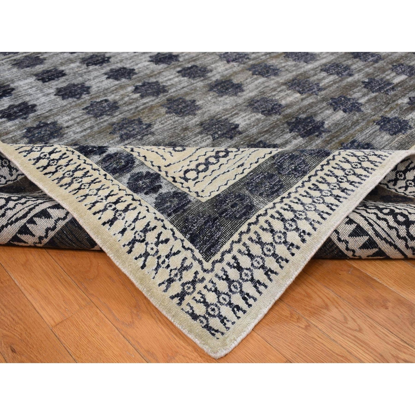 9'X12' Owl Gray Distressed Silk Repetitive Design Hand Knotted Rug