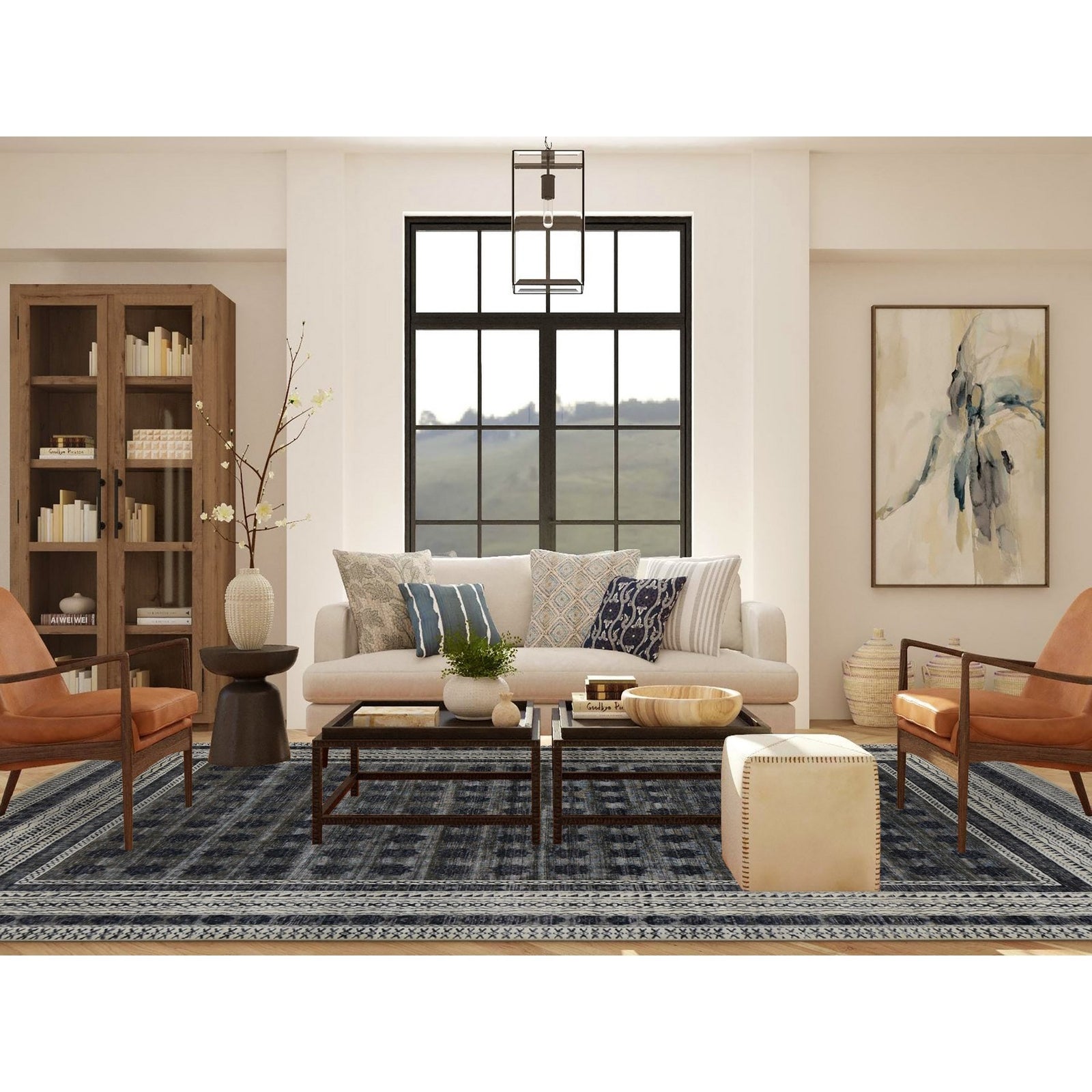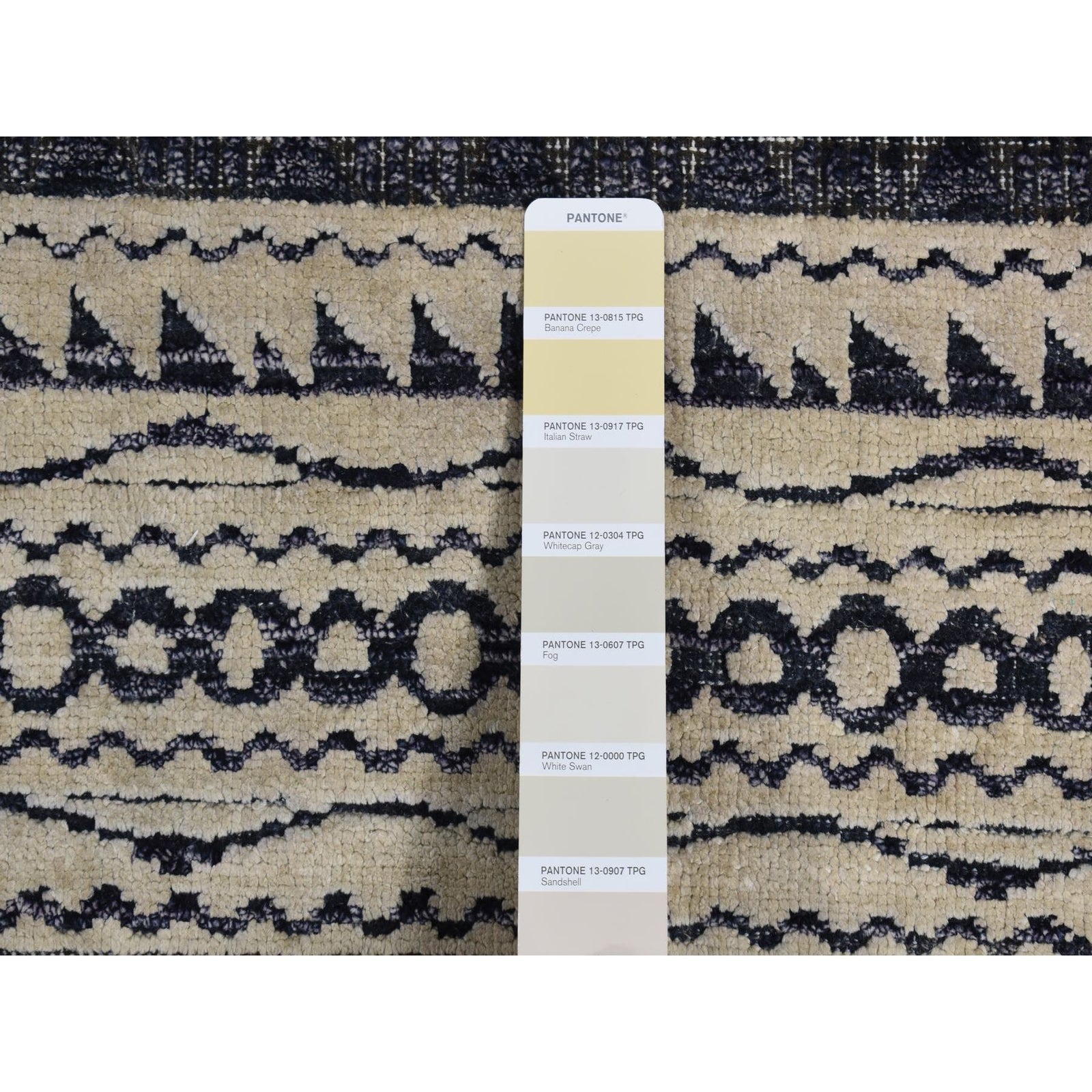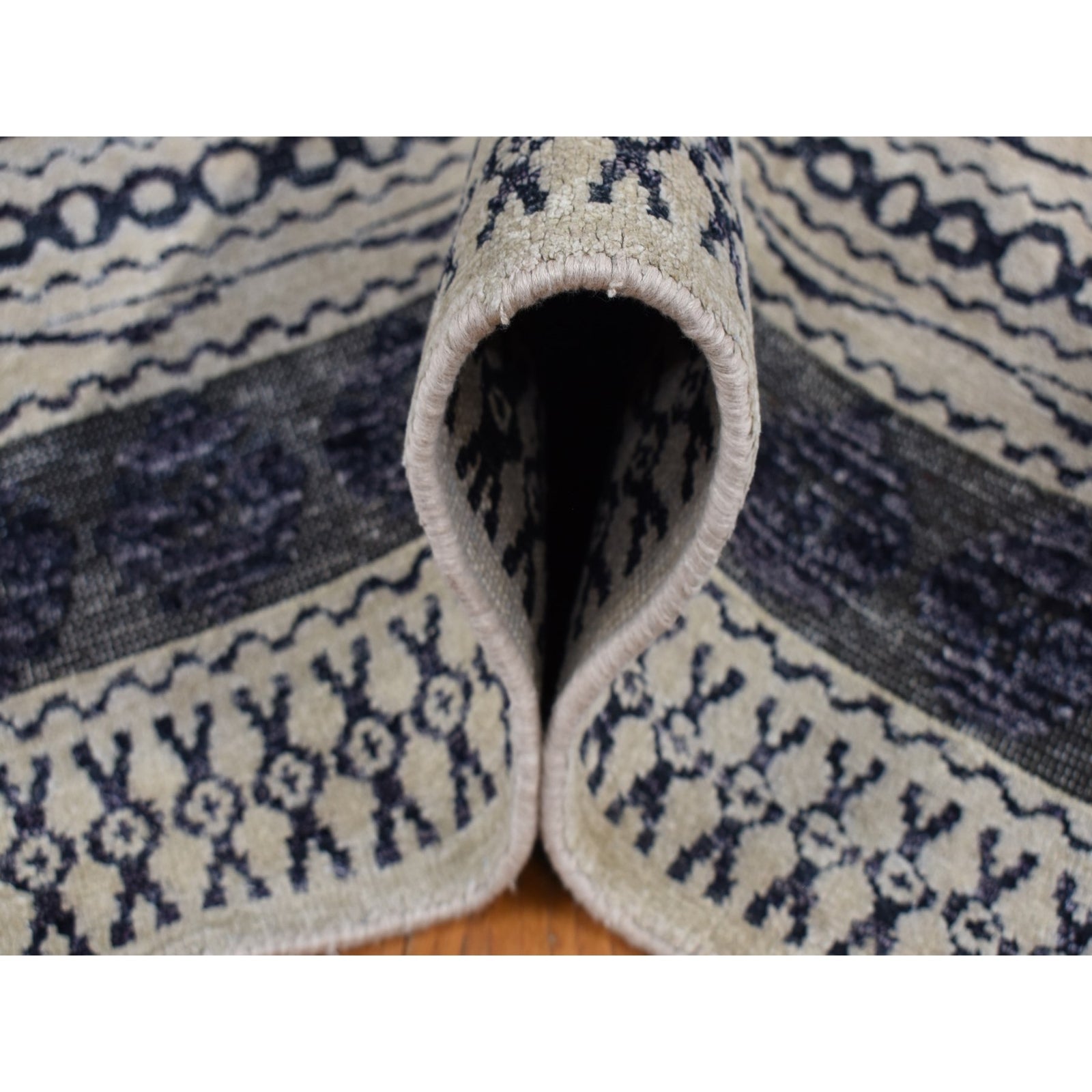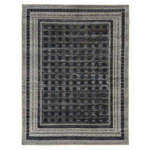 9'X12' Owl Gray Distressed Silk Repetitive Design Hand Knotted Rug