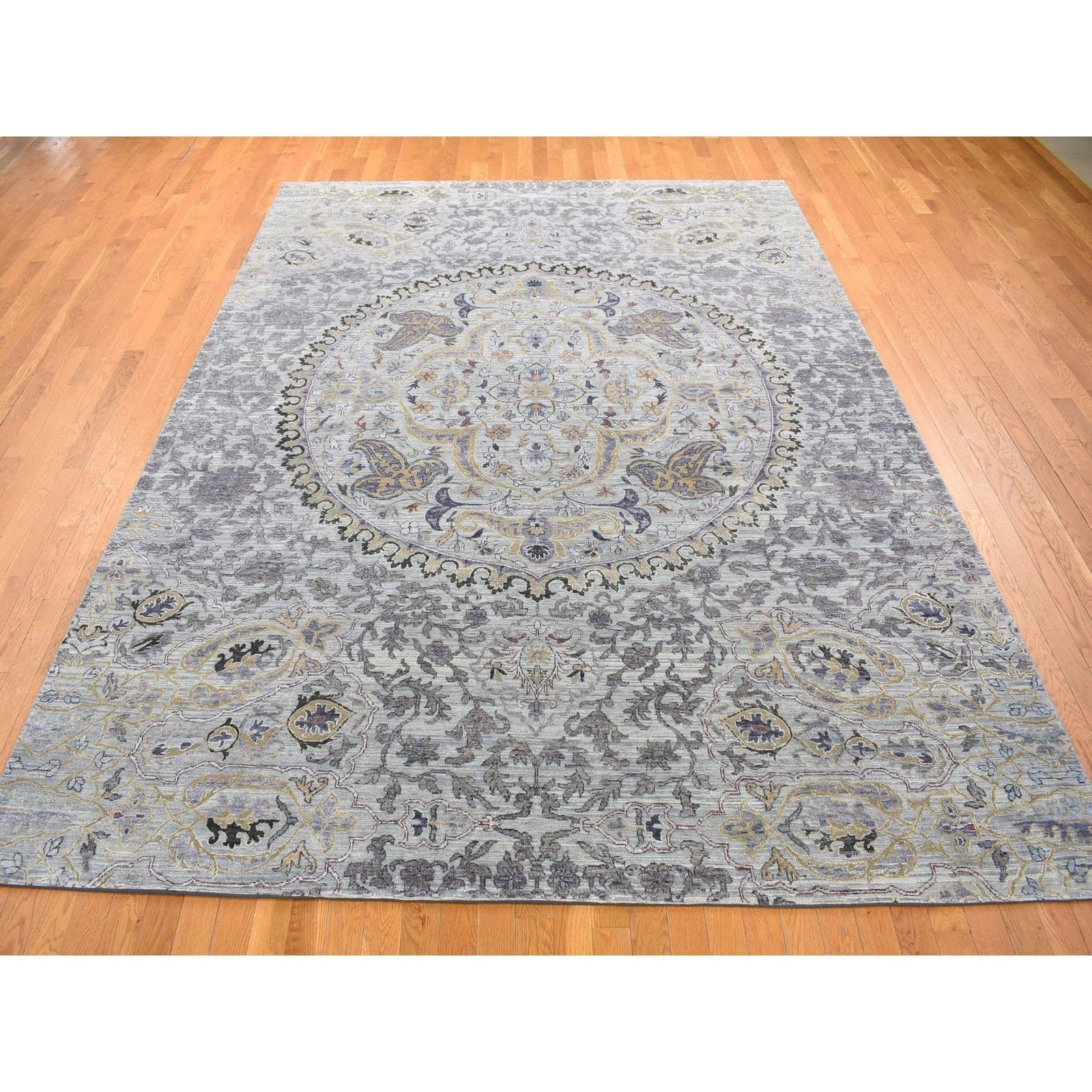 9'X12' Silver Gray The Maharaja Design Silk With Wool Hand Knotted Rug