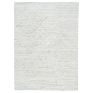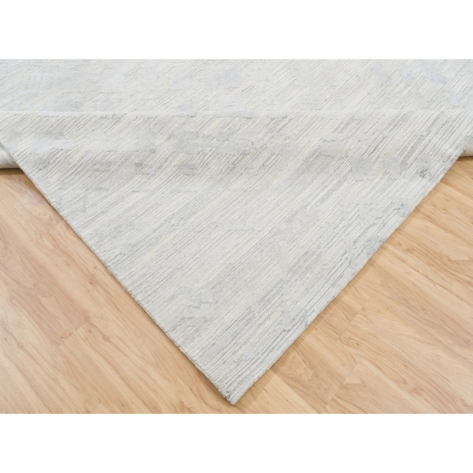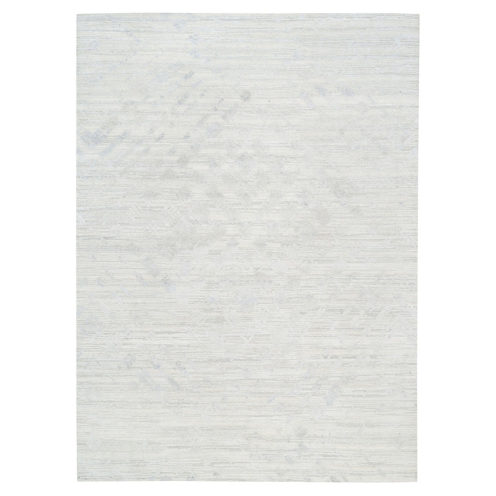 9'X12' Undyed Natural Wool Modern Light Gray Cut And Loop Pile Rug