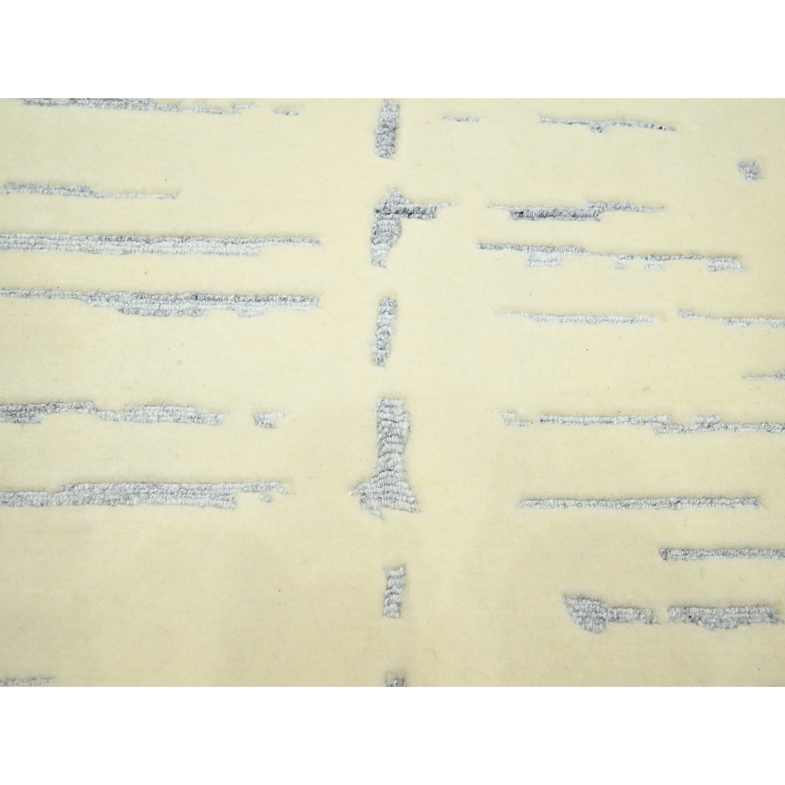 9'X12' White Modern Design Textured Weave Wool & Silk Hand Knotted Rug