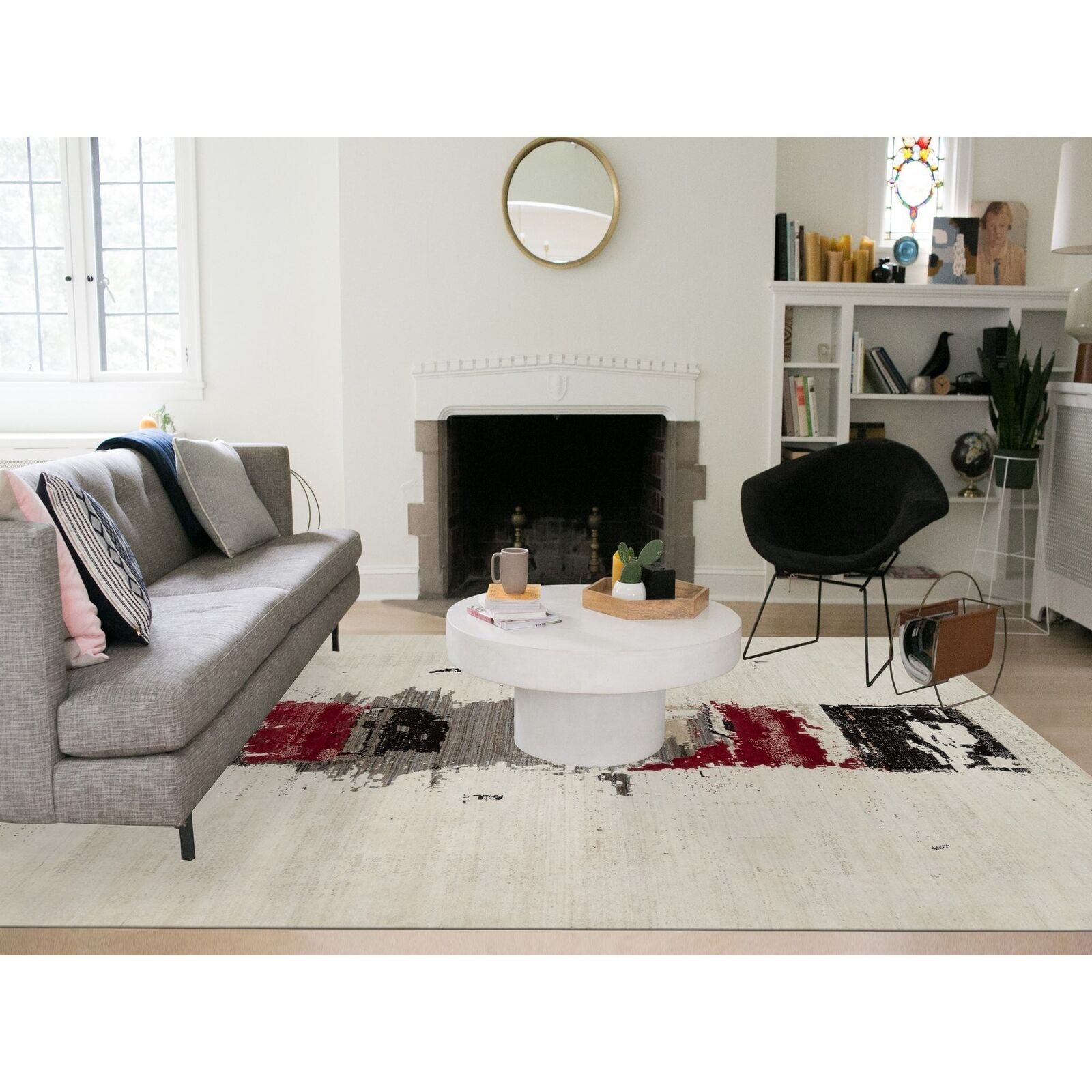 9'X12' White Modern Lori Buft Gabbeh 100% Wool Hand Knotted Oriental Rug