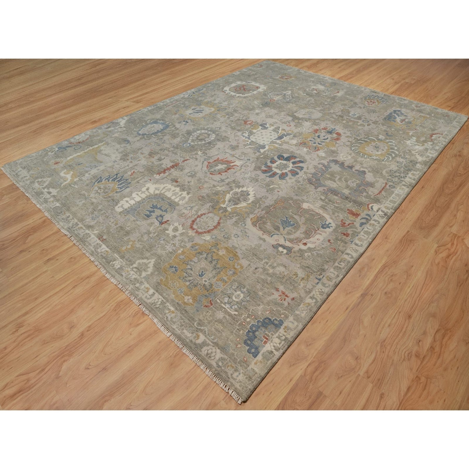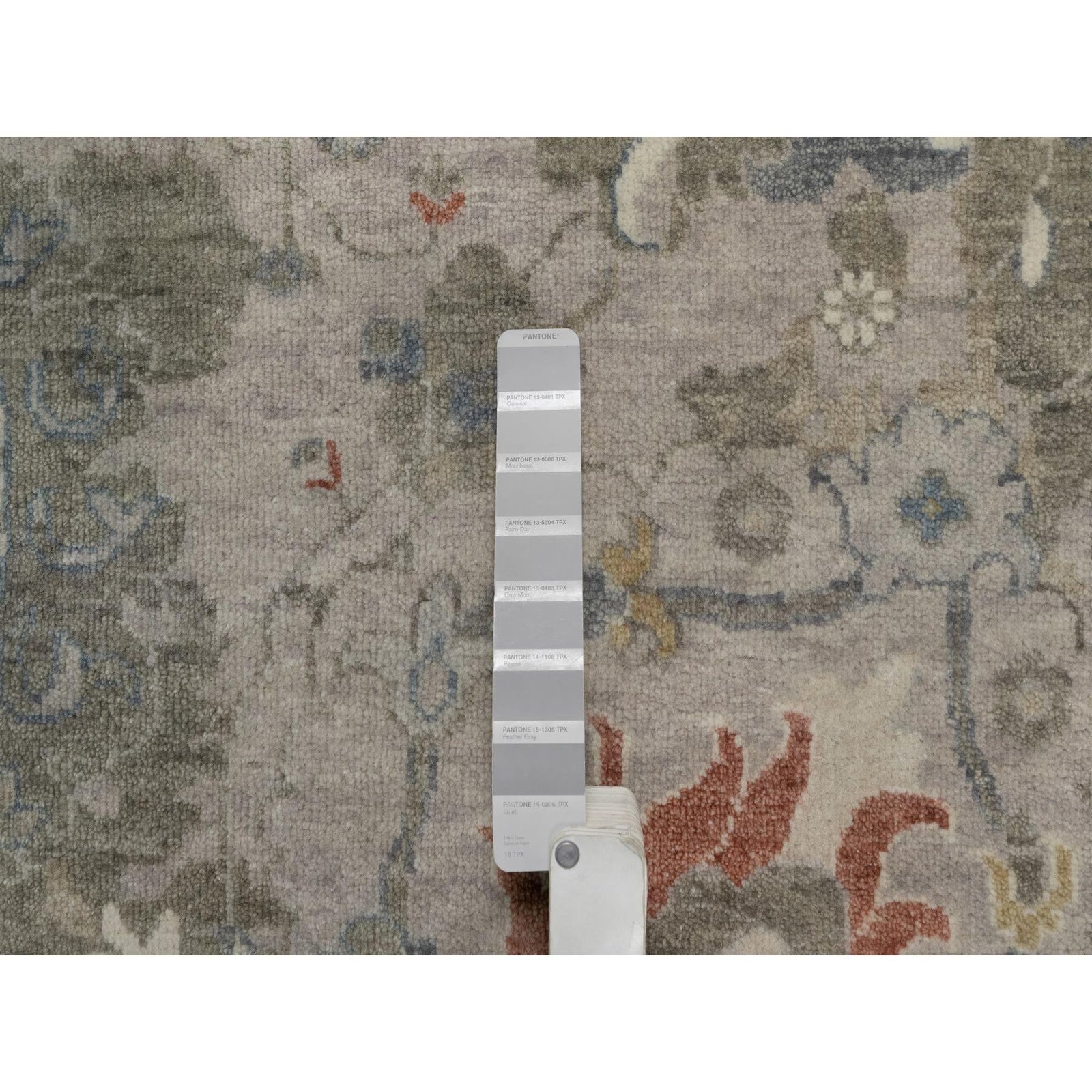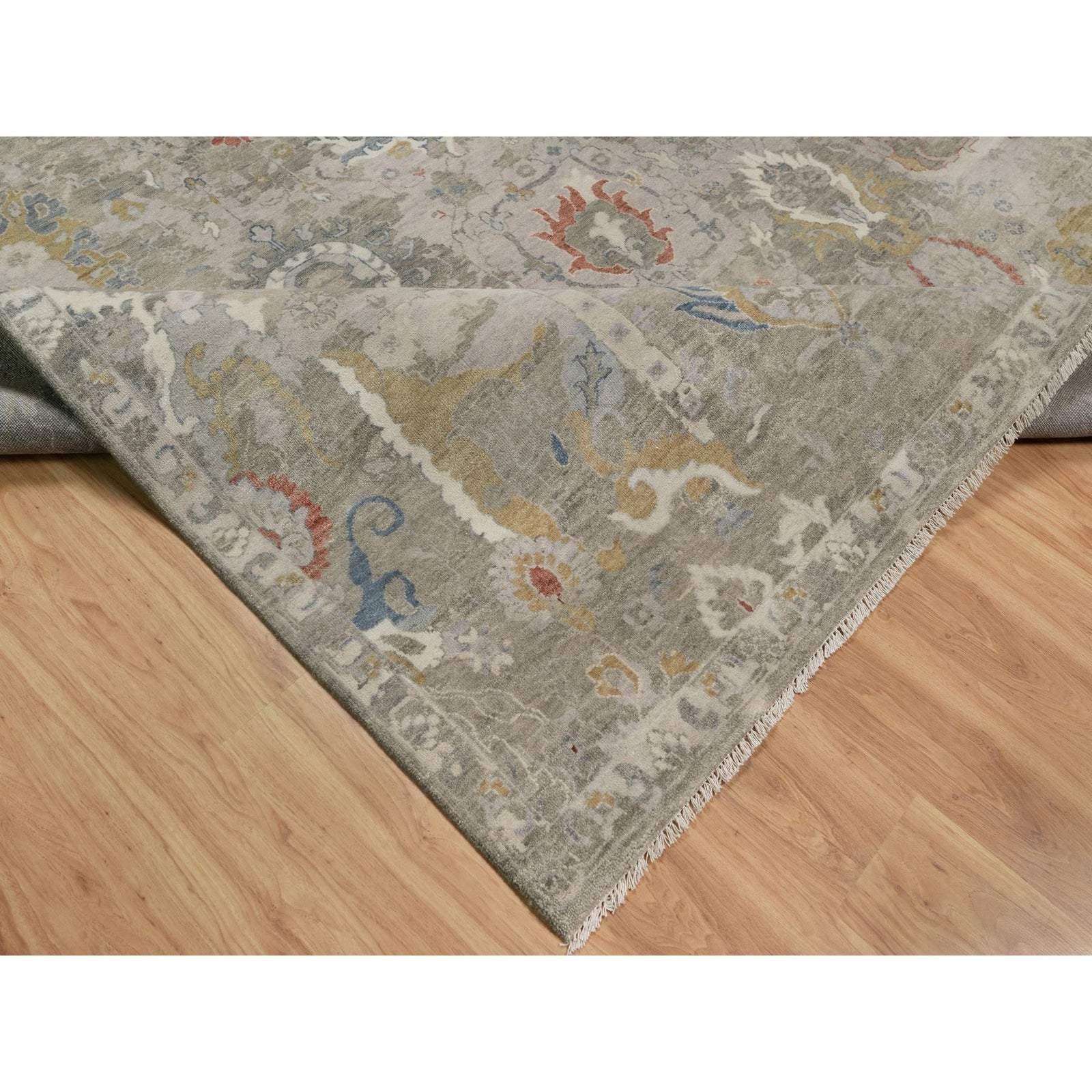 9'X12'1" Gray Broken Pattern Oushak Design Hand Knotted Rug Pure Wool