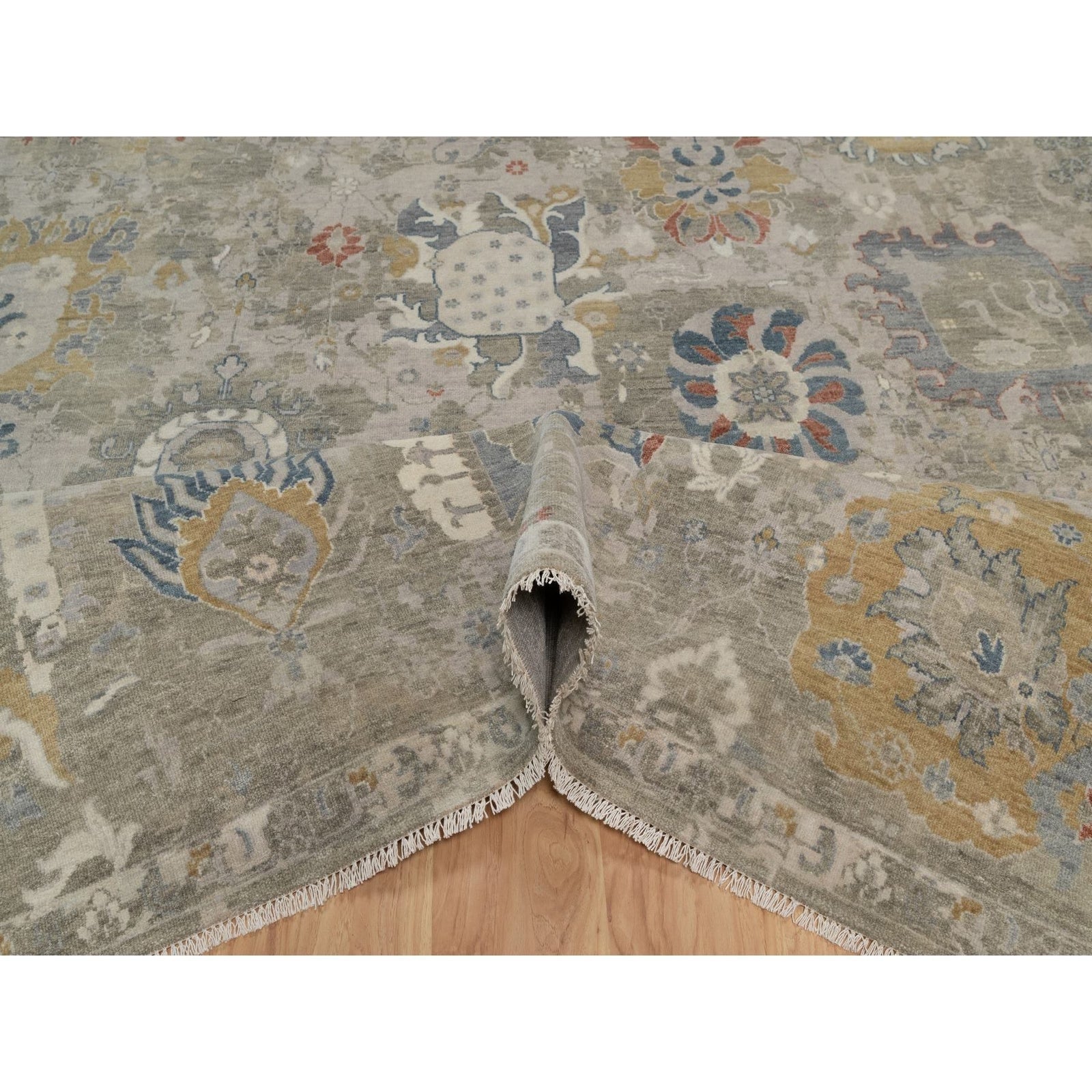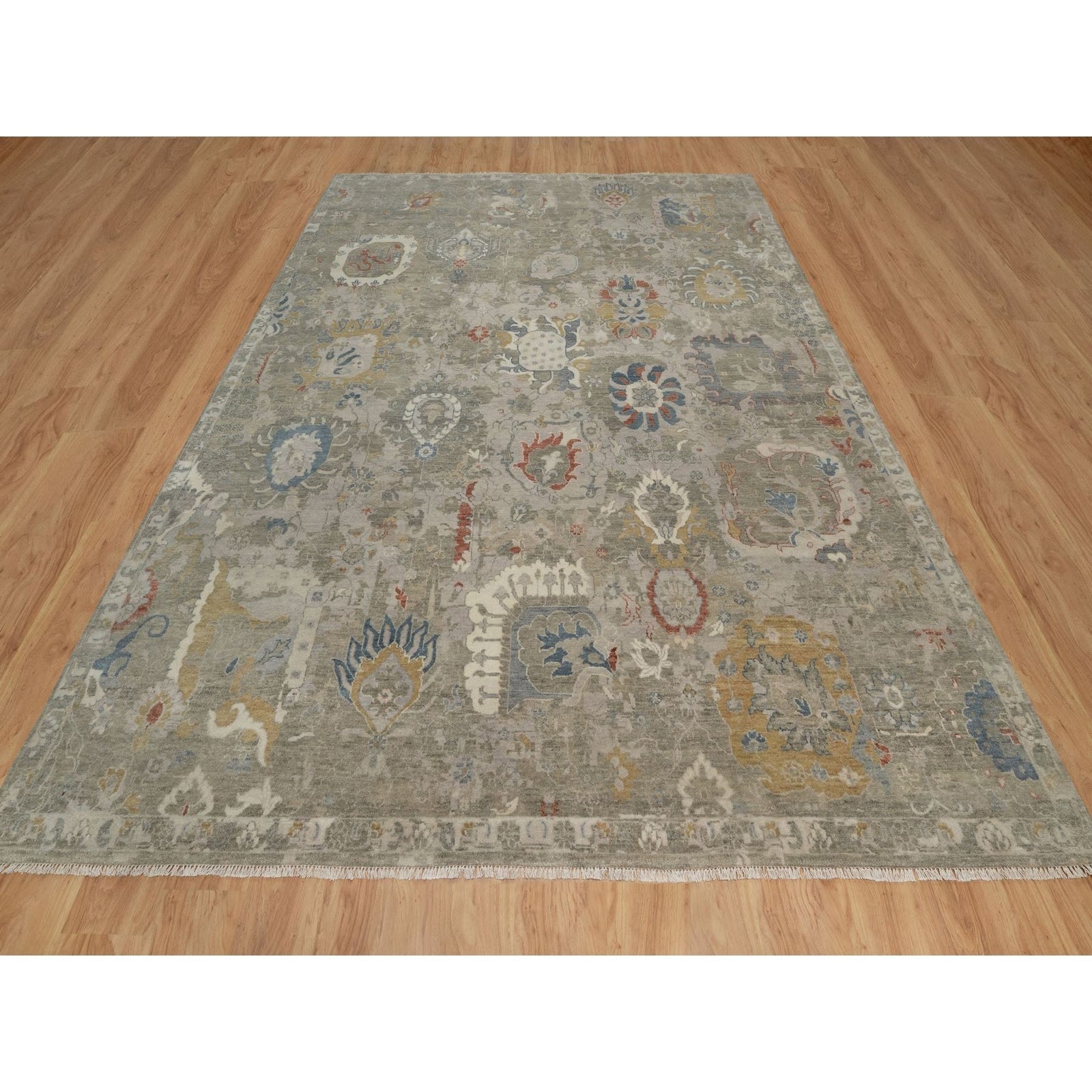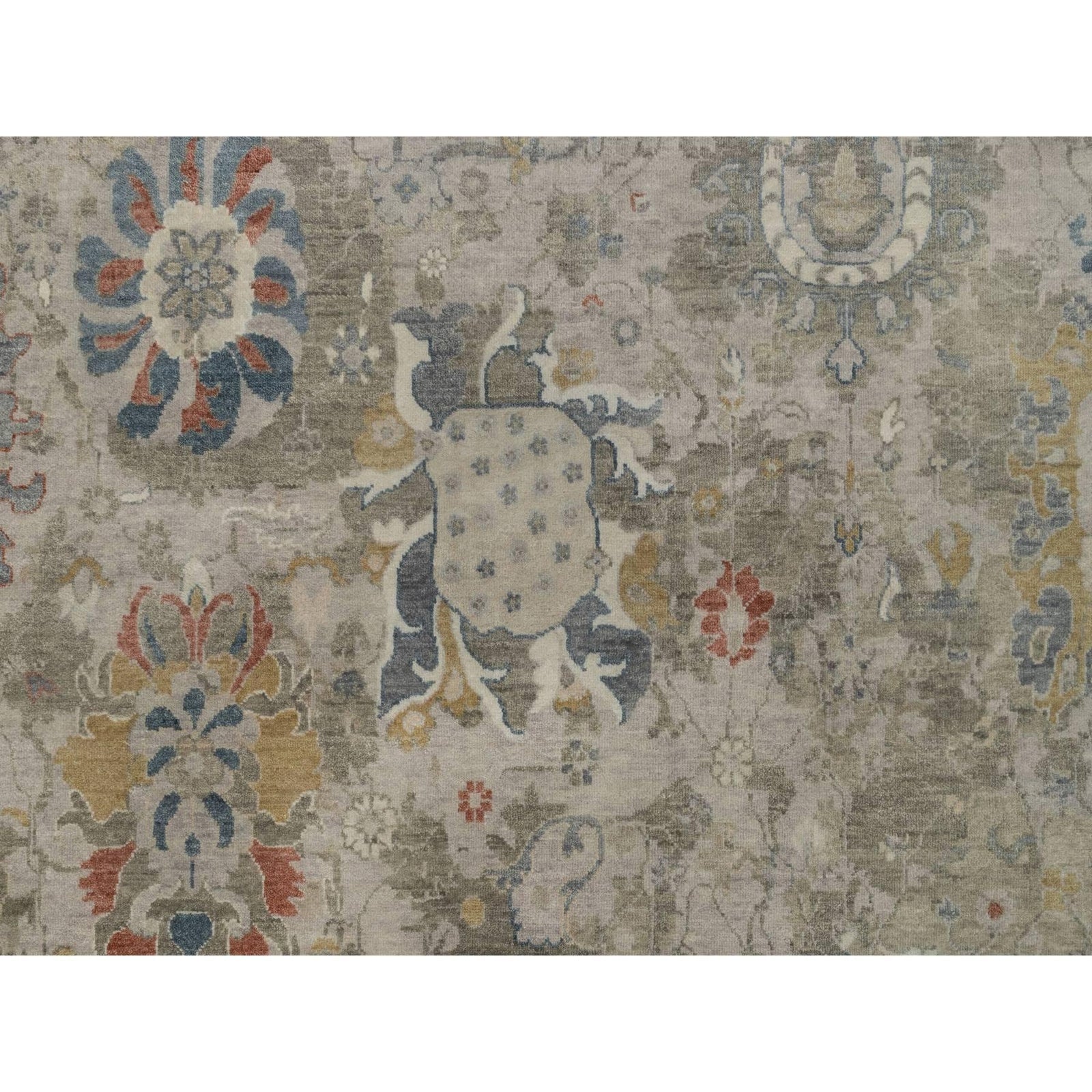 9'X12'1" Gray Broken Pattern Oushak Design Hand Knotted Rug Pure Wool