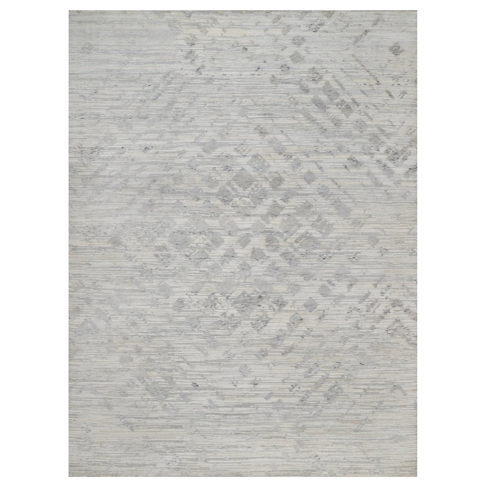 9'X12'1" Ivory Hand Knotted Modern Design Undyed Natural Wool Oriental Rug