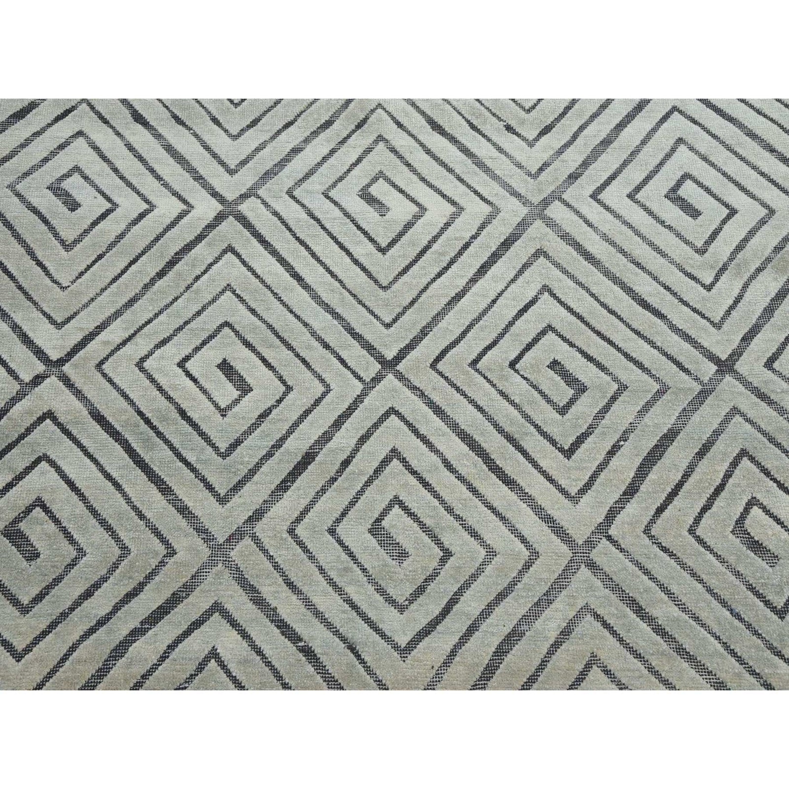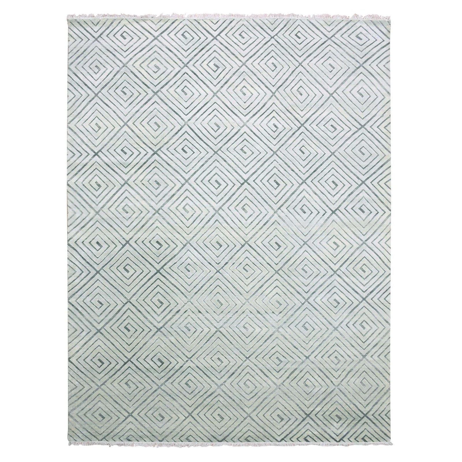 9'X12'1" Ivory Modern Roman Key Design Silk With Wool Hand Knotted Rug