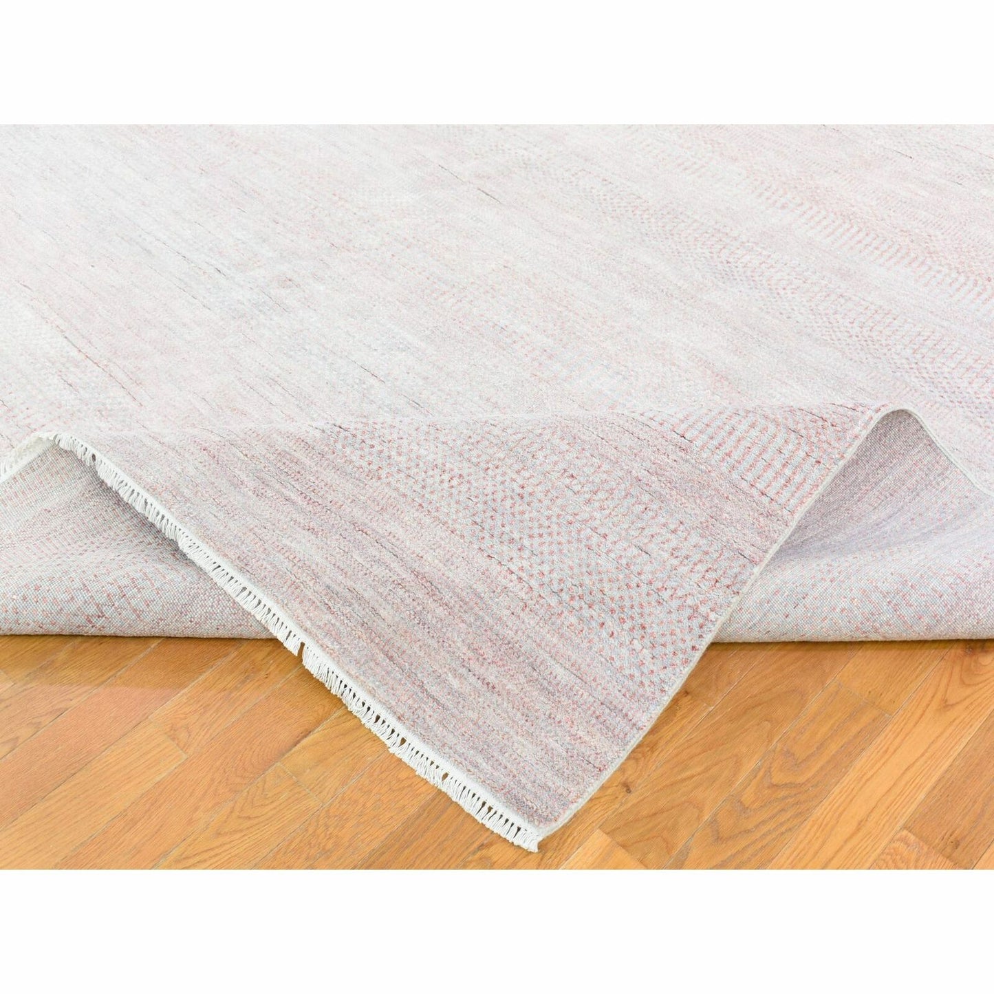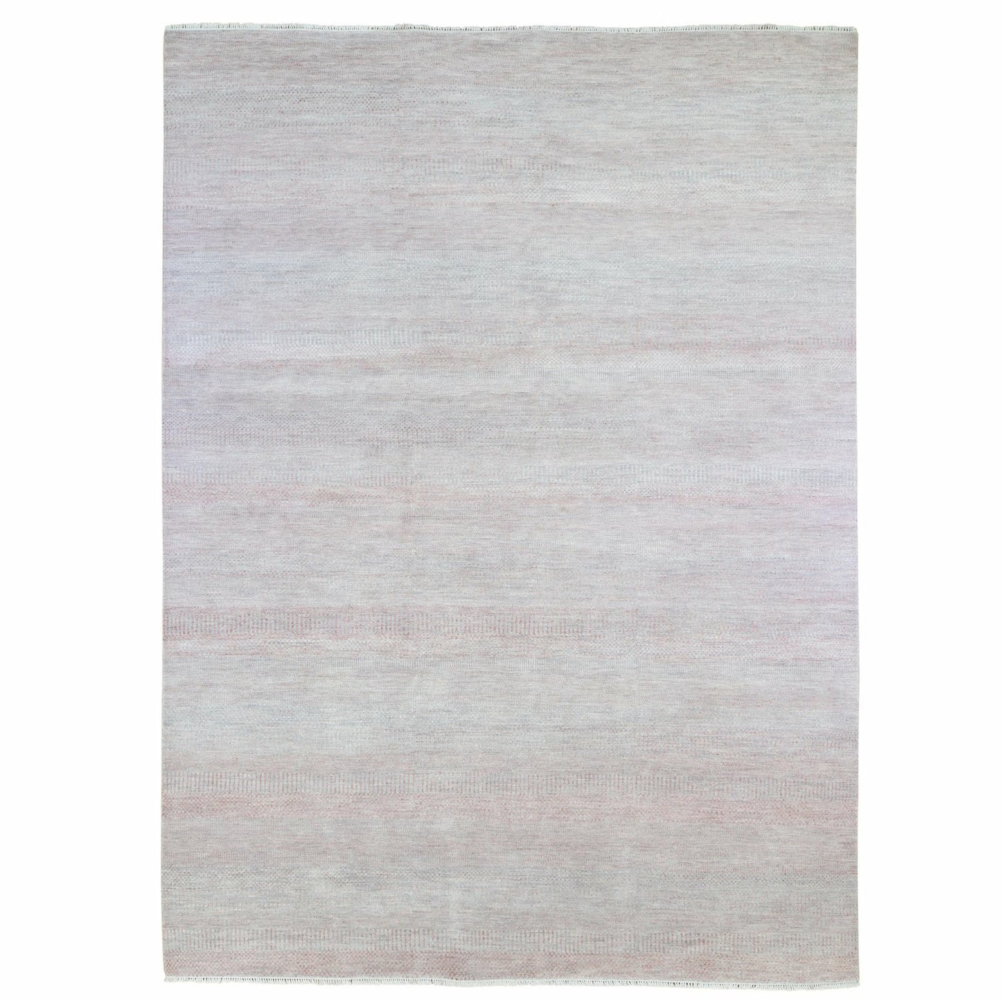 9'X12'1" Pink Grass Design Gabbeh Hand Knotted Wool And Silk Modern Rug