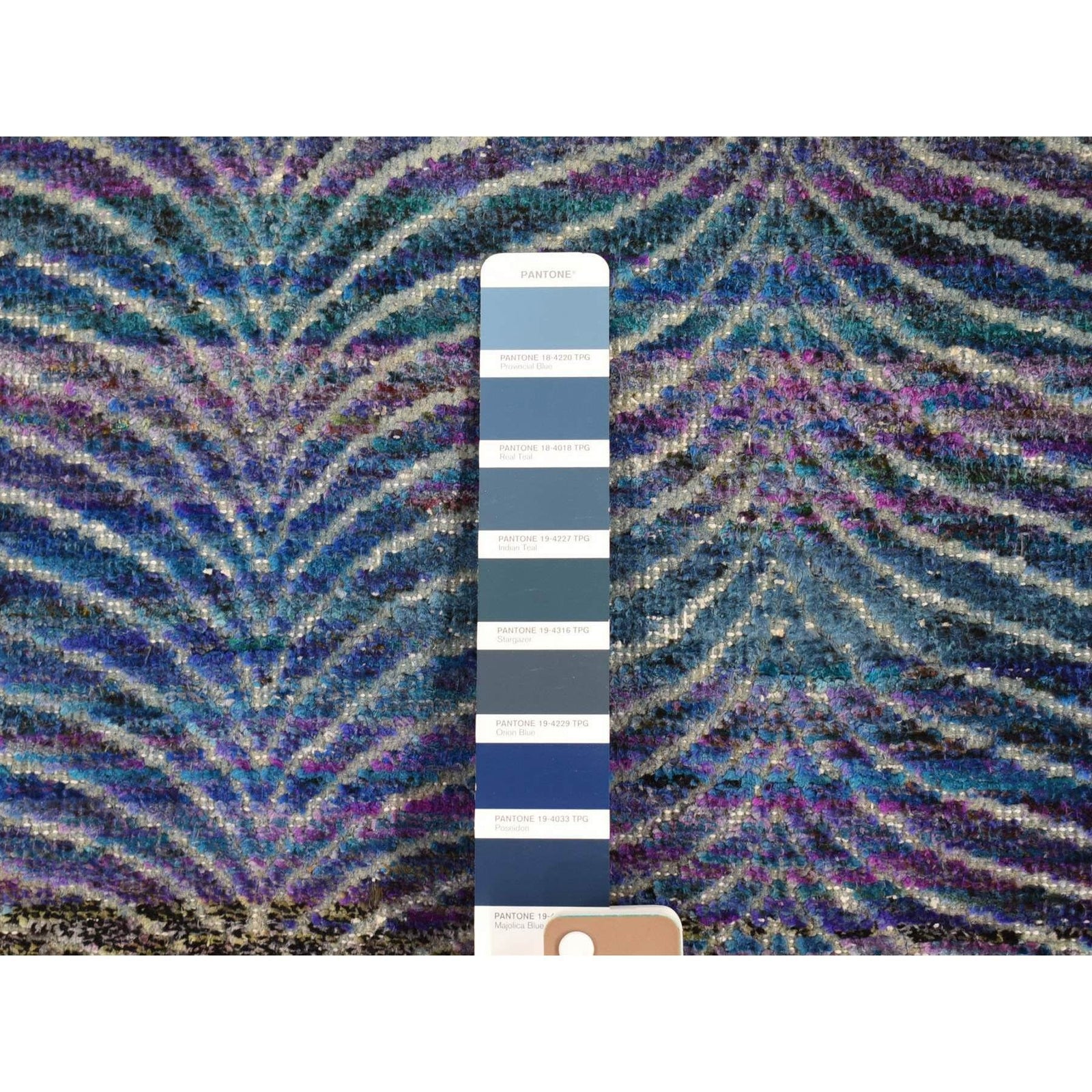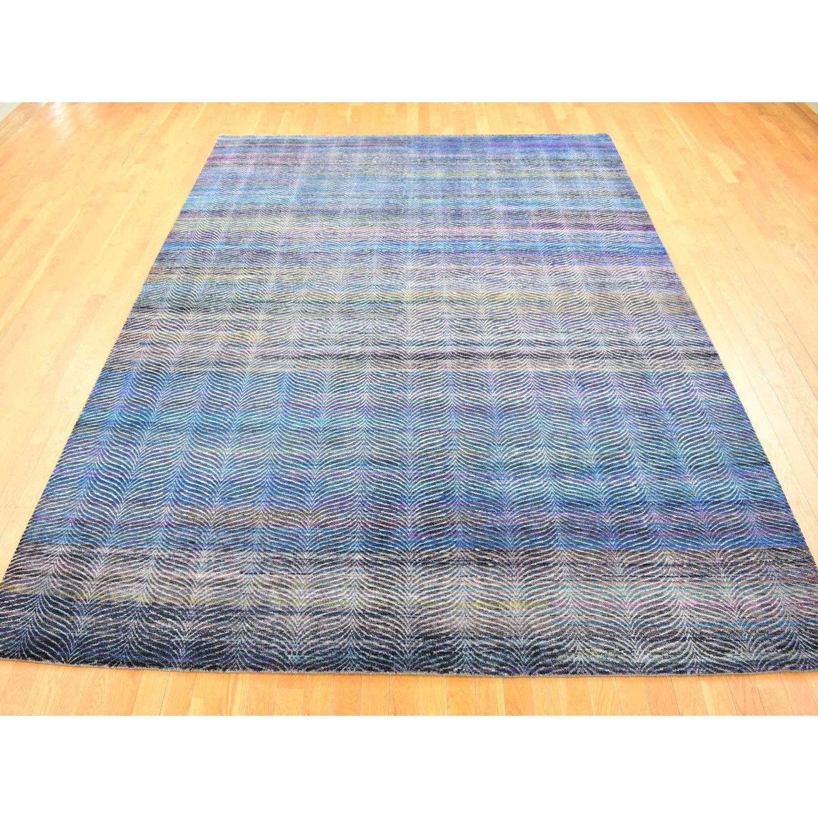 9'X12'2" Colorful Modern Leaf Design Silk And Wool Hand Knotted Rug
