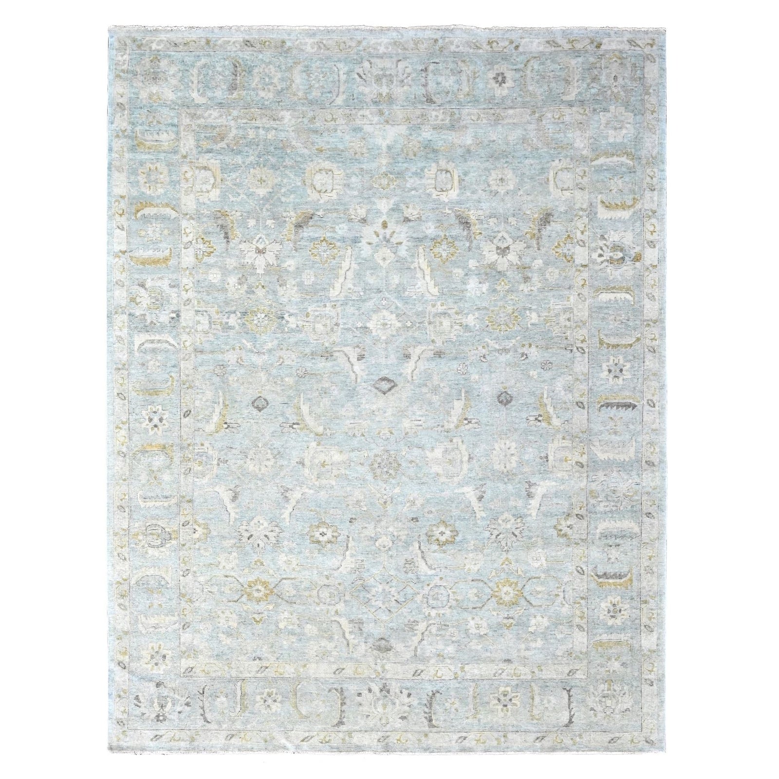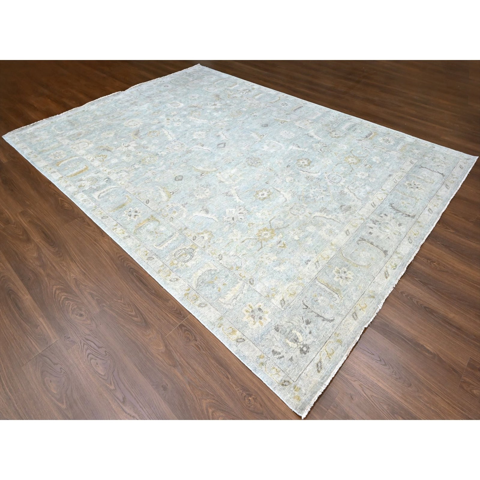 9'X12'2" Gray Antiqued Ziegler Mahal Design Pure Wool Hand Knotted Rug