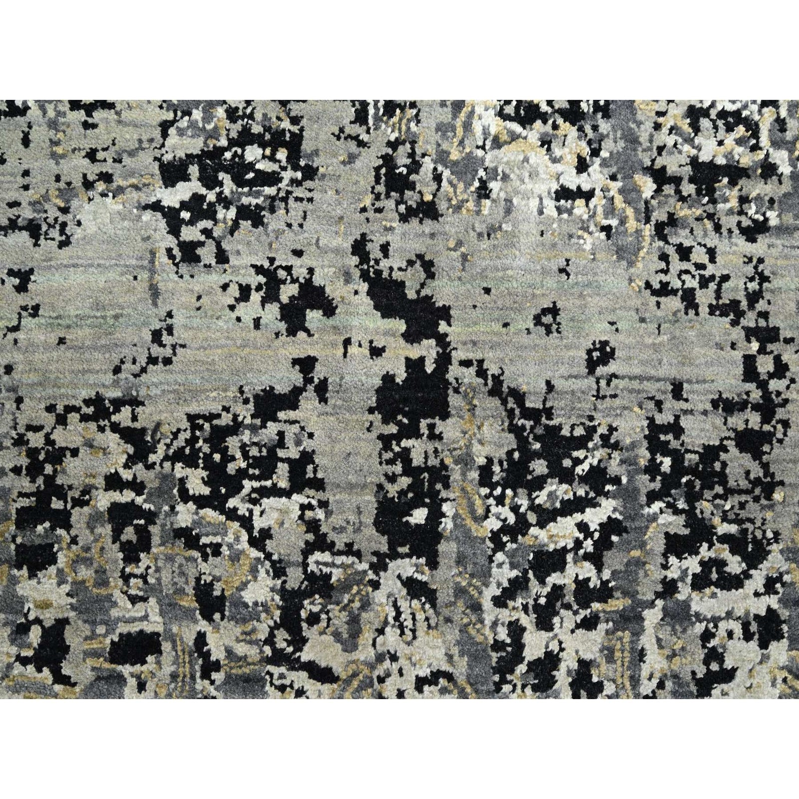 9'X12'2" Gray Erased Zoroastrian Design Wool And Silk Hand Knotted Rug