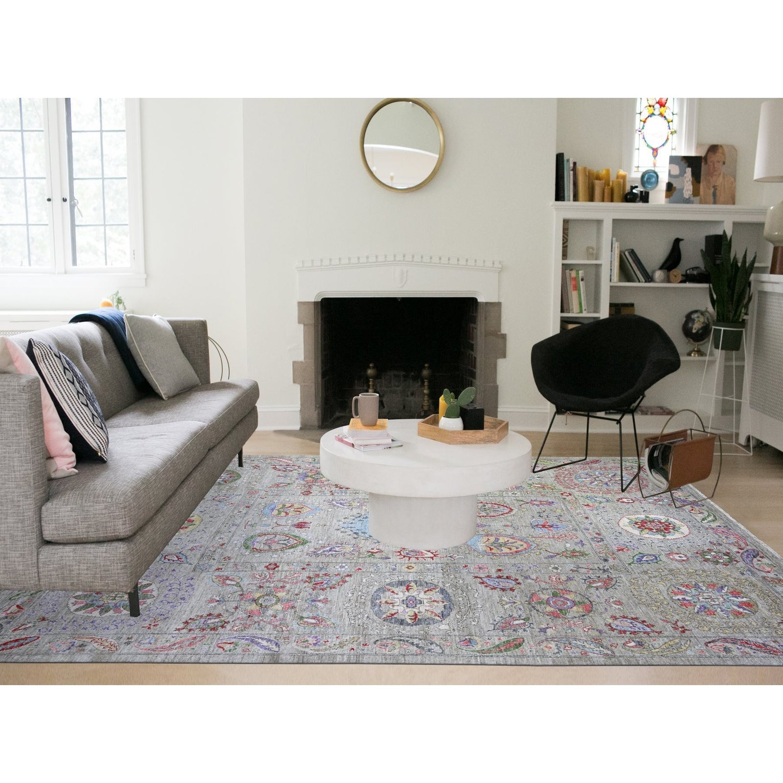 9'X12'2" Light Beige Soft Wool Hand Knotted Fine Peshawar Rug