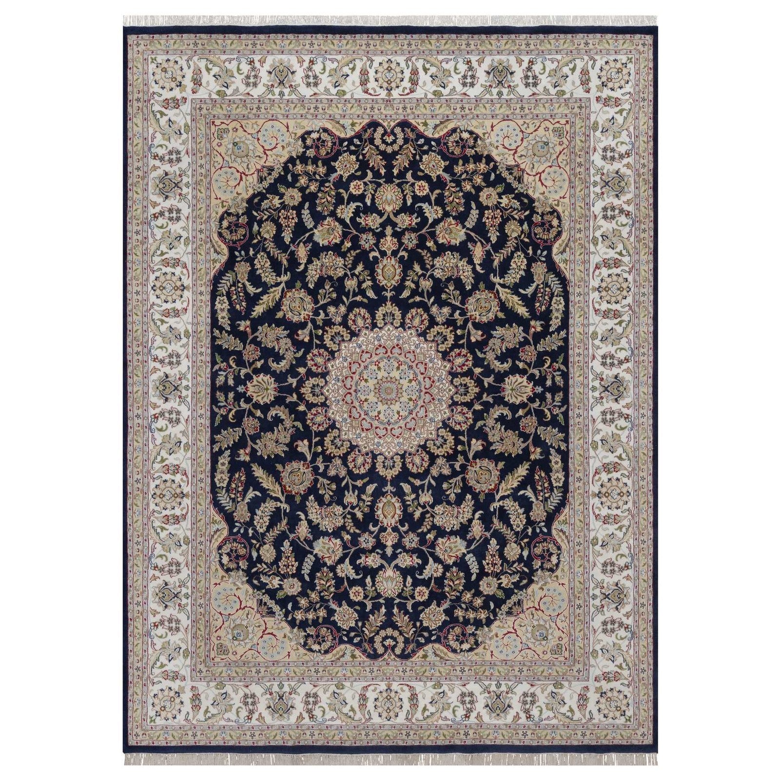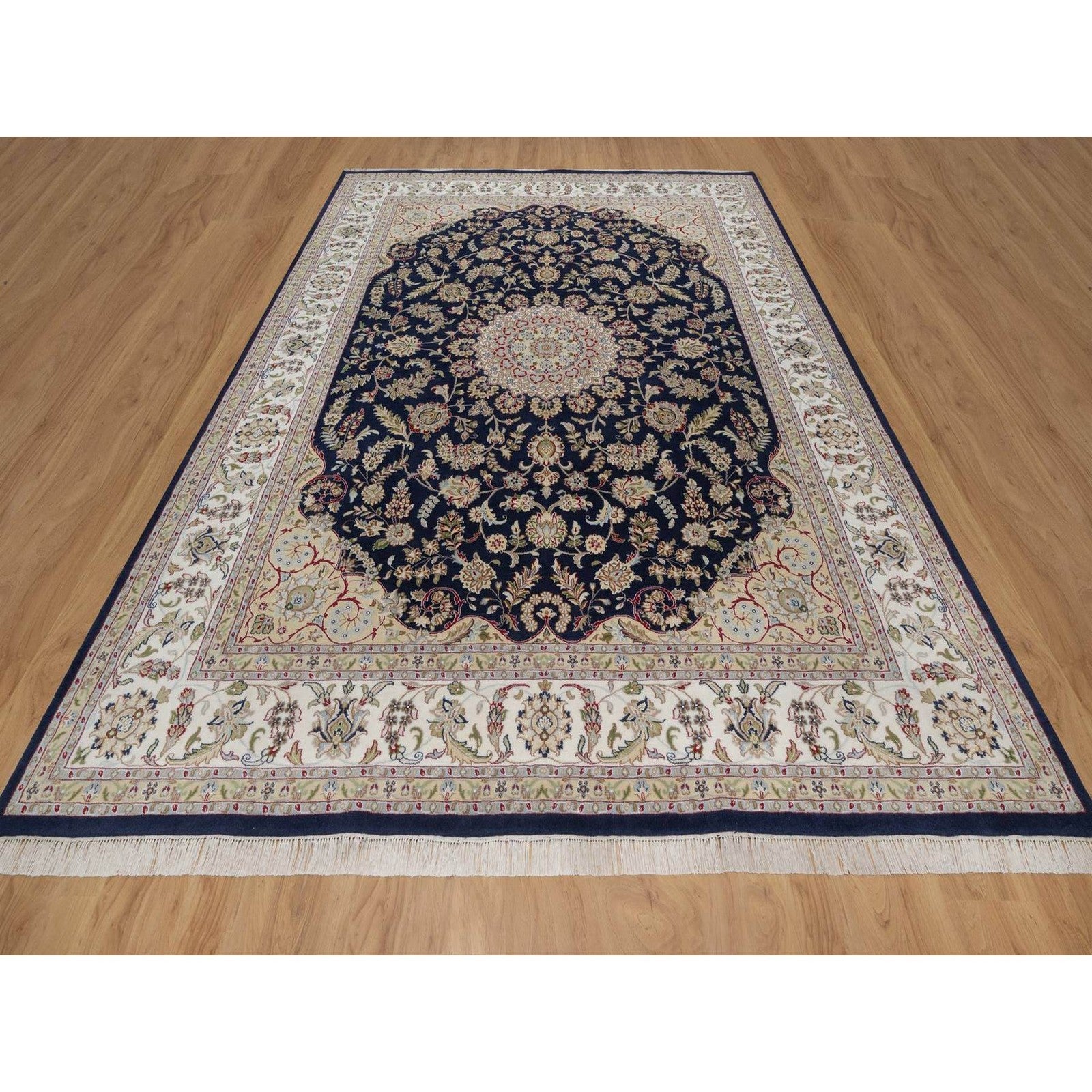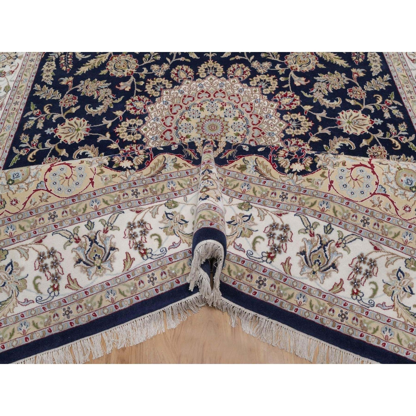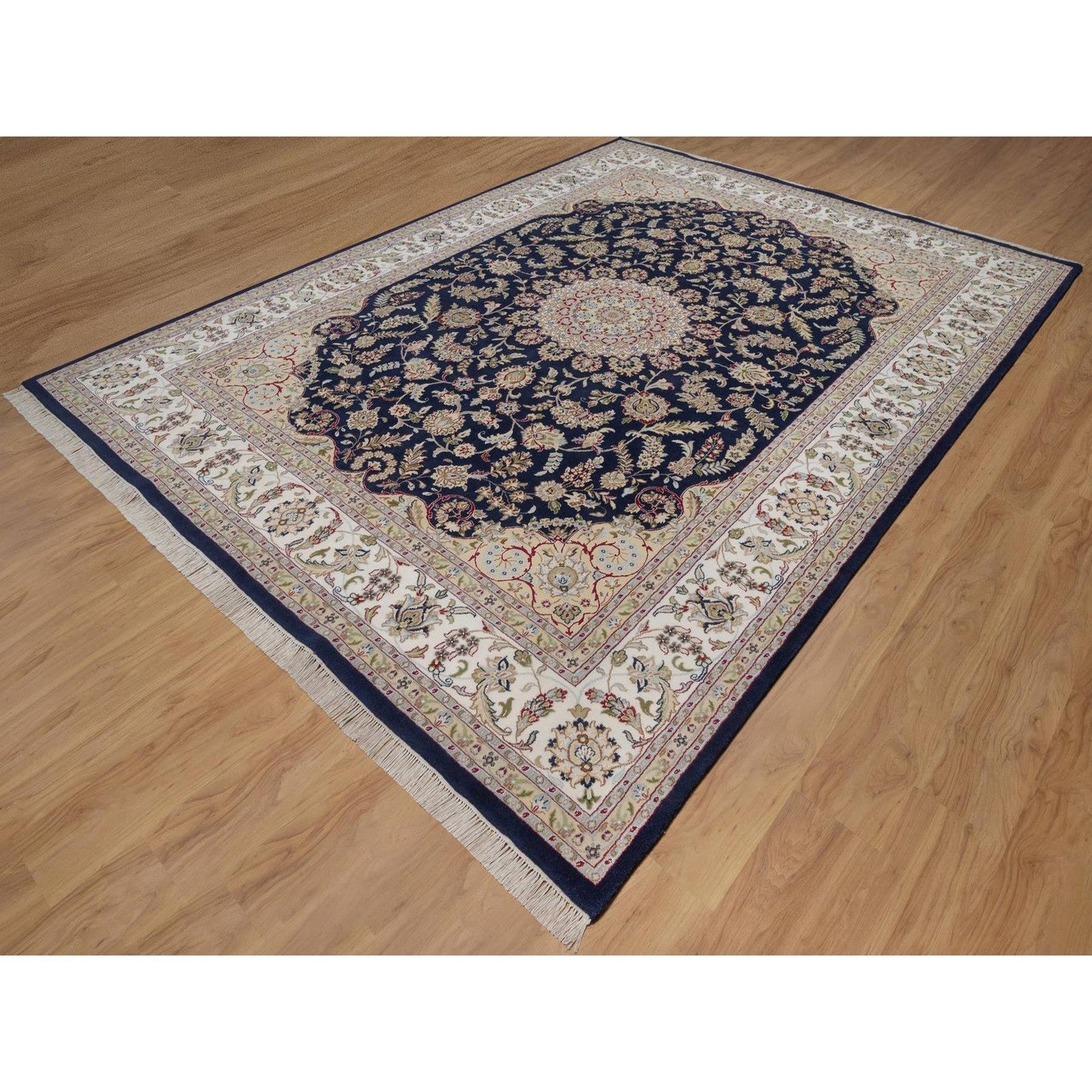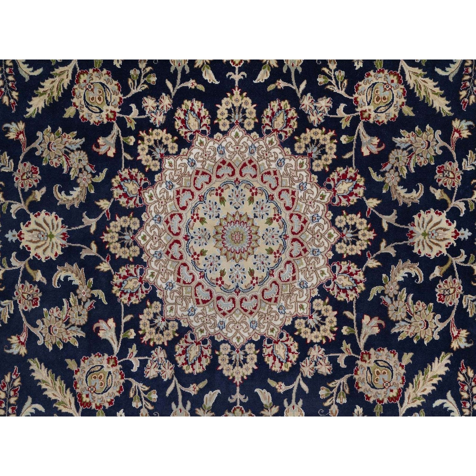 9'X12'2" Midnight Blue Nain Flower Design Wool And Silk Hand Knotted Rug