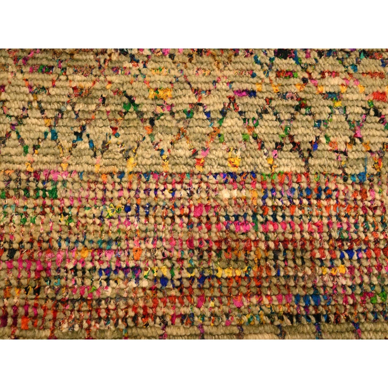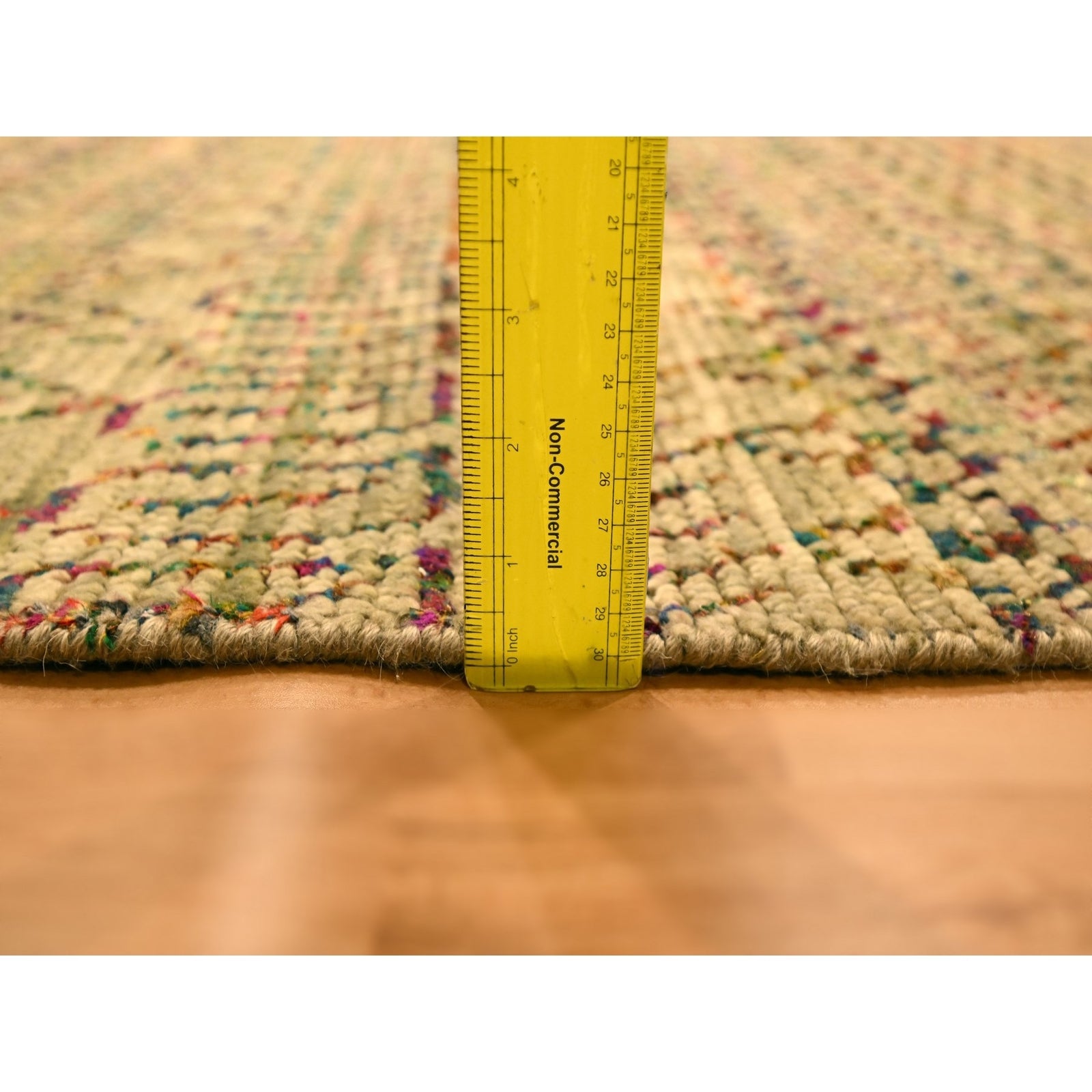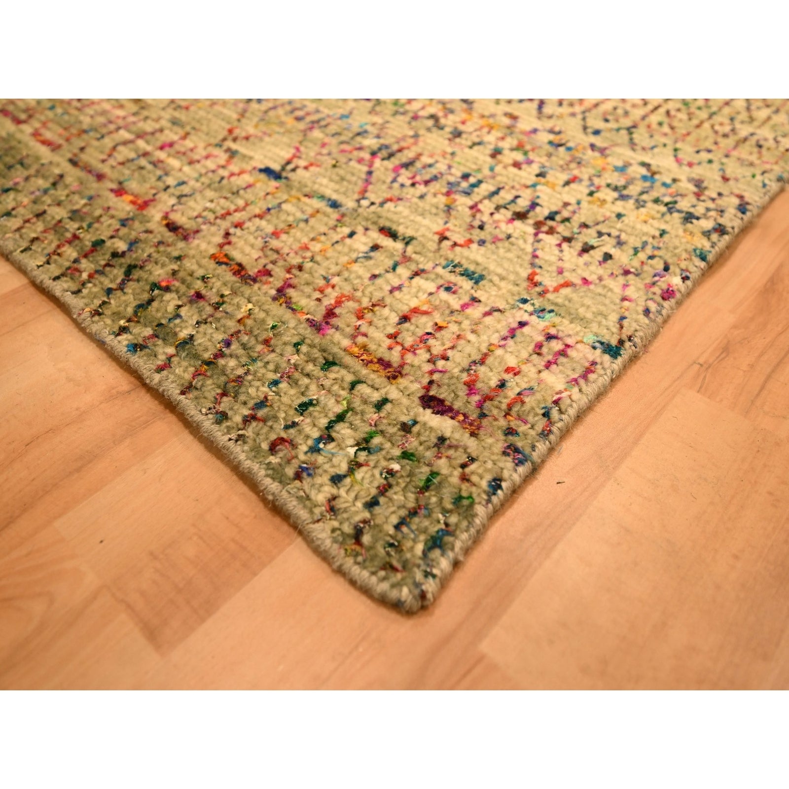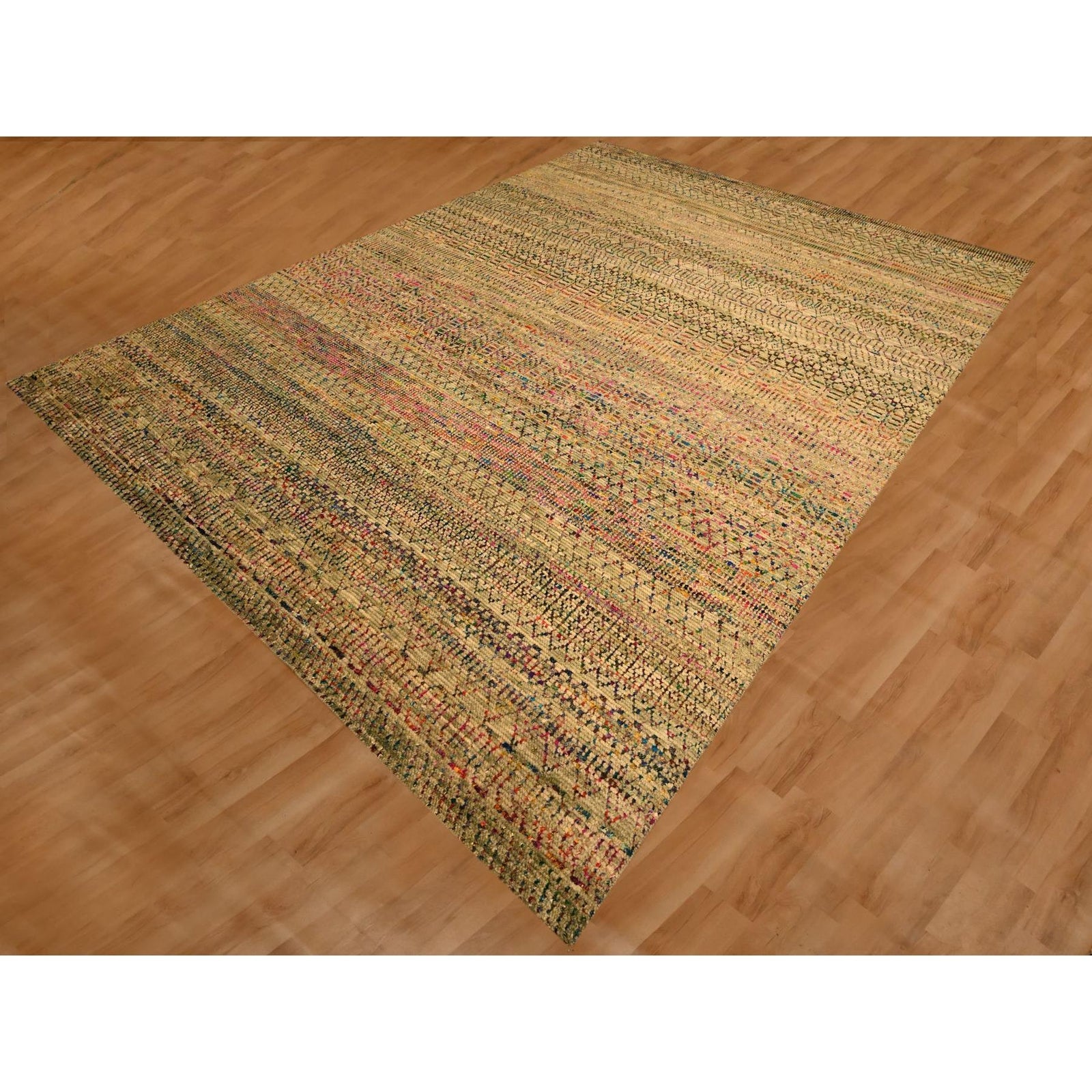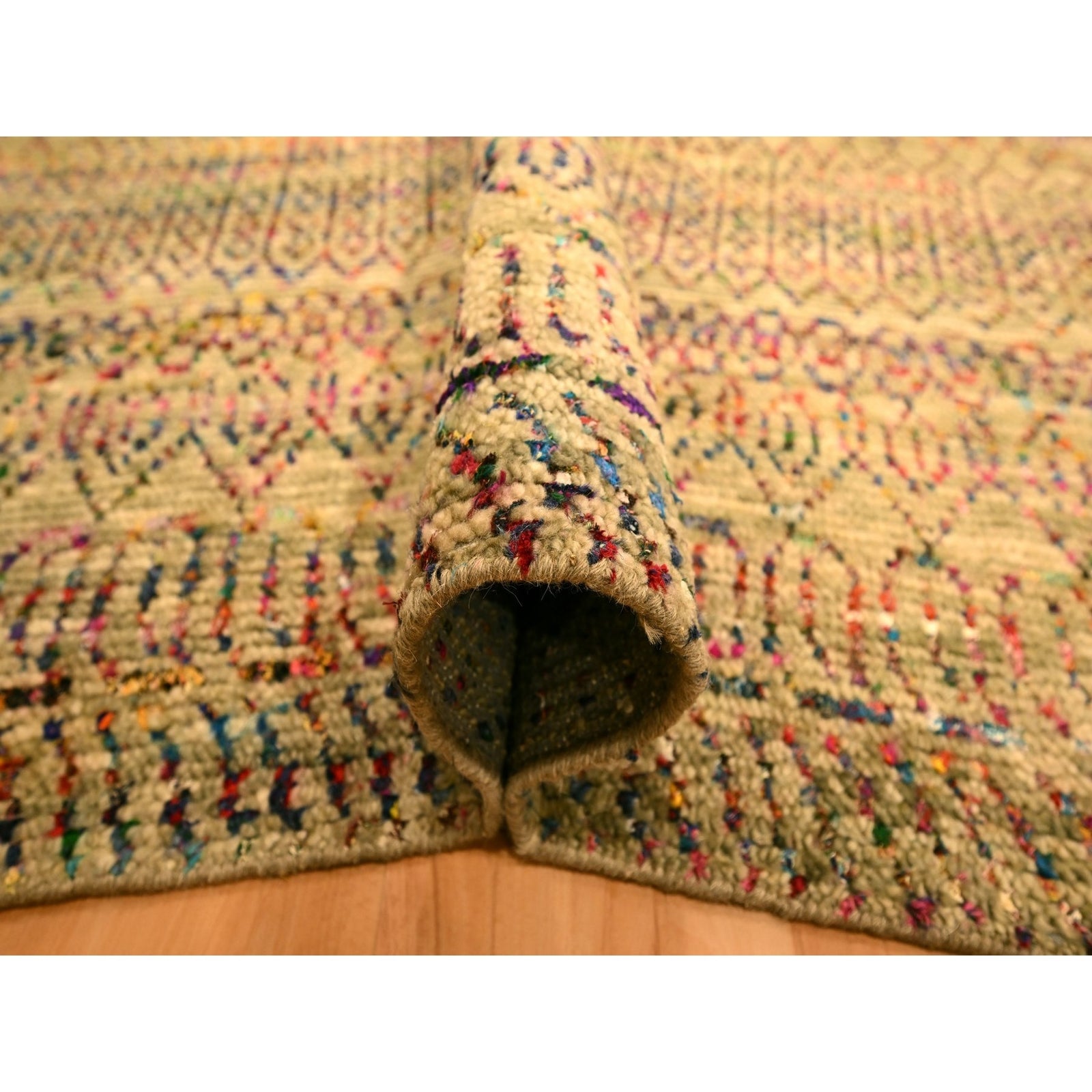9'X12'3" Brown Sari Silk And Wool Geometric Design Hand Knotted Rug
