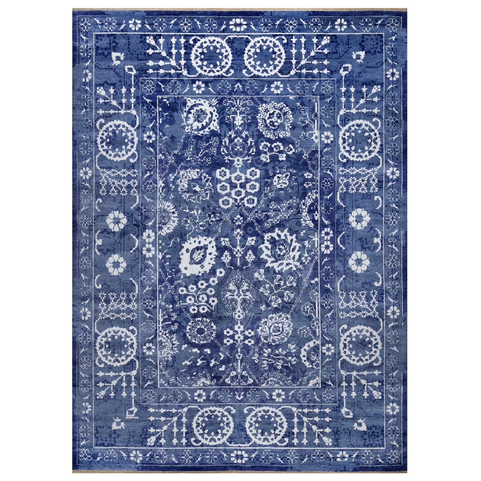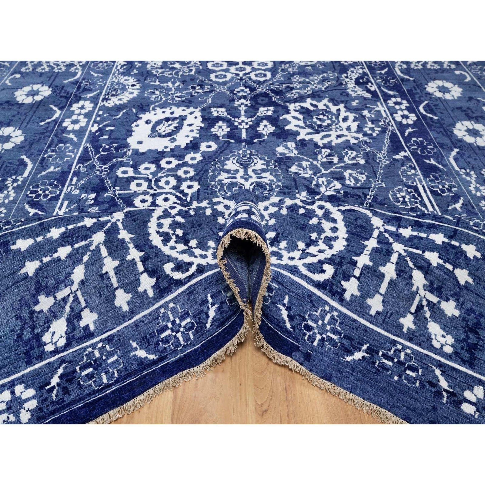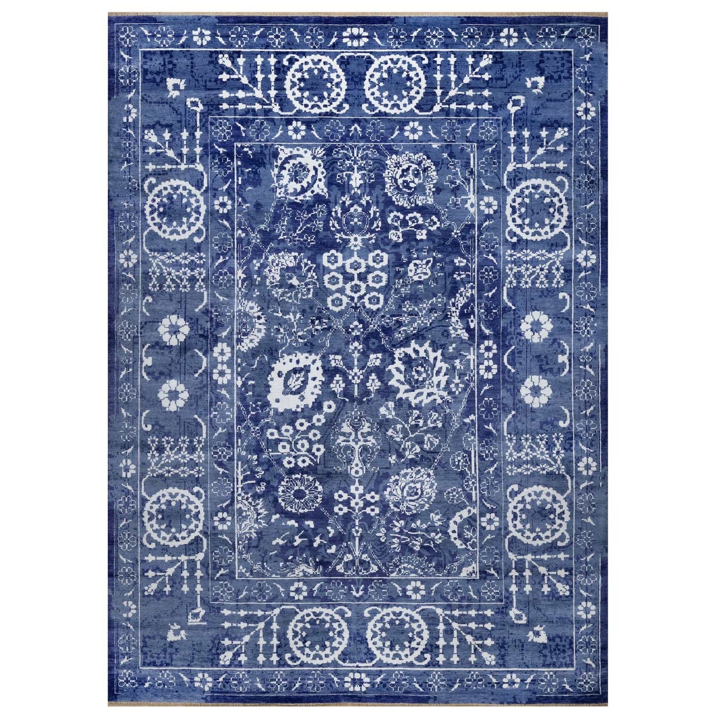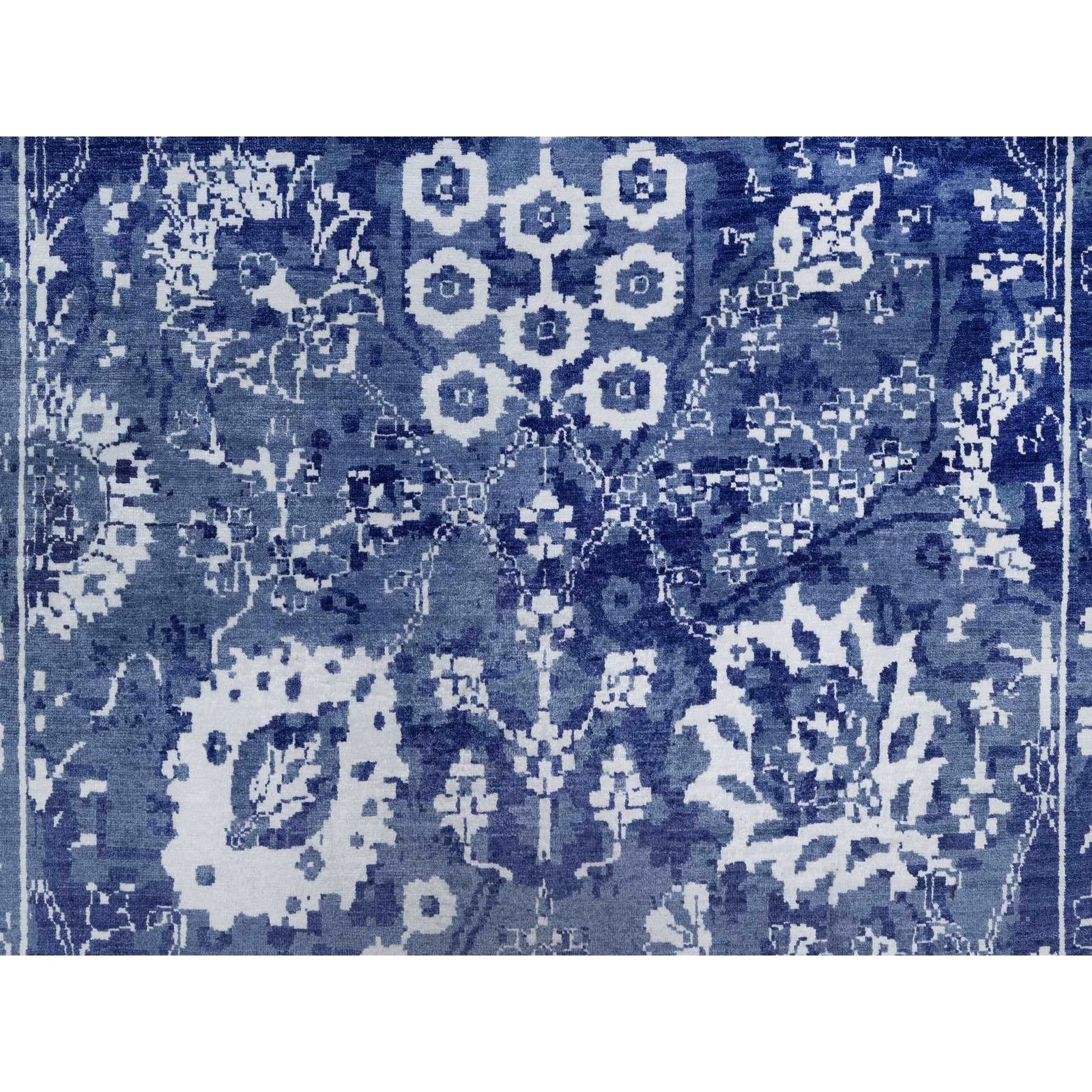 9'X12'3" Yale Blue Tebraz With Leaf Motifs Hand Knotted Wool And Silk Rug