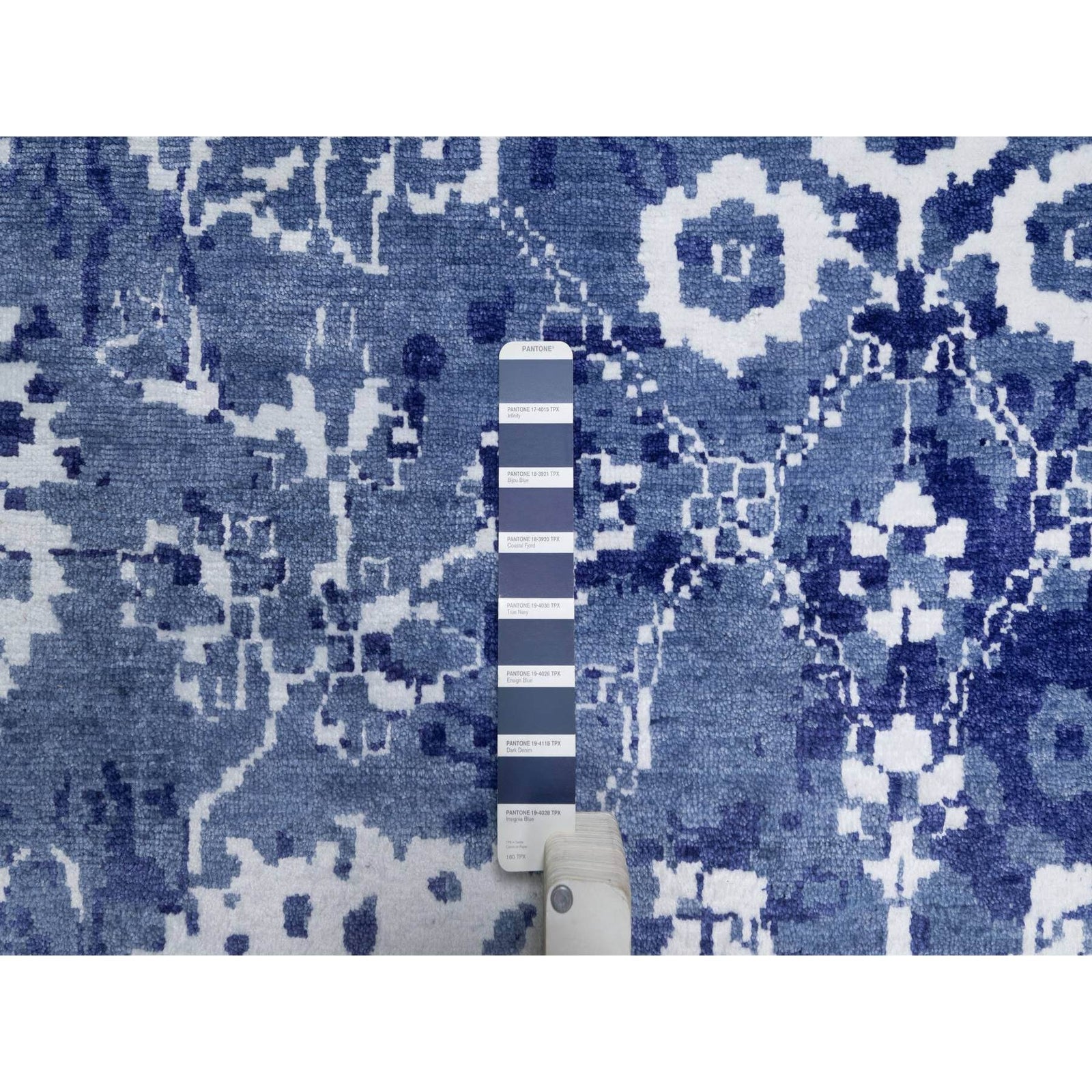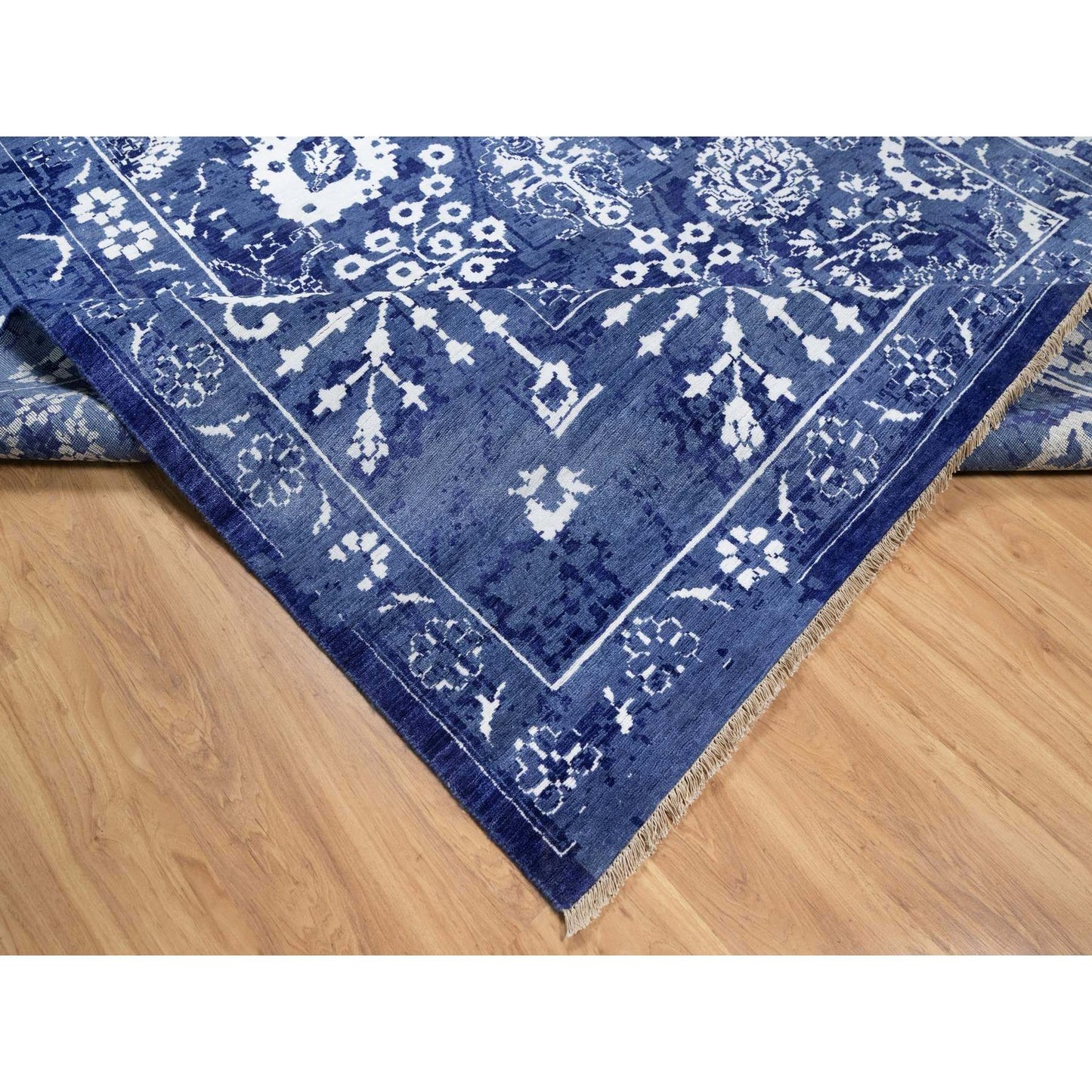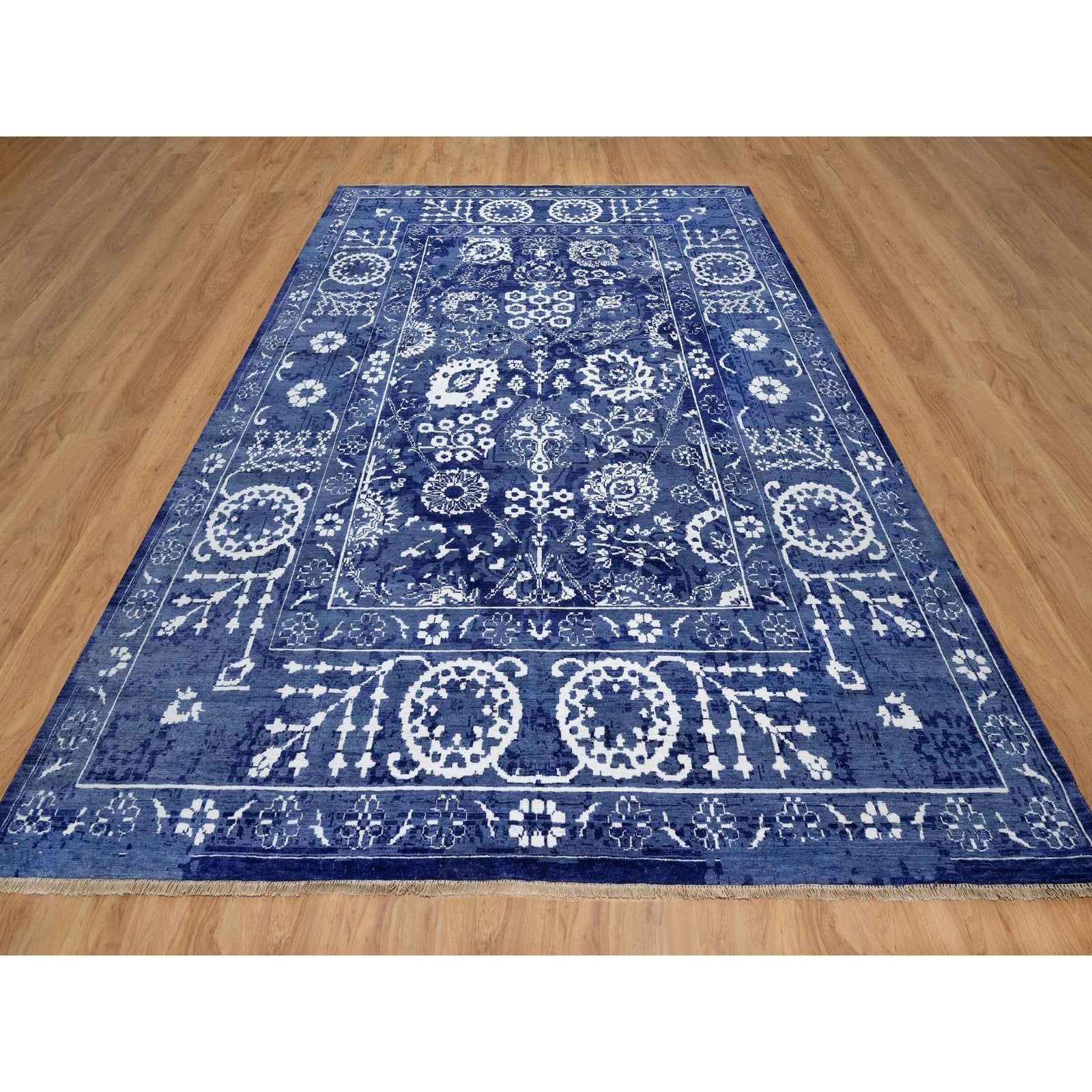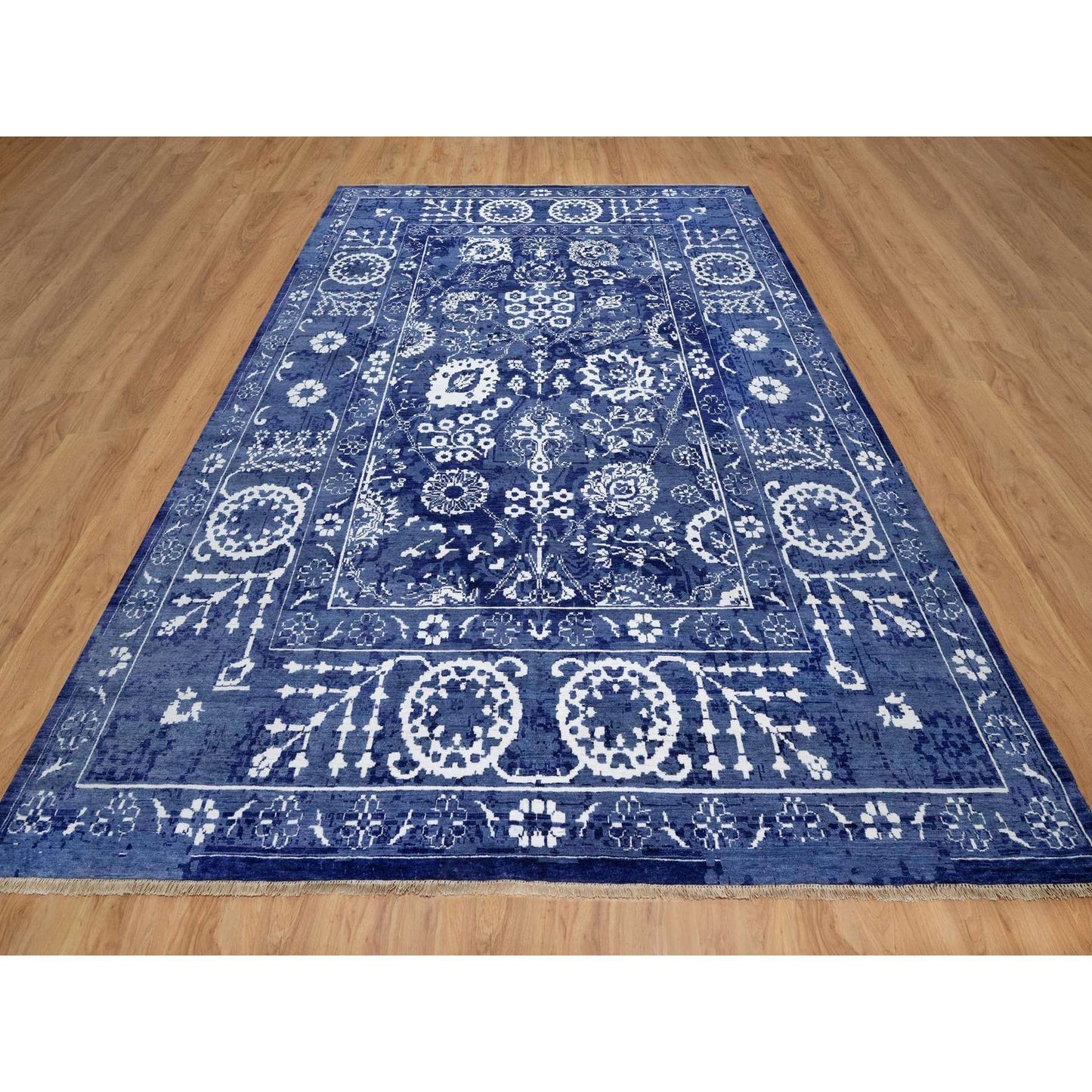 9'X12'3" Yale Blue Tebraz With Leaf Motifs Hand Knotted Wool And Silk Rug