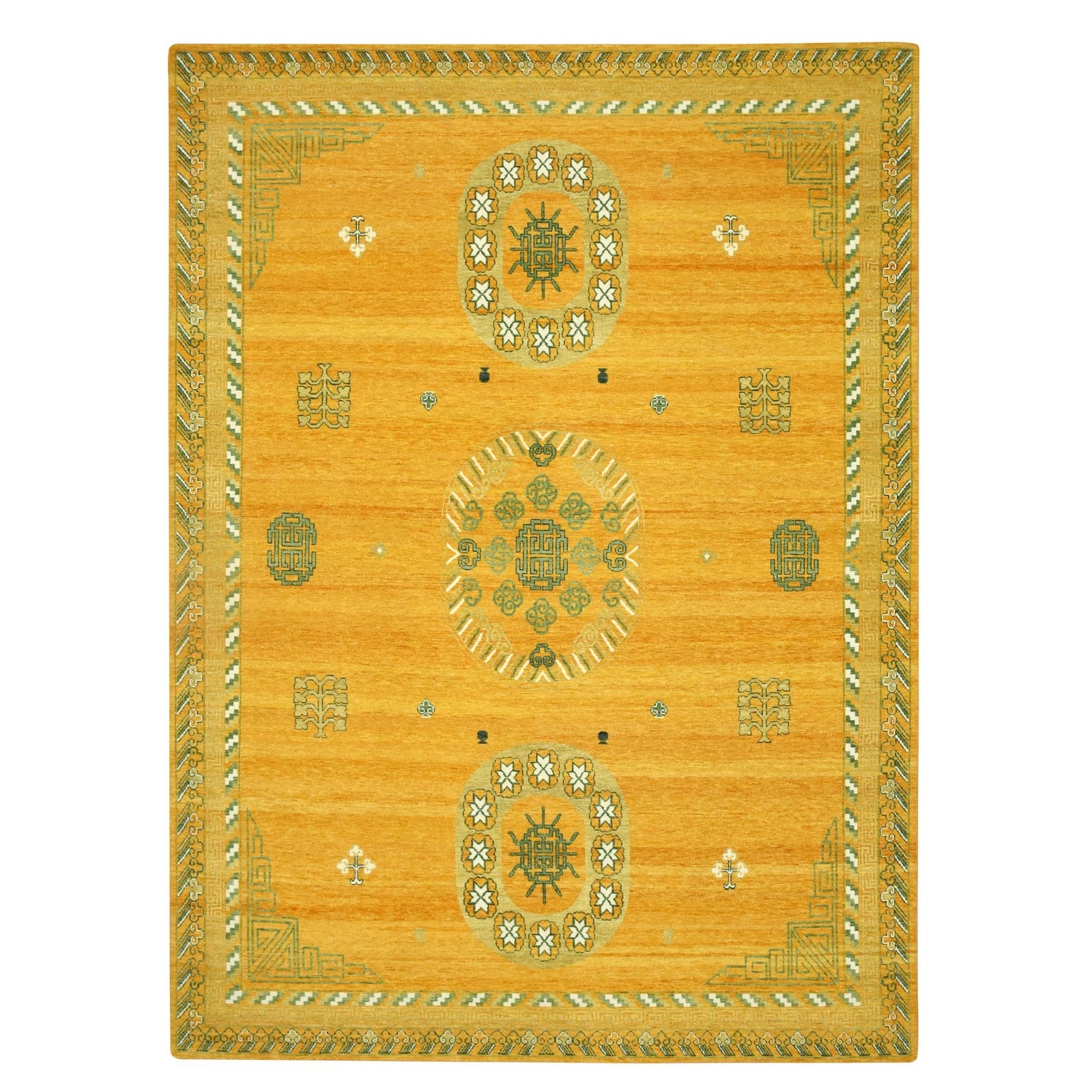 9'X12'4" Golden Yellow Khotan Design Hand Knotted 100% Wool Oriental Rug