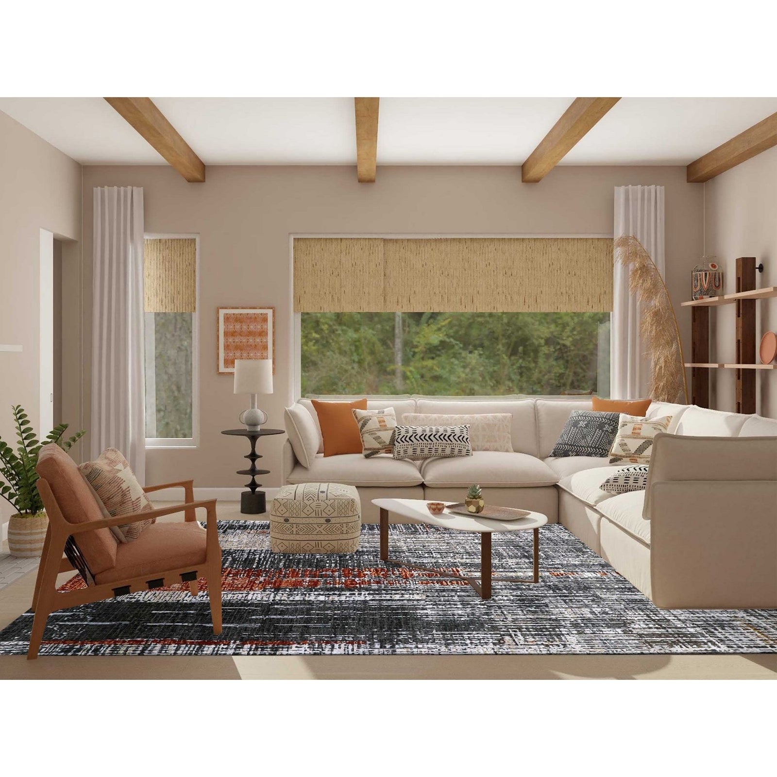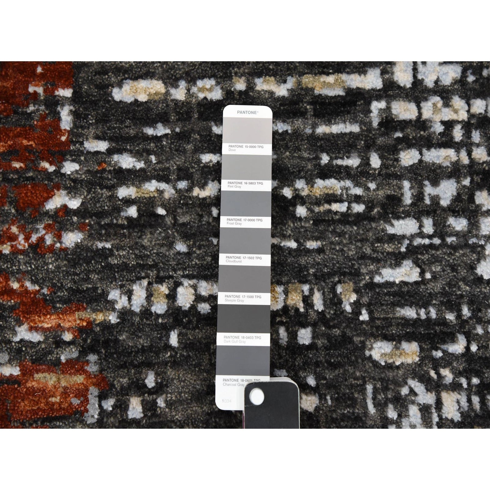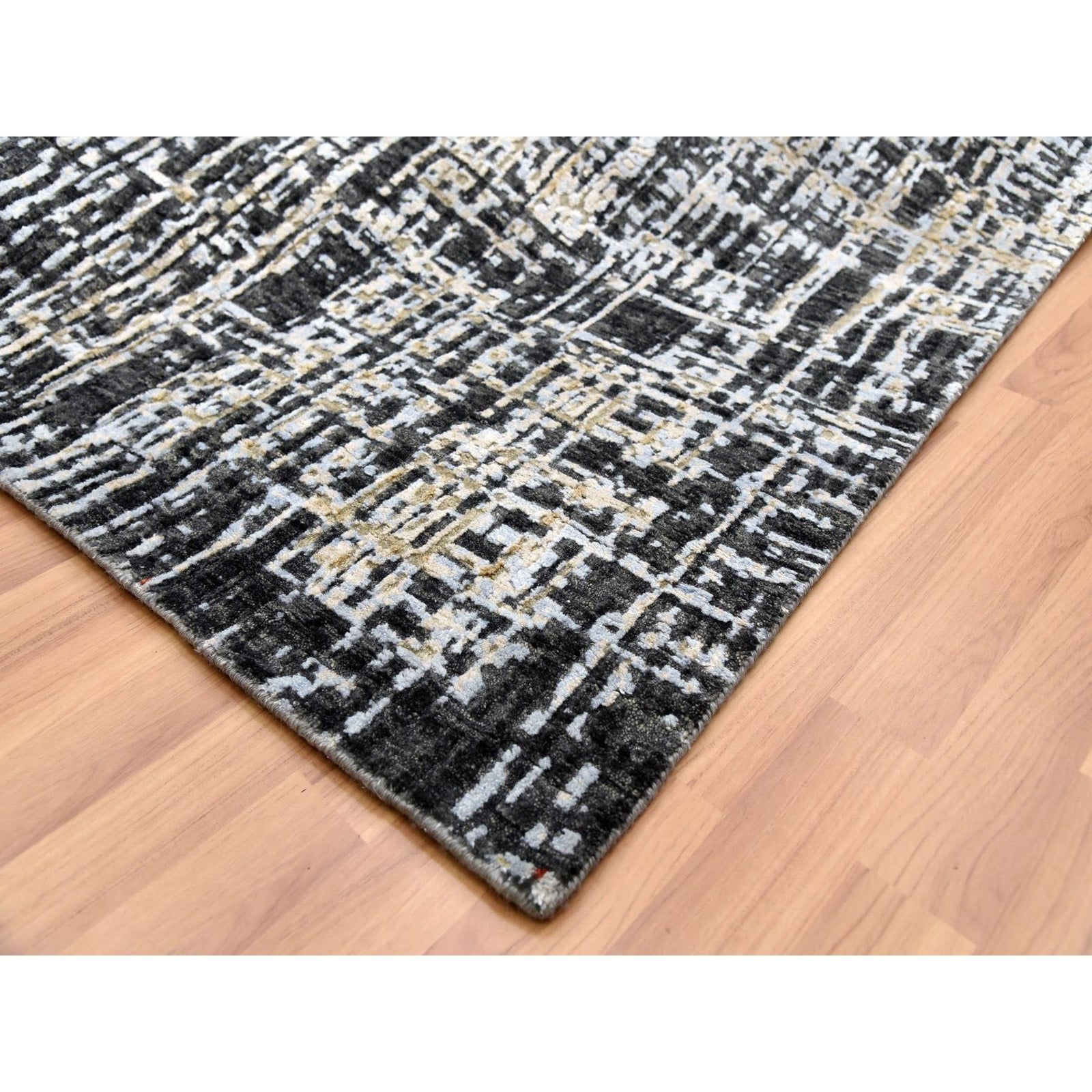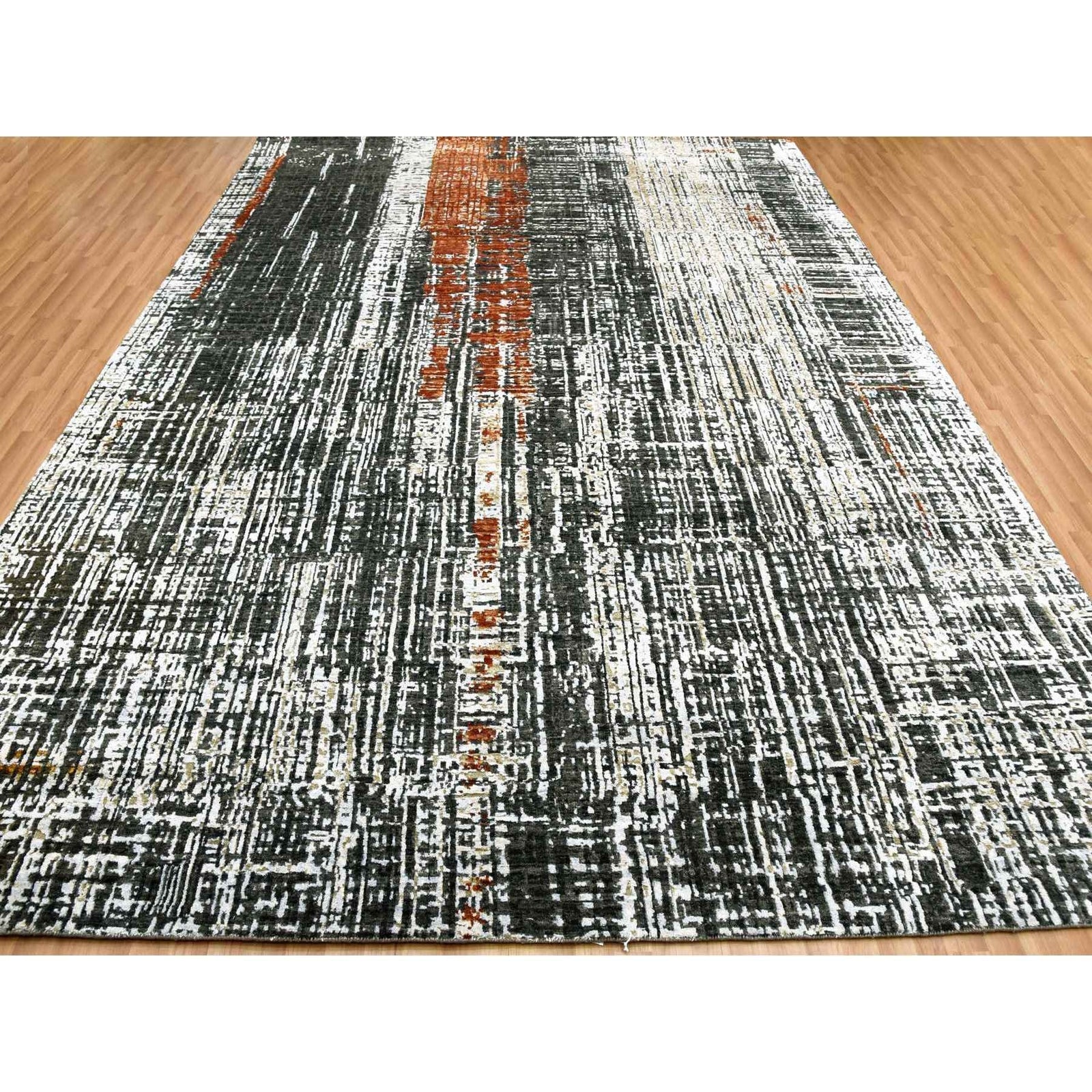 9'X12'4" Jet Black Organic Wool Hand Knotted Abstract Design Rug
