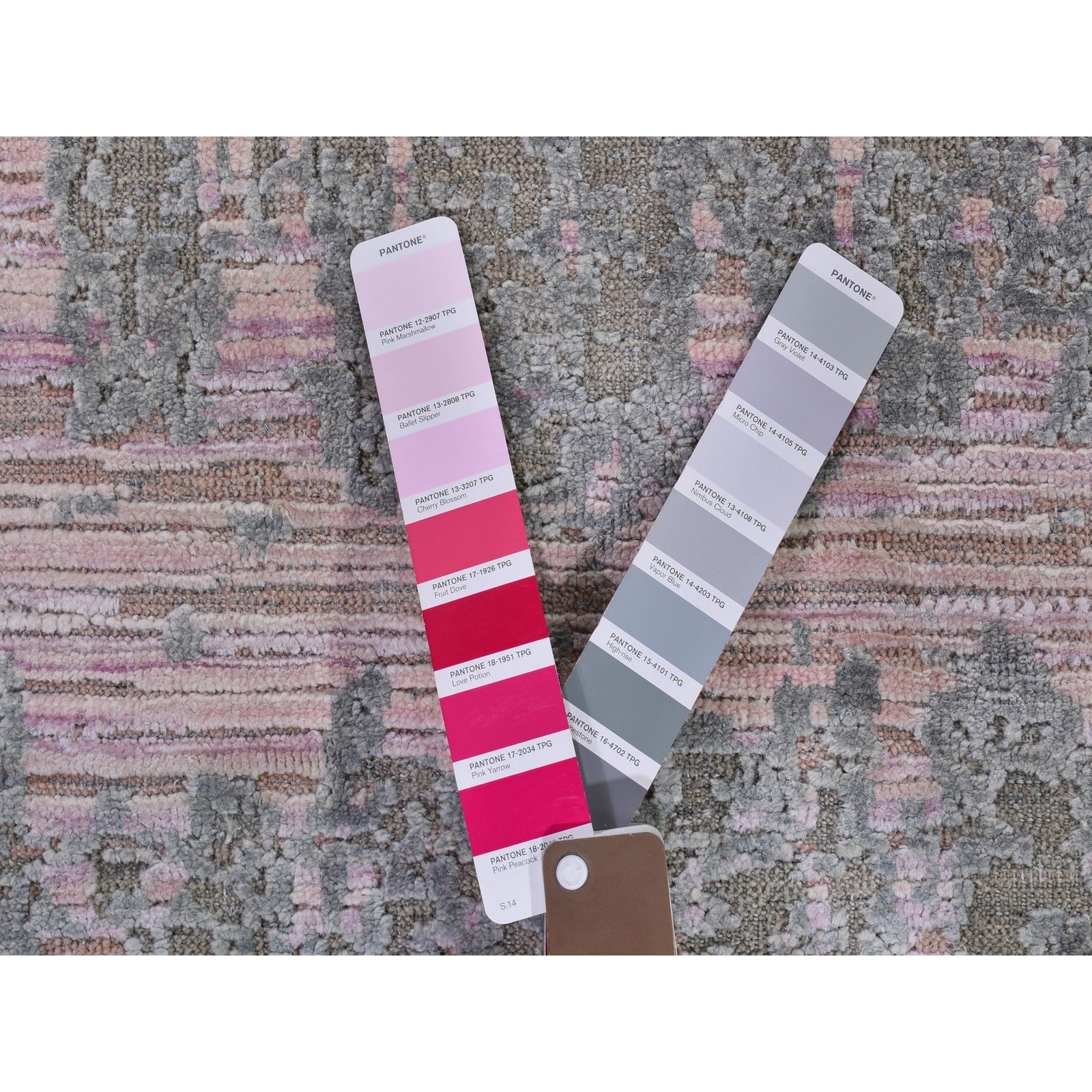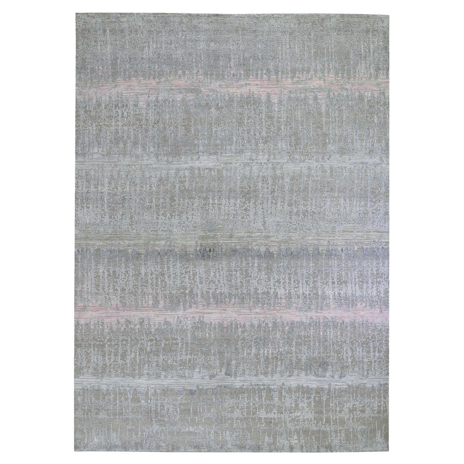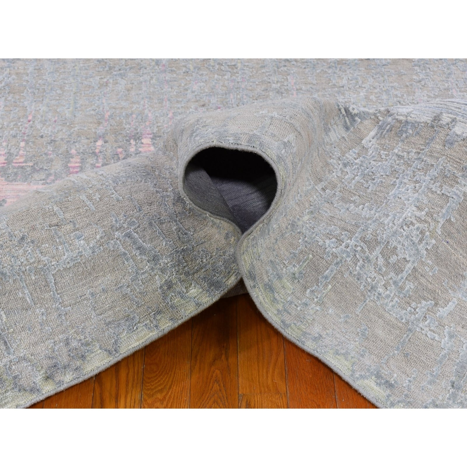 9'X12'5" Pink Cardiac Design Textured Wool And Pure Silk Hand Knotted Rug