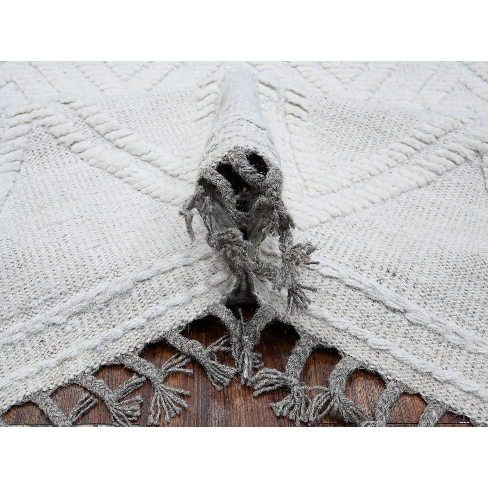 9'X12'6" Polar Bear White Hand Knotted Moroccan Weave Wool Oriental Rug