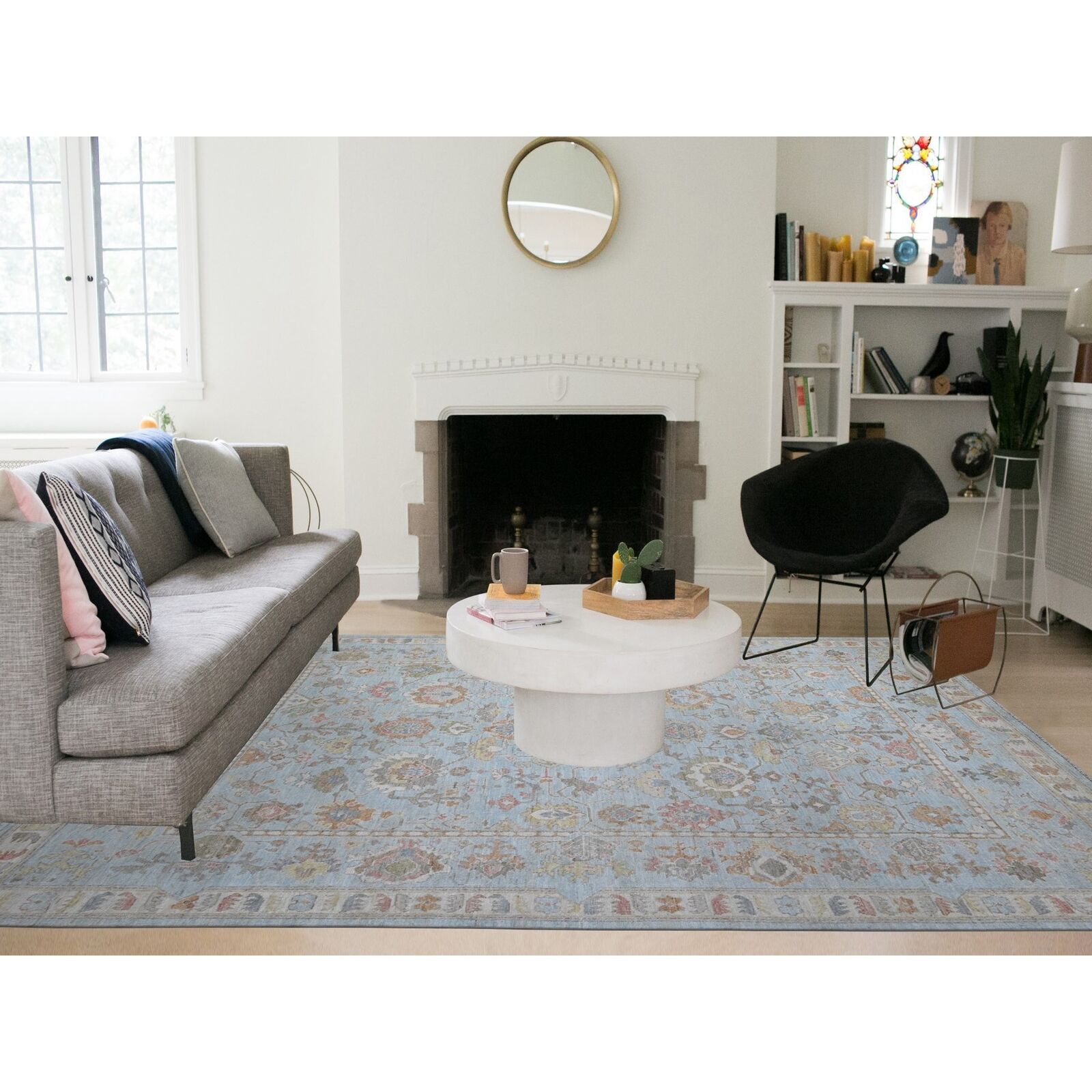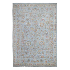 9'X12'6" Quilt Blue Afghan Hand Knotted Angora Oushak Oriental Rug
