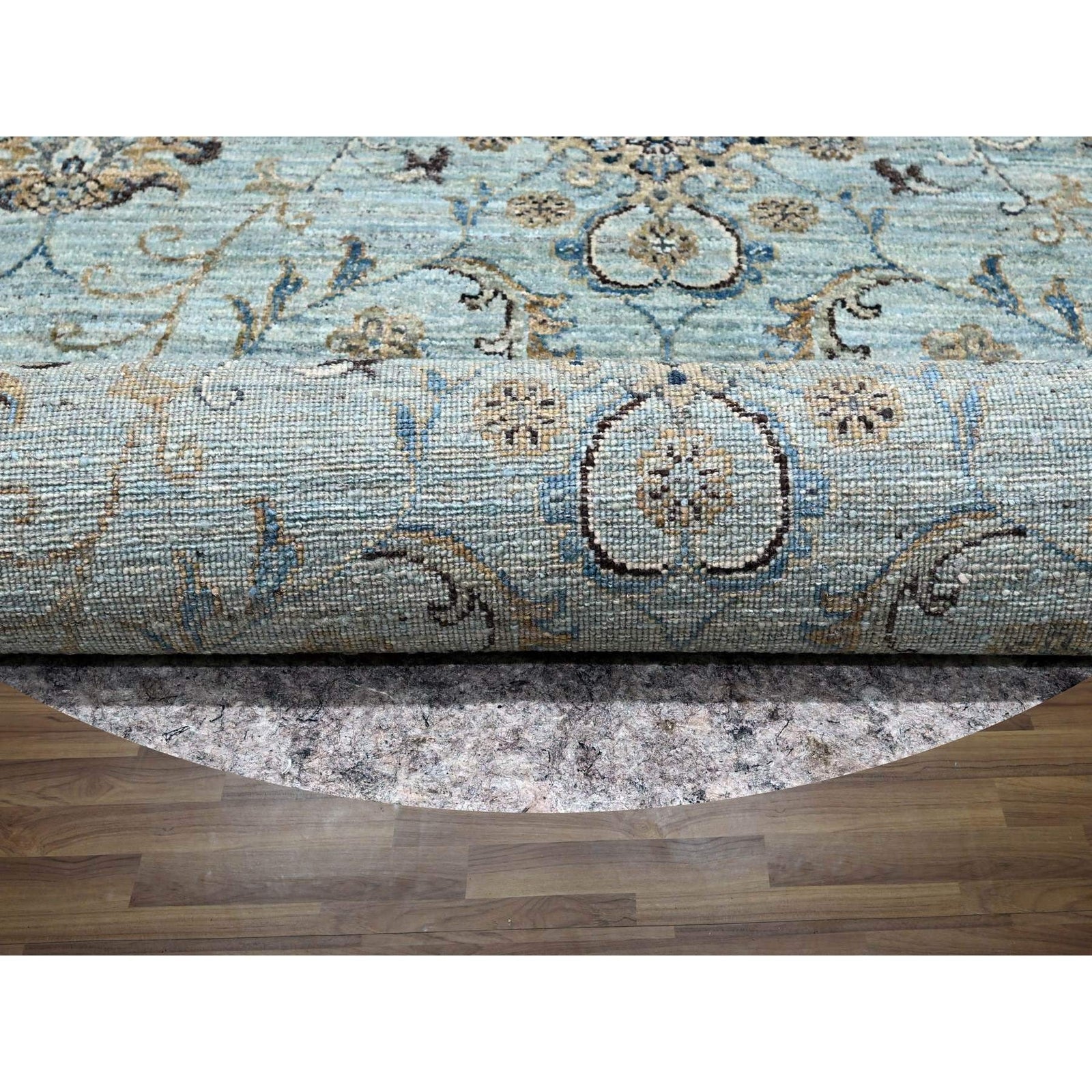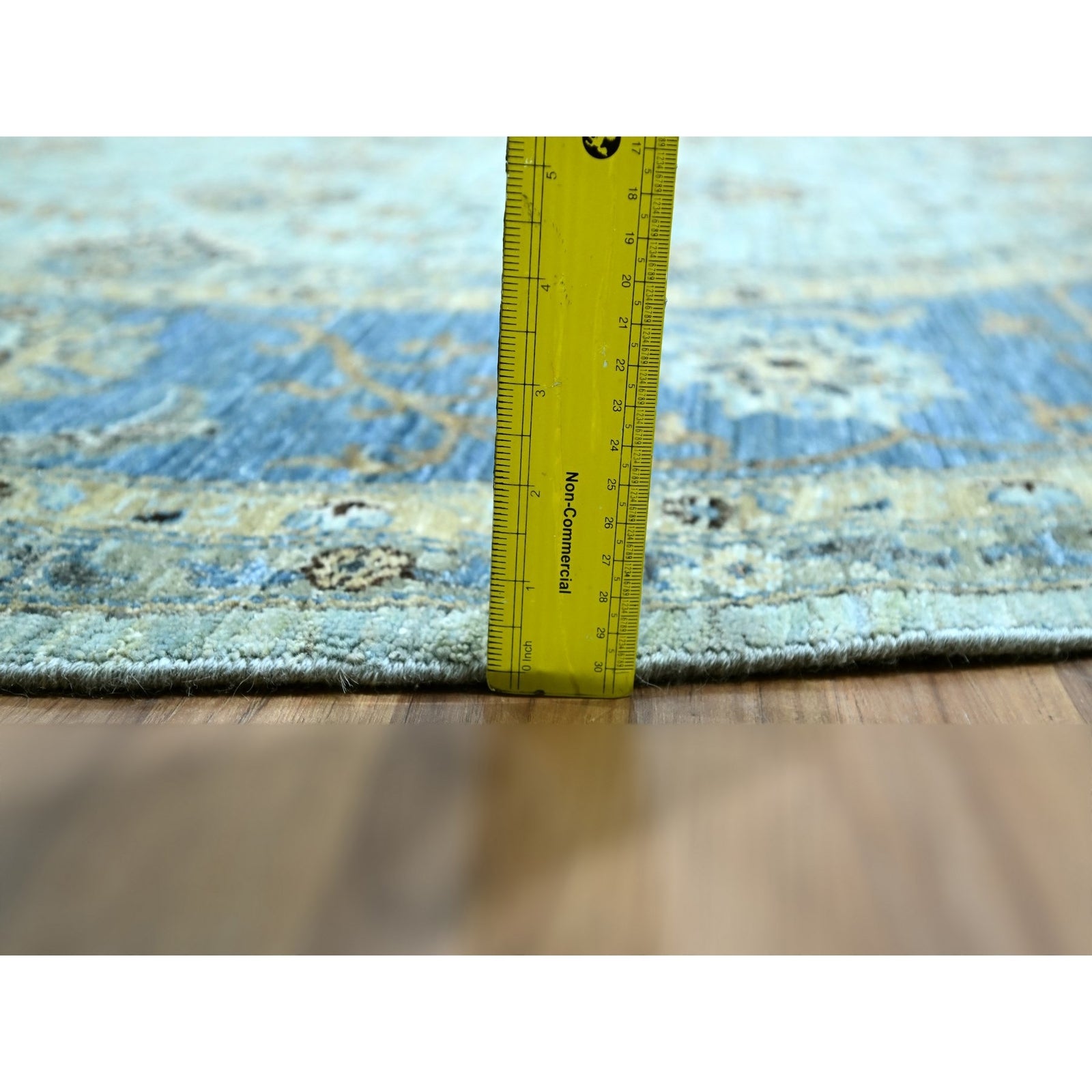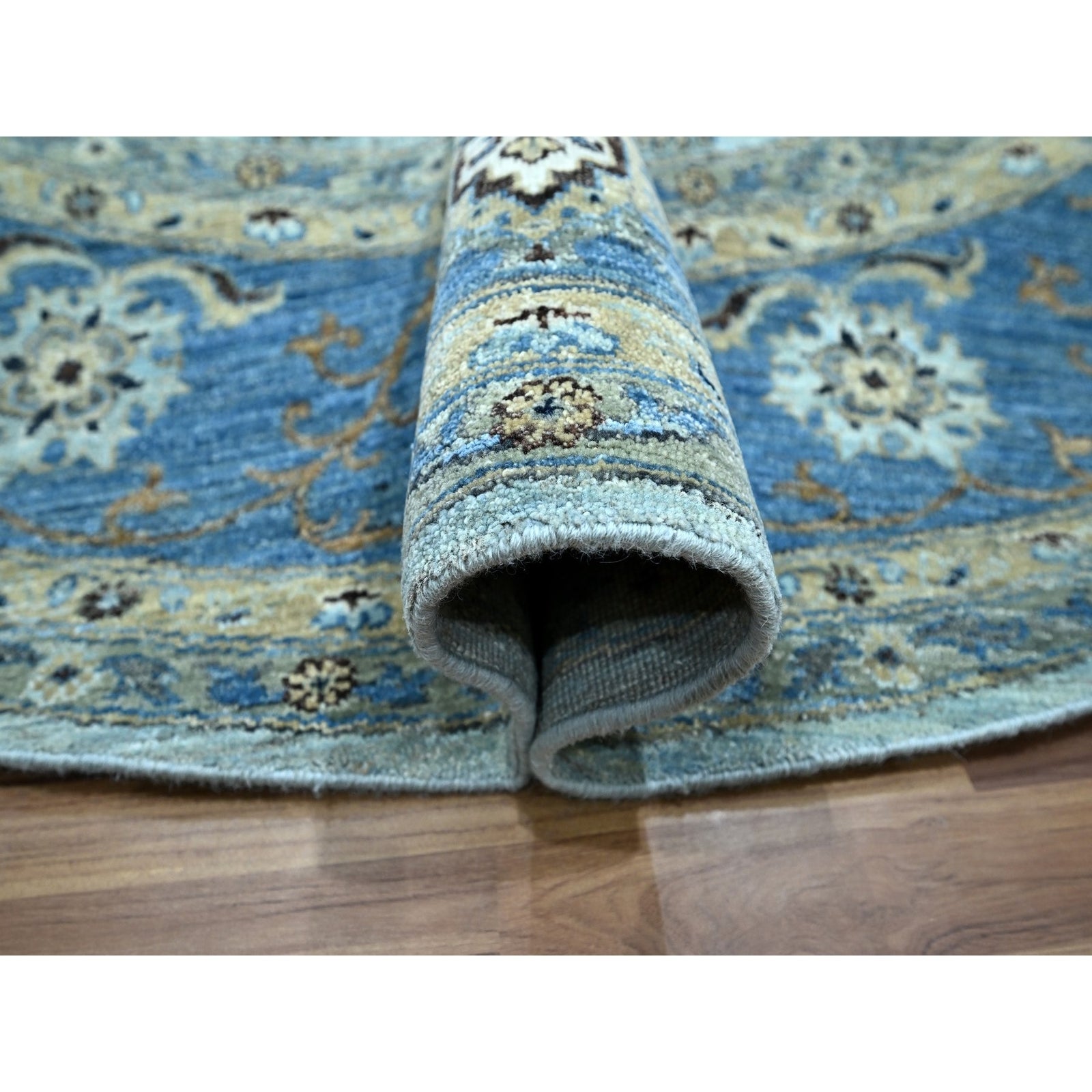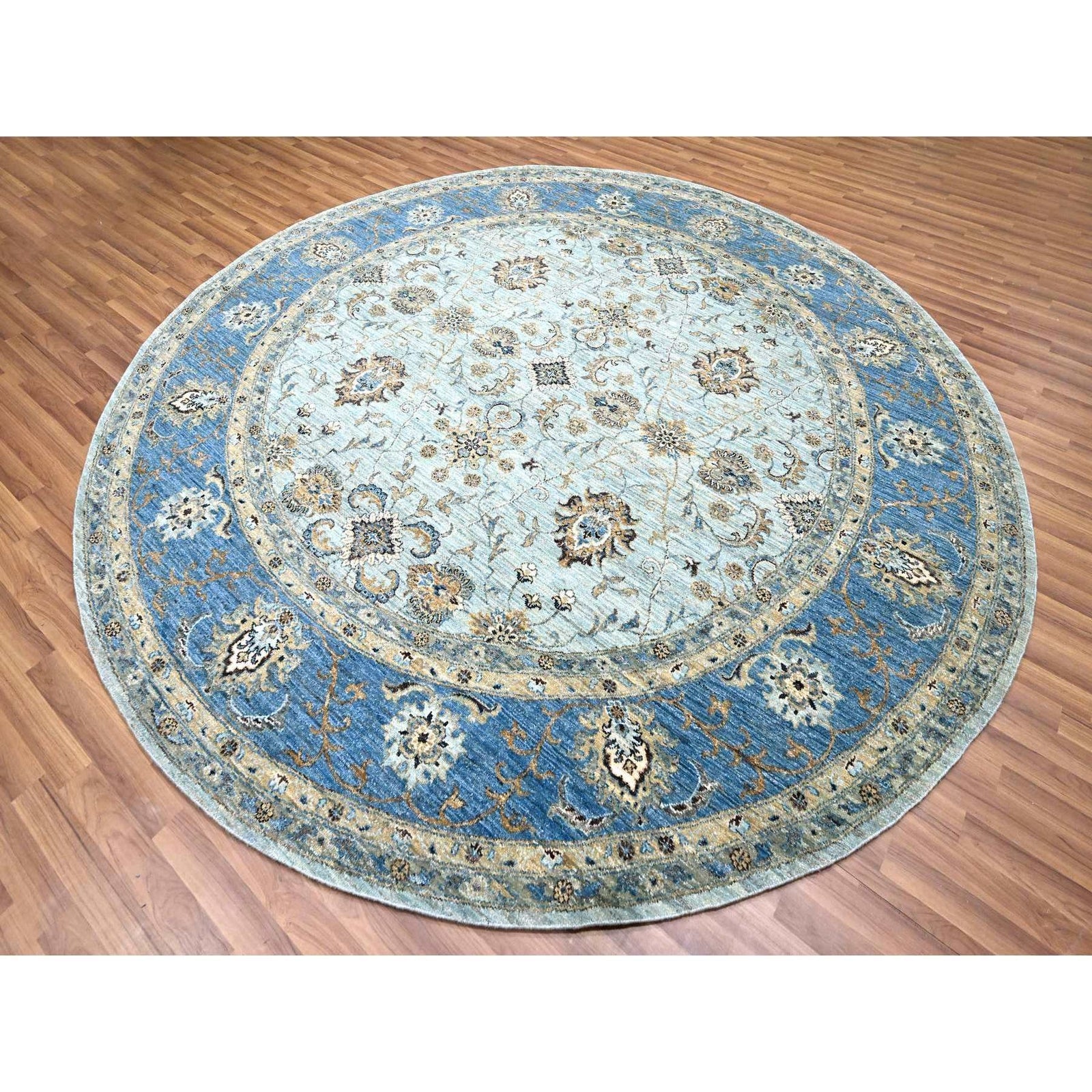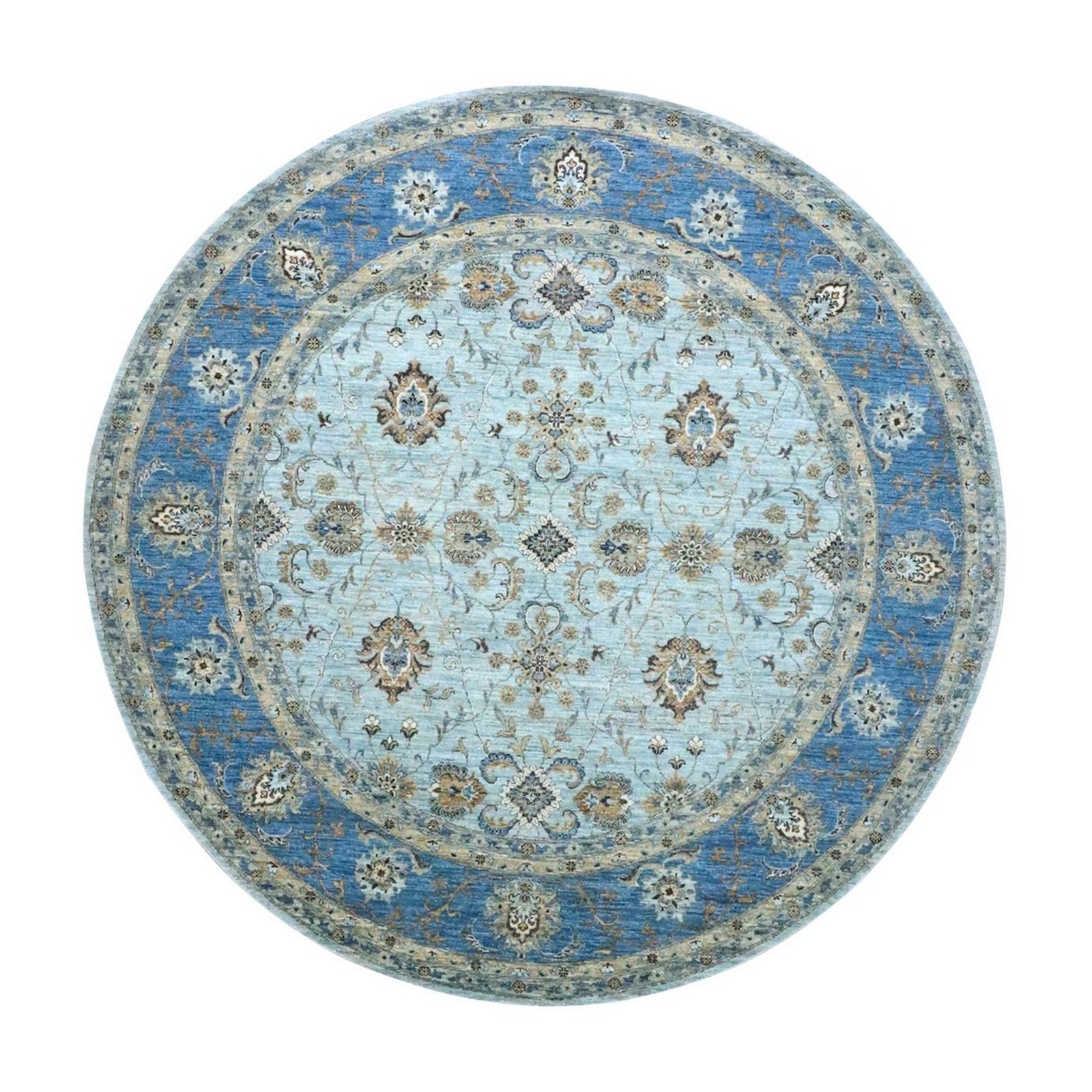 9'X9' Blue Agra Shah Abbas Flower Design Pure Wool Hand Knotted Round Rug