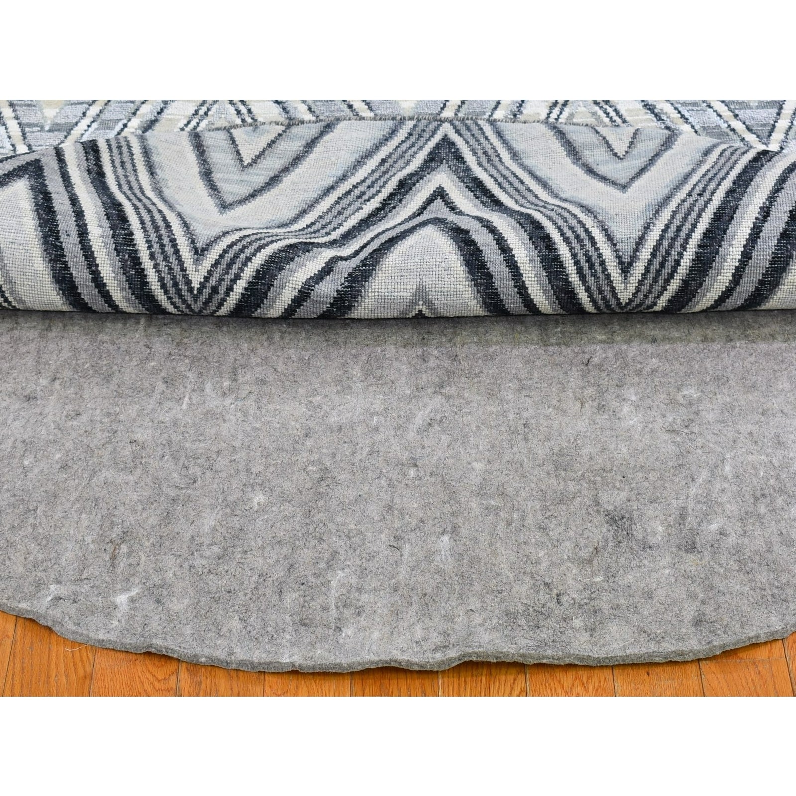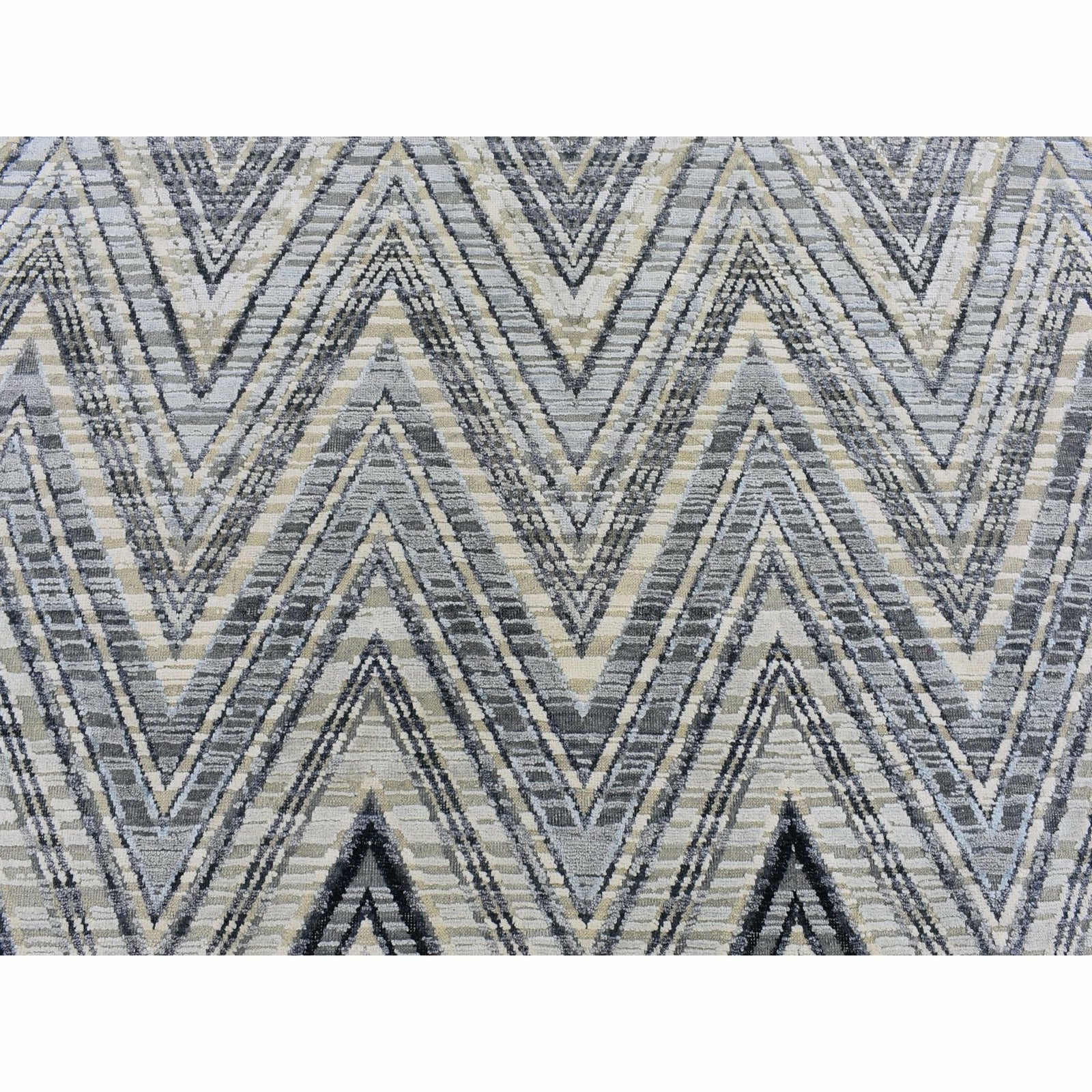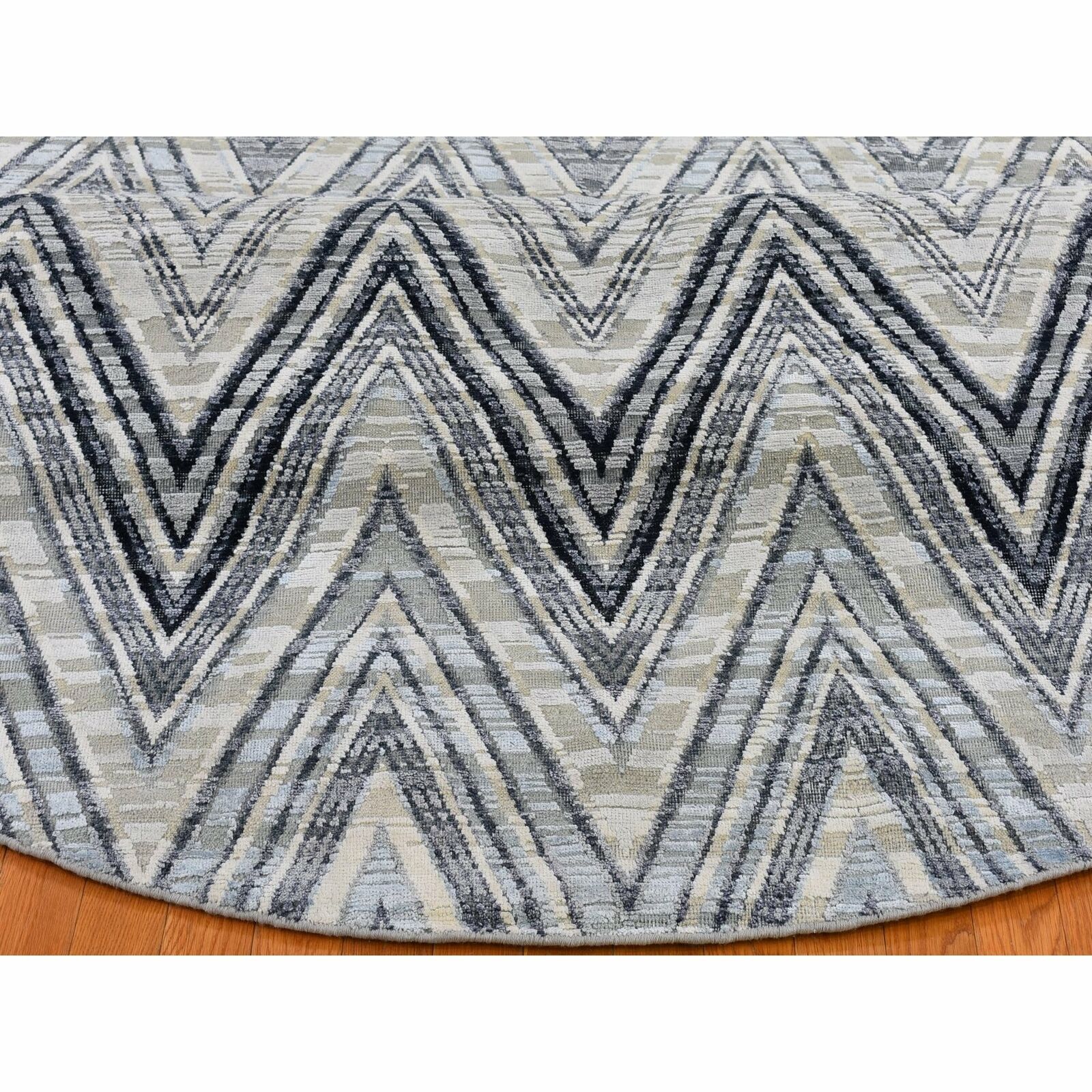 9'X9' Gray Chevron Design Textured Wool And Silk Hand Knotted Round Rug