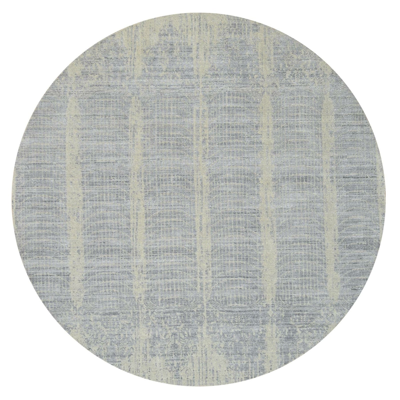 9'X9' Gray Jacquard Hand Loomed Wool And Plant Based Silk Round Rug