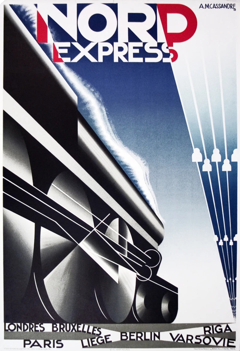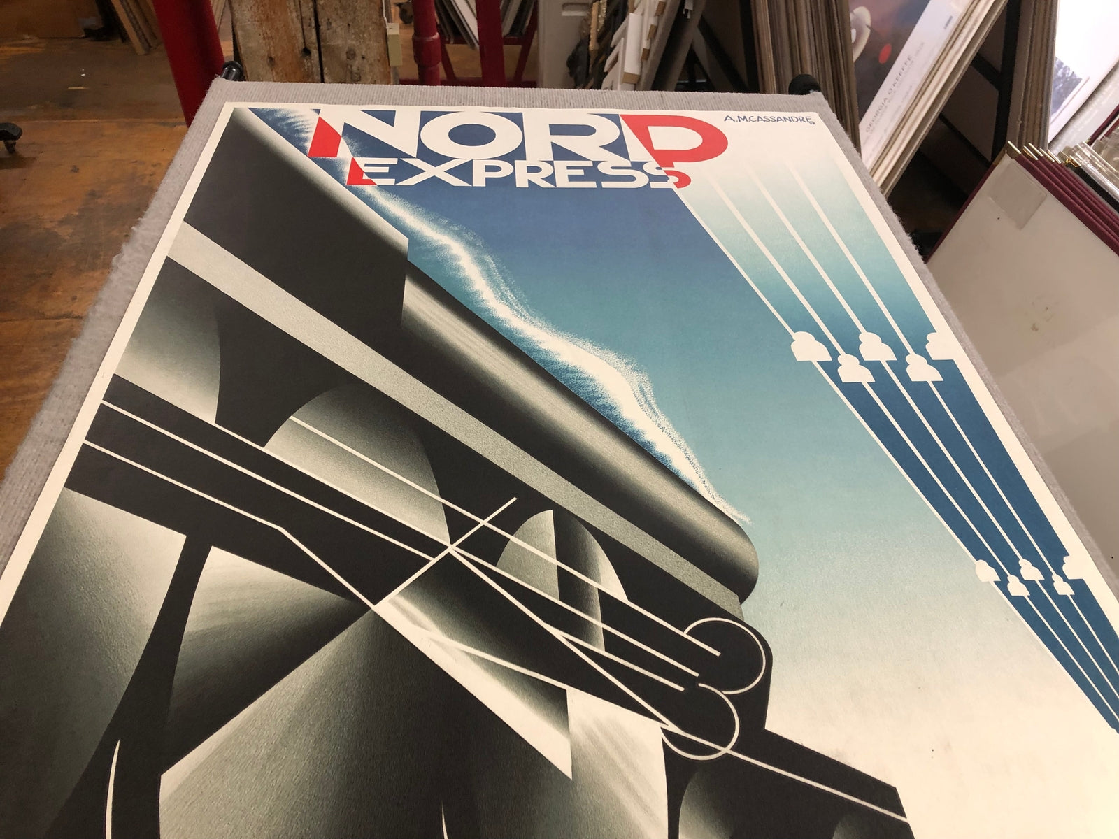 A.M. Cassandre Nord Express " Lithograph Vintage Blue, Black & W