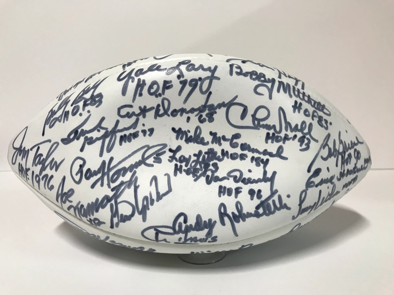 Al Davis/Mike Ditka/Joe Namath Autographed Pro Multi-signed HOF FootballThis Collectors Edition Pro Hof Football contains signatures fromAl Davis, Mike Ditka, Joe Namath,Dwight Stephenson, Bob St.Clair, Ozzy Newsome, Tom Mack, Sam Huff, George Blanda, Charlie Taylor, Jim Langer, Jan Stenerud, Bobby Bell, Yale Larry, Bob Griese, Ernie Stautner, Joe Namath, Paul Norming, Raymond Berry, Joe Green, Jack Lambert, Franco Harris, Frank Gifford + others.This ball was purchased from Lou Creekmur`s collection