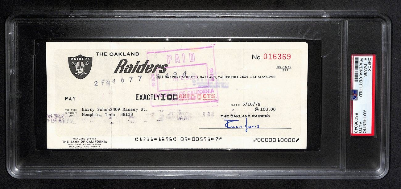 Al Davis Signed/Autographed 1978 Oakland Raiders Check Psa/Dna 184454