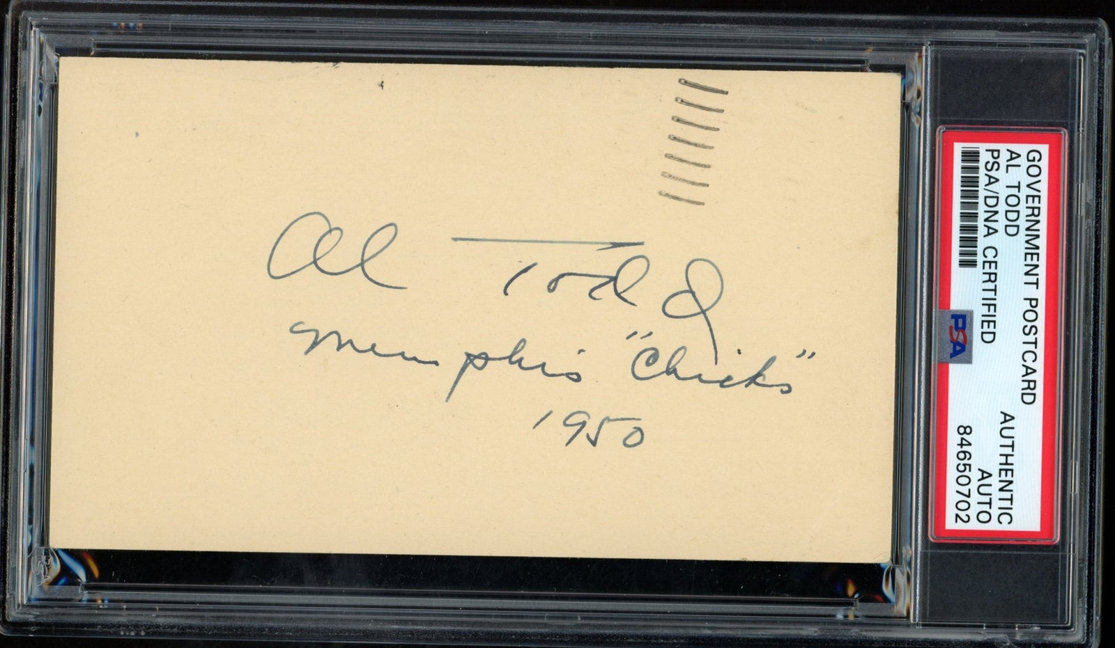 Al Todd Autographed/Inscribed 1950 Gpc Government Postcard Phillies Psa/Dna