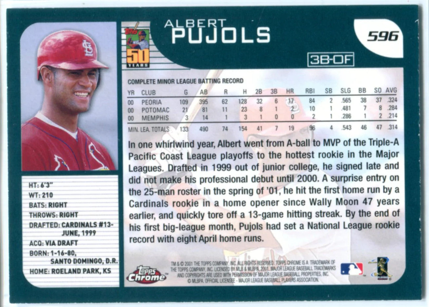Albert Pujols 2001 Topps Chrome Rookie Card #596
