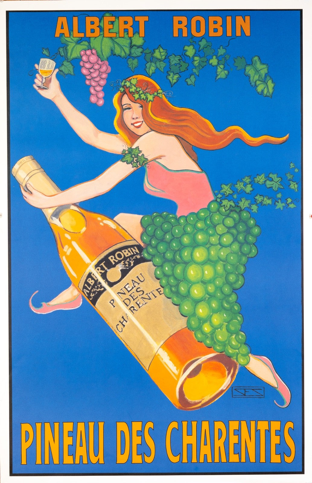 Albert Robin Pineau Charentes Susan Stewart Hand Signed Original Vintage Poster