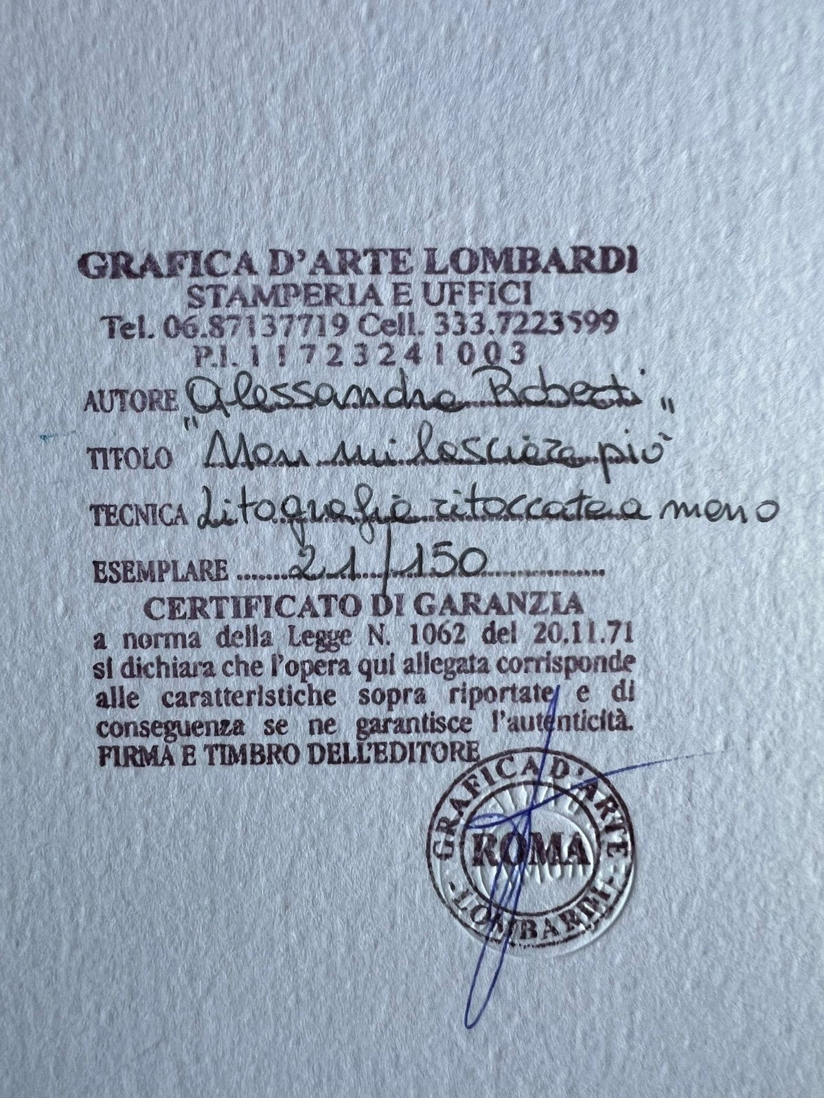 Alessandra Roberti "Don't leave me again" Lithograph retouched by hand in pastel 150 hand-numbered copies 33 x 42 cm Authentication according to publisher's law Alessandra Roberti "Don't leave me again" Lithograph retouched by hand in pastel 150 hand-numbered copies 33 x 42 cm Authentication according to publisher's law