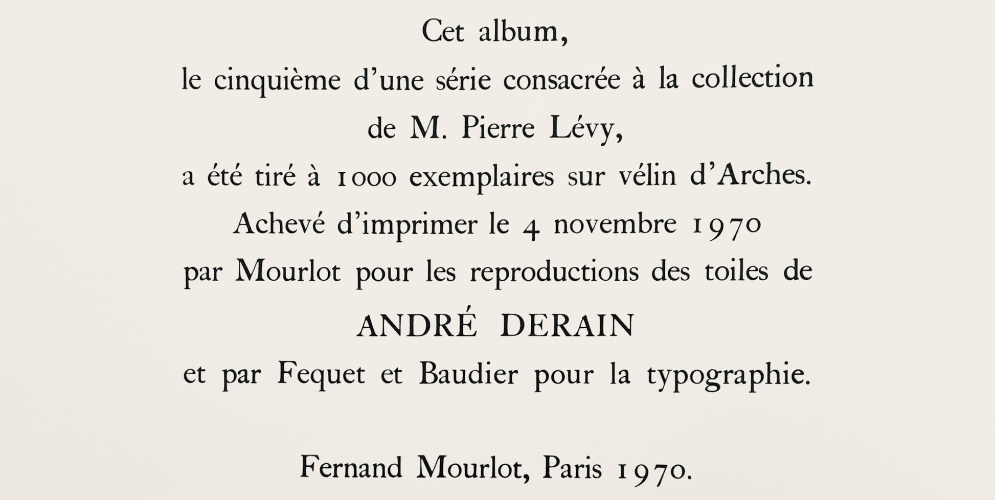 Lithograph on vlin d'Arches paper. Inscription: Unsigned and unnumbered. Paper Size: 20 x 26 inches. Excellent condition.. Notes: From the folio, Andr Derain entre 1935 et 1949, V, Collection Pierre Levy, 1970; published by Fernand Mourlot, Paris; printed by Mourlot Frres, Paris, November 4, 1970. Excerpted from the folio, This album, The fifth in a series dedicated to Mr. Pierre Lvy's collection, was printed in M examples on Arches vlin. Completed printing on November 4, 1970 by Mourlot for reproductions of the canvases of Andr Derain and by Fequet and Baudier for typography. Fernand Mourlot, Paris 1970.