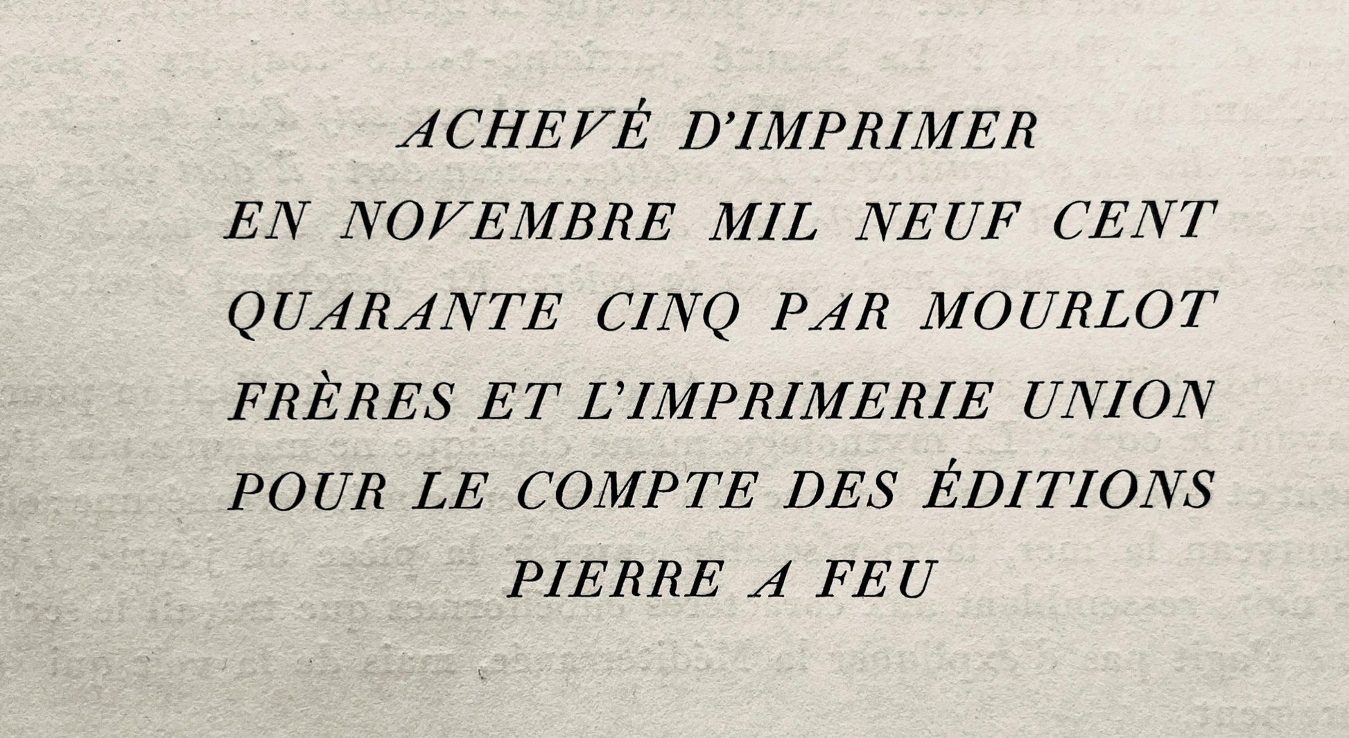 Published by Aim Maeght, diteur, Paris, and ditions pierre feu, Paris; printed by Mourlot Frres, Paris and L'imprimerie, Paris, November 1945.