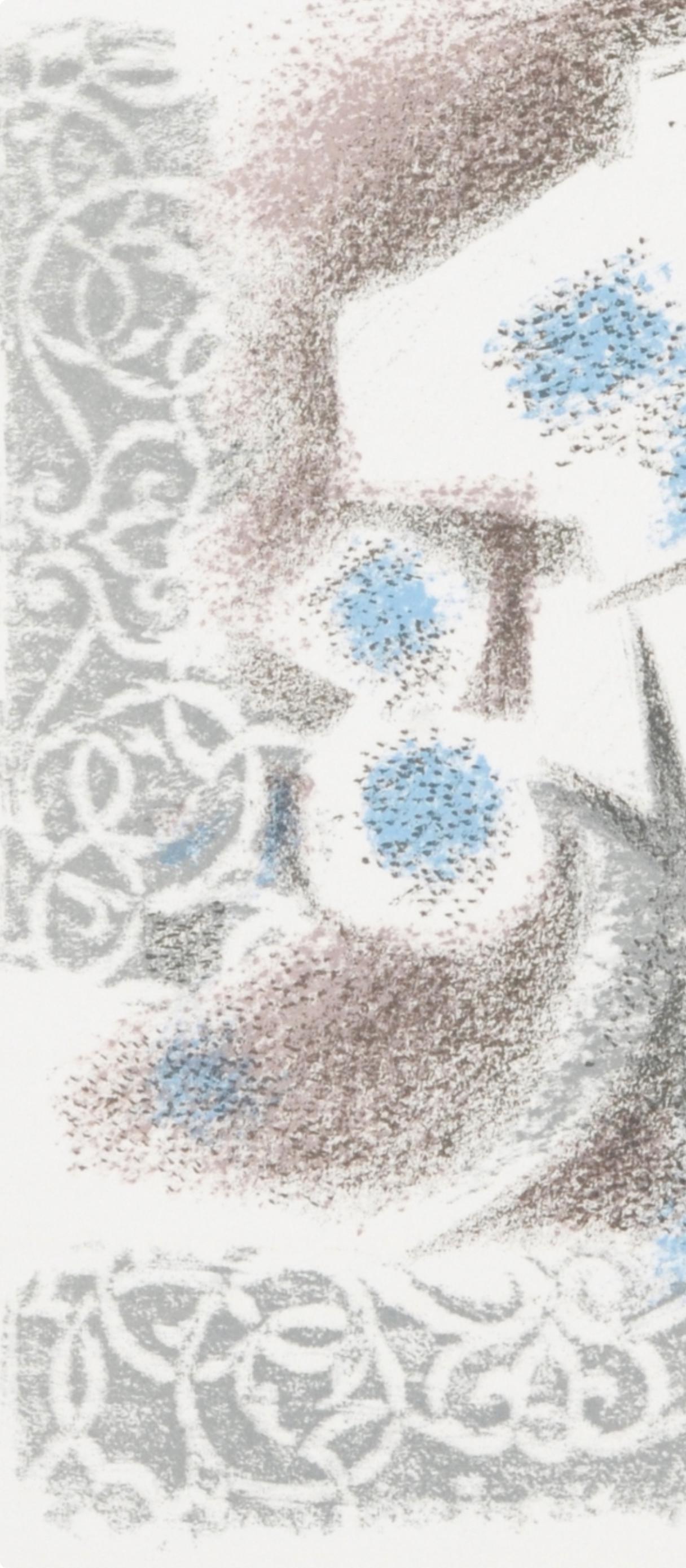 Lithograph on vlin d'Arches paper. Paper size: 14 x 10.875 inches. Excellent condition. Inscription: unsigned and unnumbered, as issued. Notes: From the folio, Une toile de Craie, seize lithographies originales par Andr Masson, 1973. Published by Au Pont des Arts, Paris, and Galerie L. Weill, Paris; printed by Mourlot Frres, Paris, under the direction of Pierre-Andr Weil, Paris, October 15, 1973. Excerpted from the volume (translated from French), The original edition of Patrick Waldberg's text, Une toile de Craie, illustrated by Andr Masson, of sixteen original lithographies, was printed on vlin d'Arches with 101 examples, numbered I to 101, plus 21 examples reserved for collaborators, numbered H.C. I to H.C. XXI. Each example is accompanied by a suite apart from the lithographies drawn on Japon paper, signed and numbered I to 101 and I to XXI. In addition, 52 examples were drawn without follow-up: 26 justifications, A to Z, and 26 justifications, H.C. A to H.C. Z, reserved for employees. The examples are all signed by the author and the artist on the colophon. The typography in Baskerville Corps 18 is from L'Imprimerie Union in Paris, Louis Barnier being director. The boards were shot by Mourlot. Completed printing under the direction of Pierre-Andr Weill on October 15, 1973.