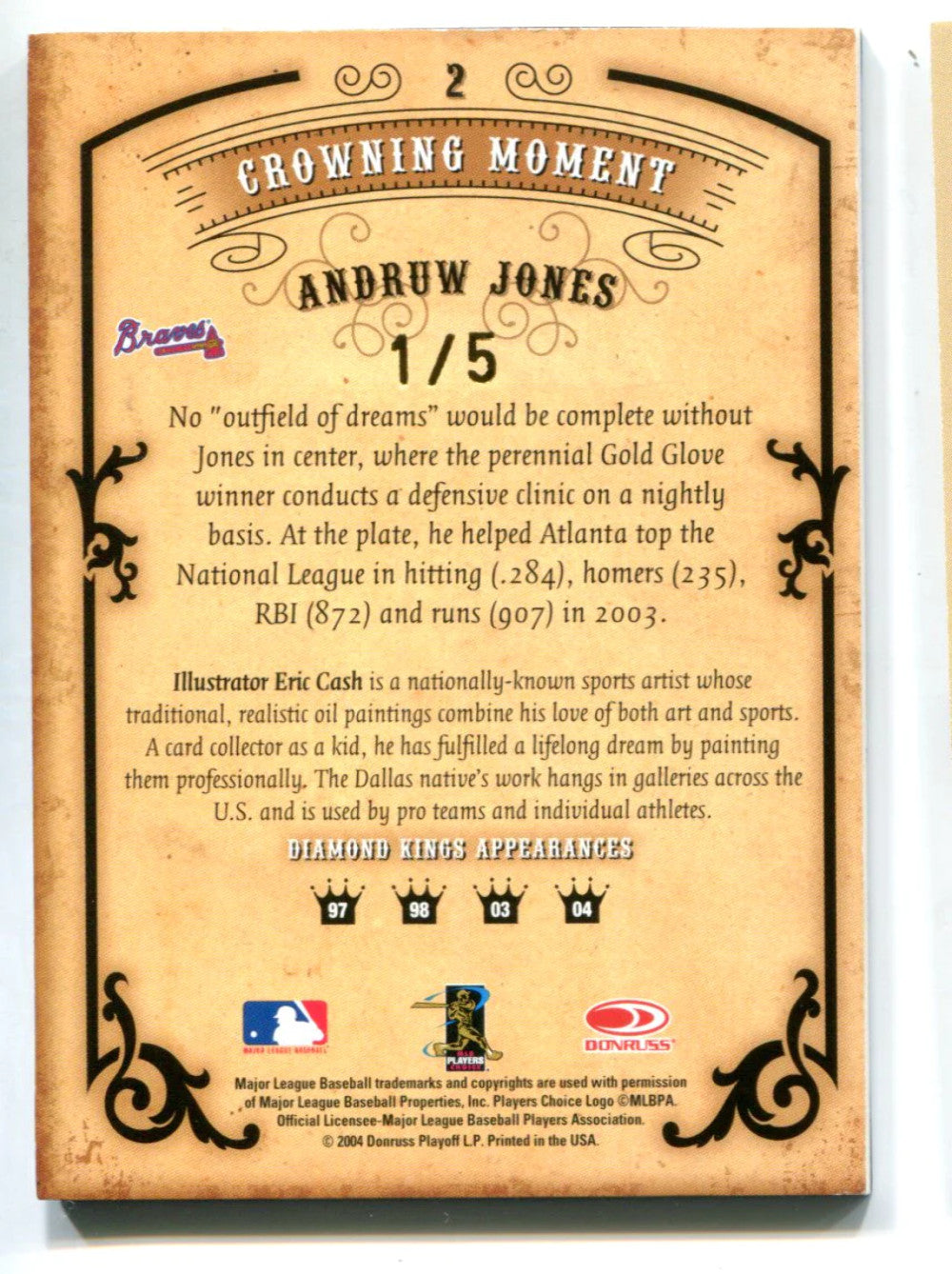 Andruw Jones 2004 Donruss Playoff Crowning Moment Autographed Card #2 /5
