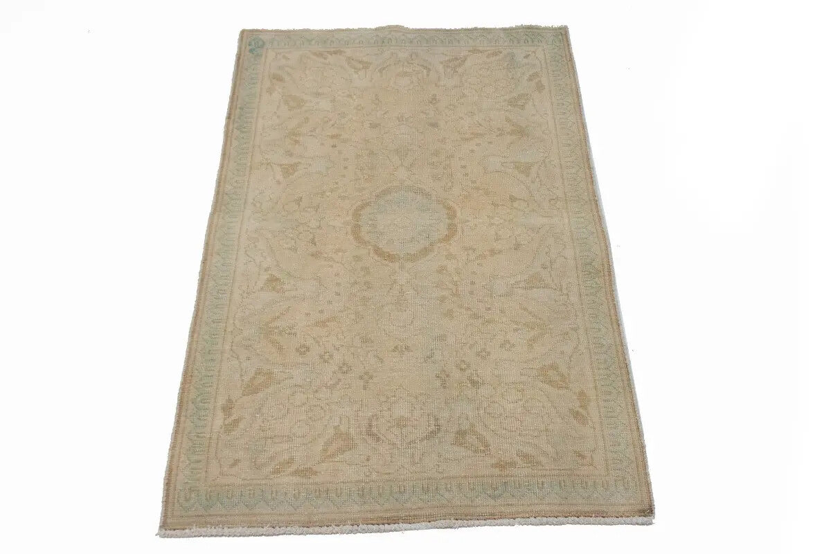 Antique Hand-Knotted Wool Oriental Area Rug Beige