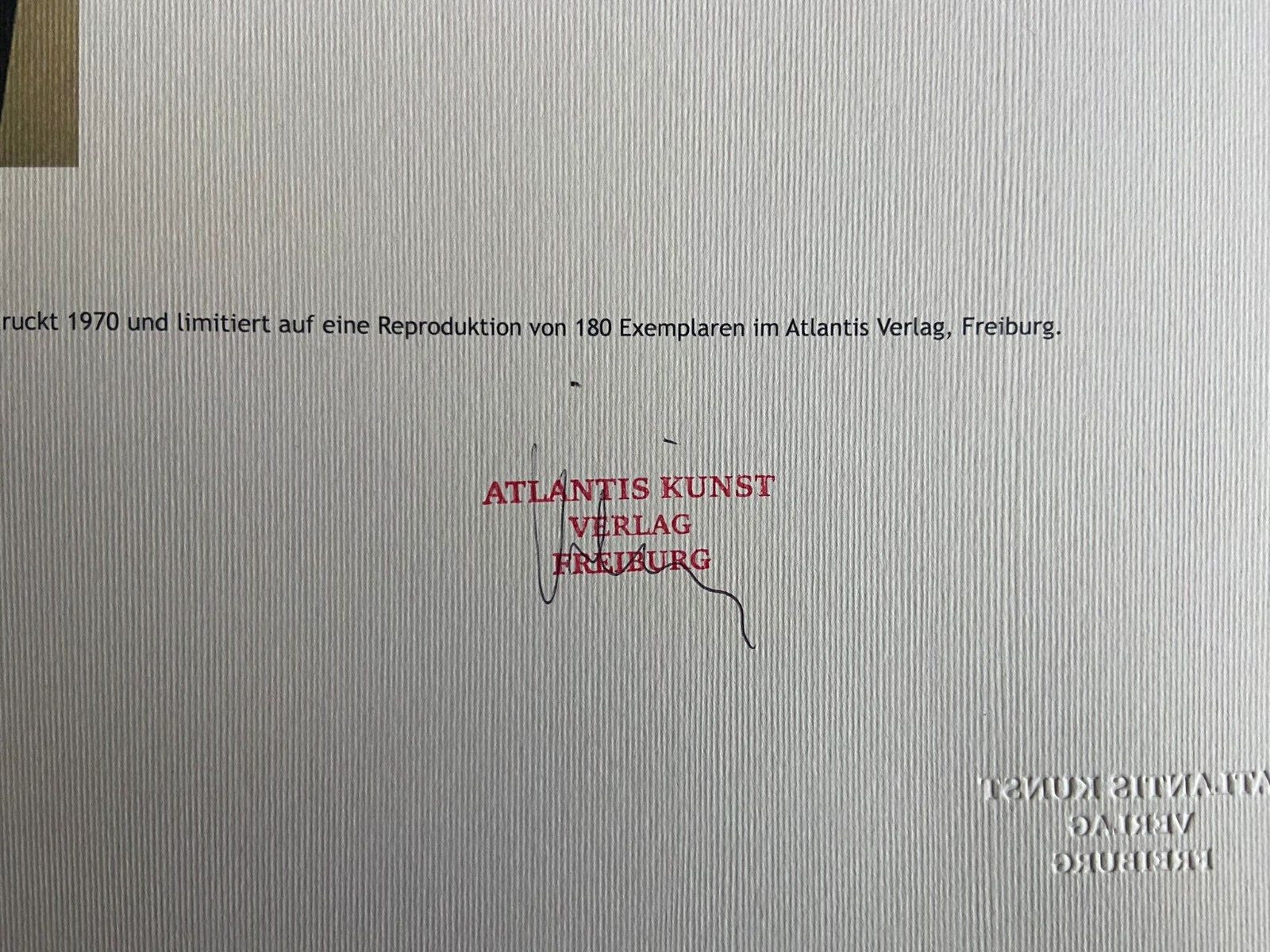 Auguste Herbin Lithograph Signed Numbered By Hand Certificate Augustan Herbin "Man" Chromolithography printed in 1970 and reproduced in 180 specimens by Atlantis Verlag, Freiburg 30 x 45 cm Signature Augustte Herbin on the slab Dry and authentic stamp of the publishing house The progressive number could be different from the published one. Atlantis Kunst Verlag Freiburg Augustan Herbin "Man" Chromolithography printed in 1970 and reproduced in 180 specimens by Atlantis Verlag, Freiburg 30 x 45 cm Signature Augustte Herbin on the slab Dry and authentic stamp of the publishing house The progressive number could be different from the published one. Atlantis Kunst Verlag Freiburg