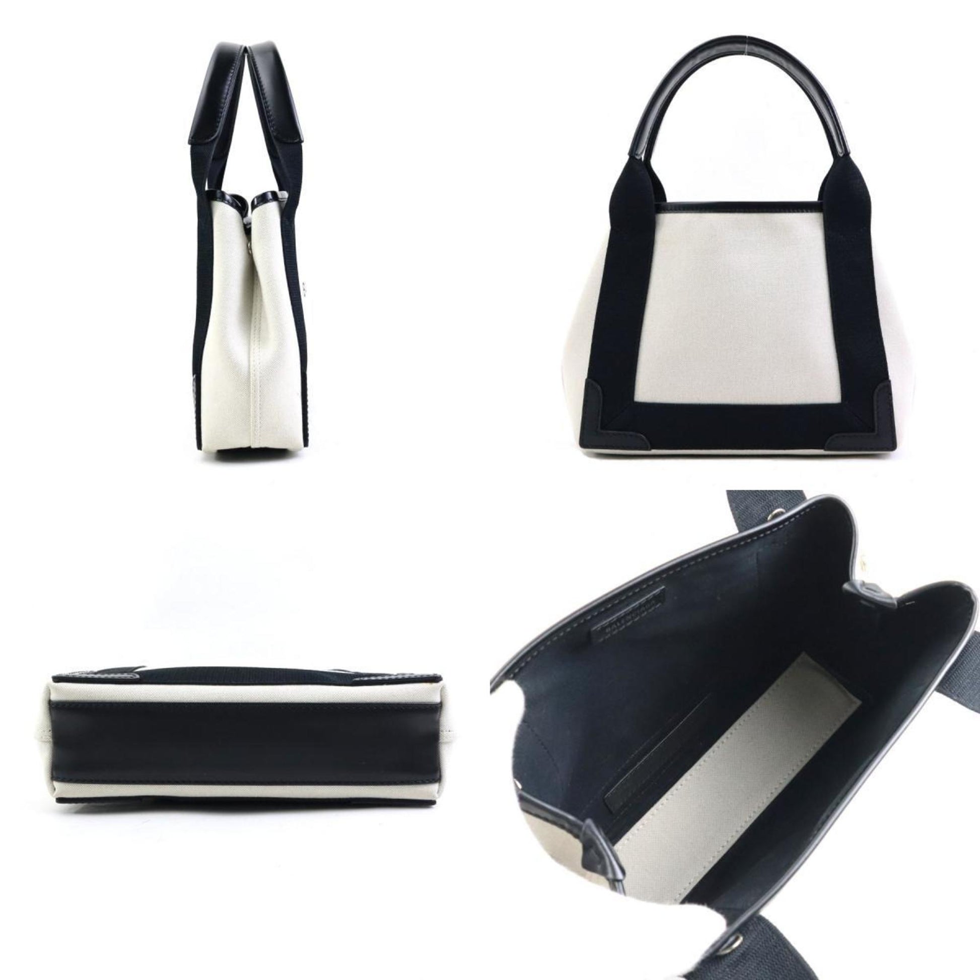 Balenciaga Handbag Navy Cabas Xs Canvas Leather Black X Ivory