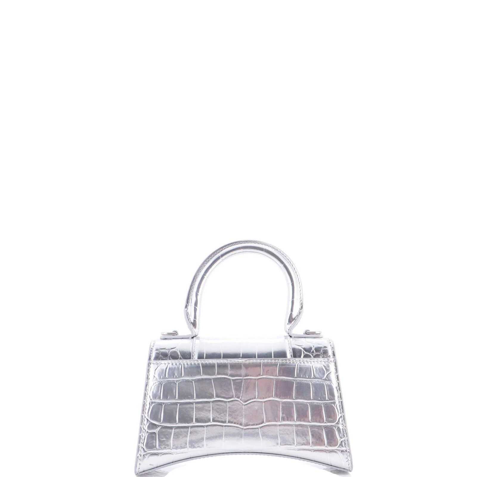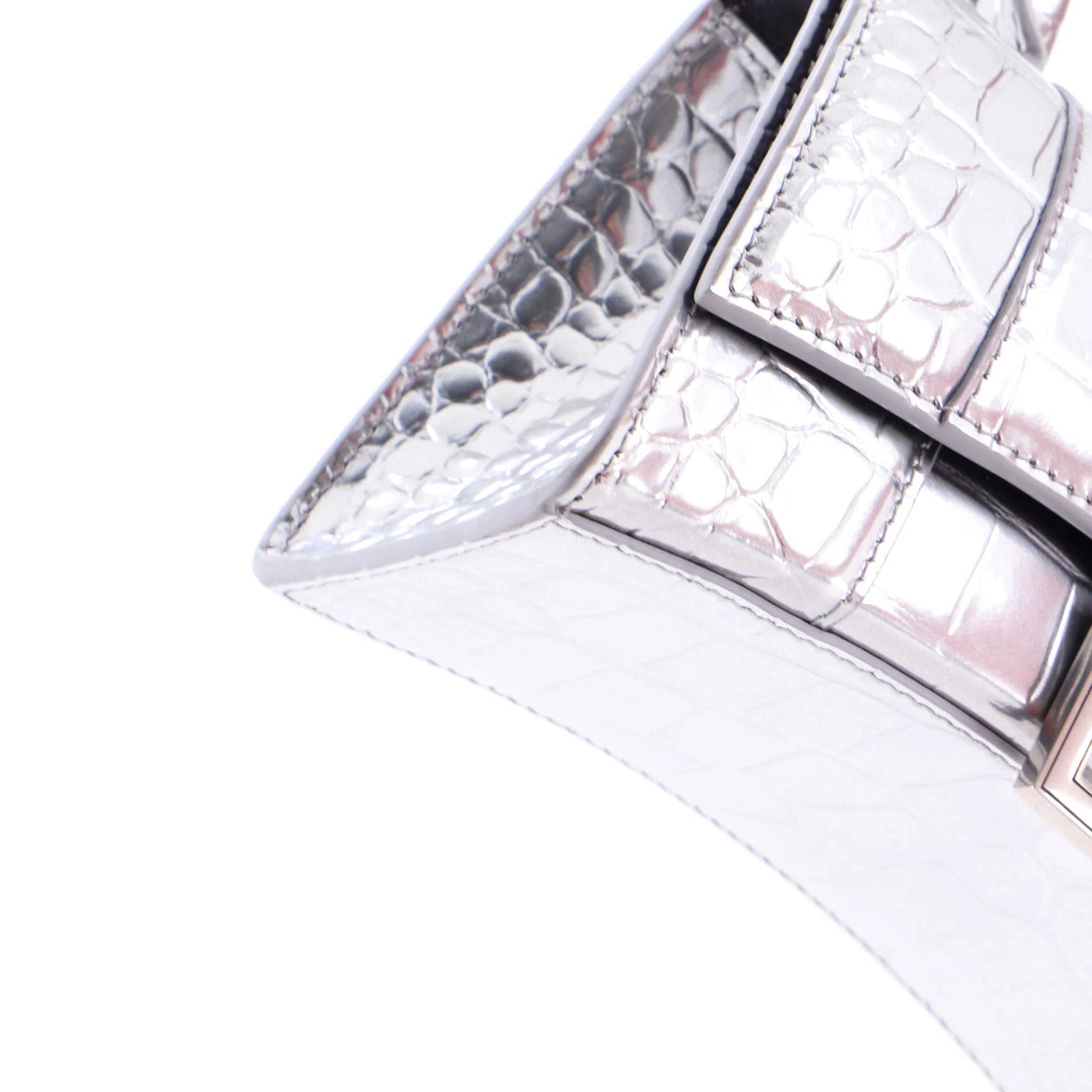 Balenciaga Hourglass Top Handle Bag Crocodile Embossed Leather Xs