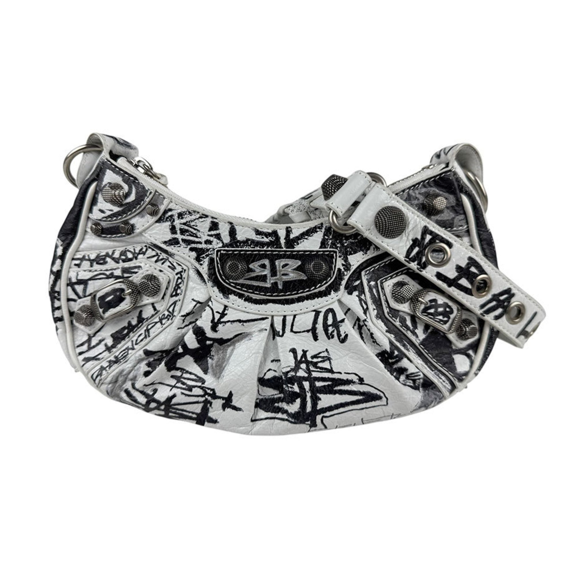 Balenciaga Le Cagole Xs Shoulder Bag In White And Black Leather